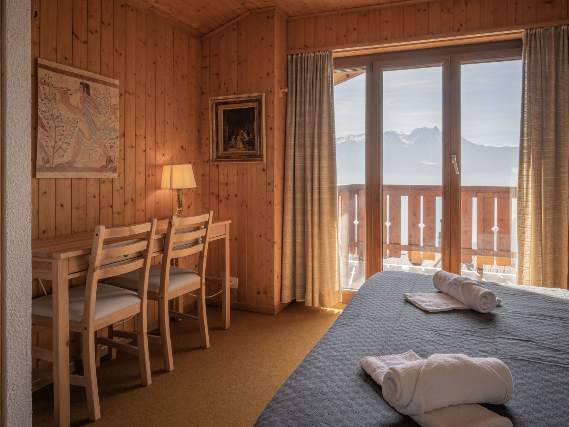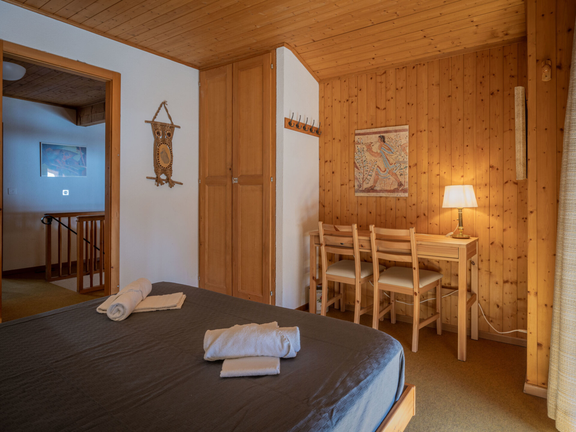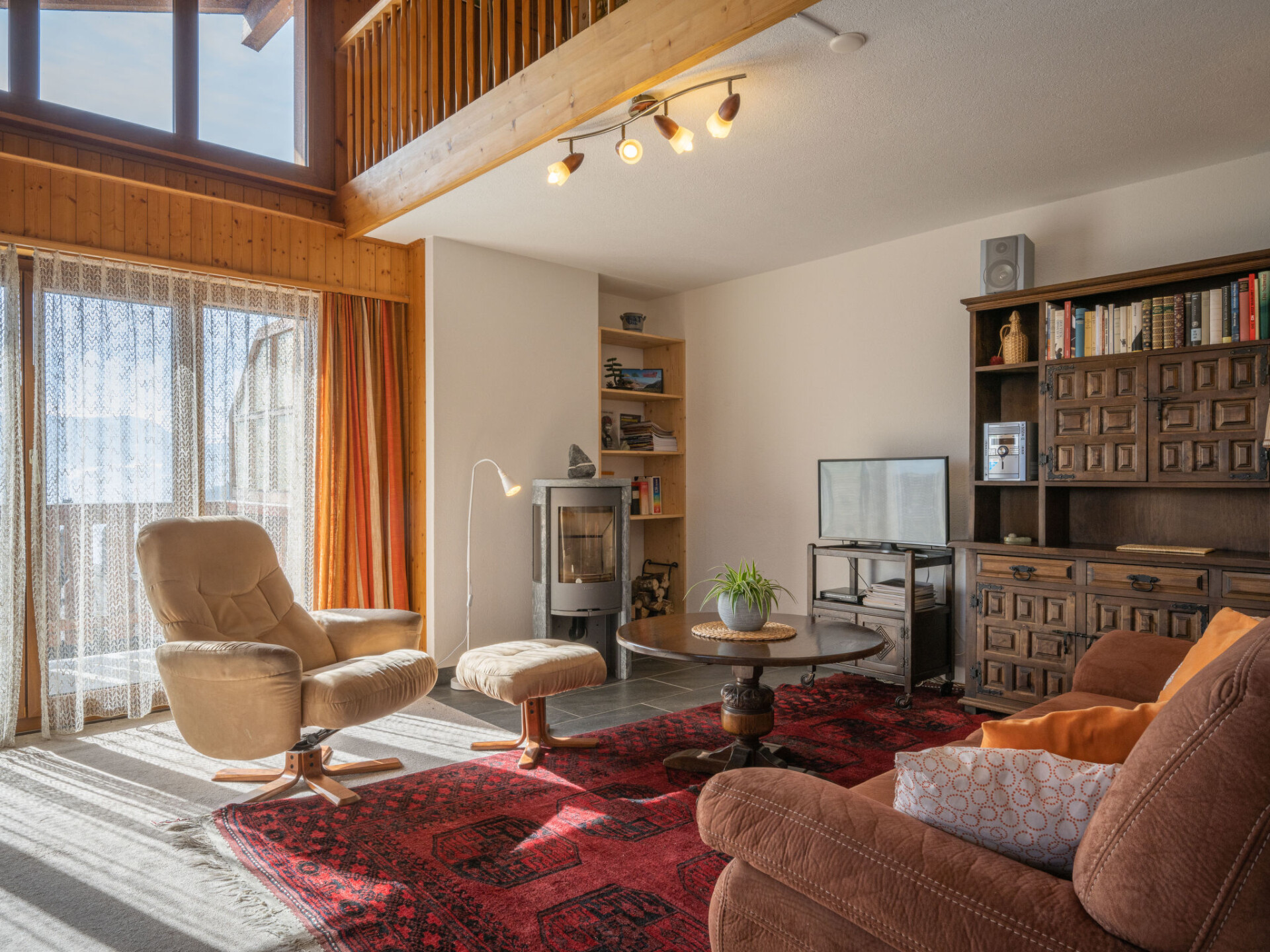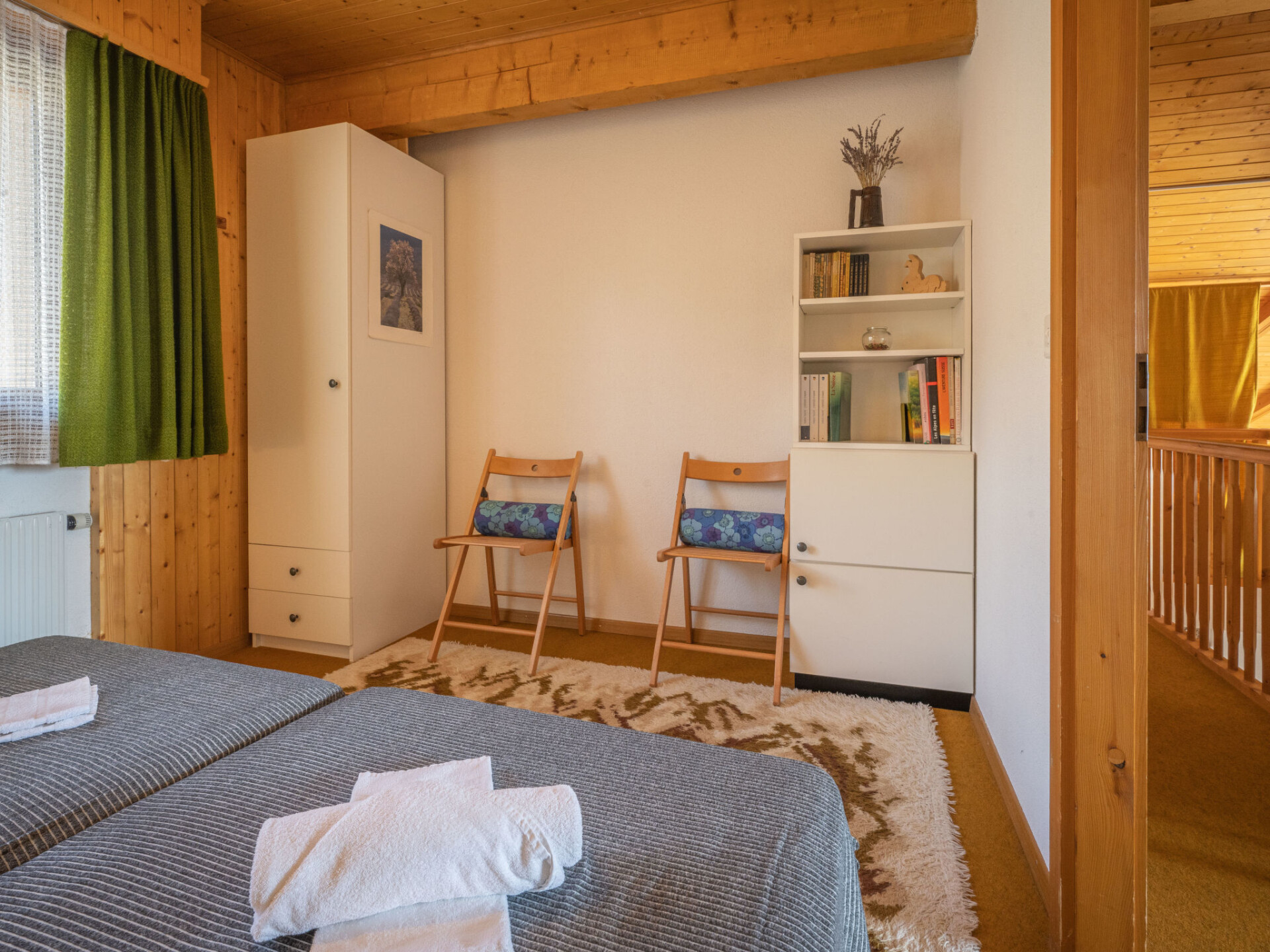"Plein Soleil A 10", appartement 4-kamers 90 m2 op 2 verdiepingen, op het zuidoosten gelegen. Comfortabel en mooi ingericht: woon-/eetkamer met eethoek, Kabel-TV, stereo-installatie, DVD en houtkachel. Uitgang naar het balkon. Keuken (oven, afwasmachine, 4 inductiekookplaten, magnetron, elektrische koffiemachine, pads voor de koffiemachine (Delizio) extra, raclette oven, fondue Set (chinese, kaas)). Bad/WC. Bovenverdieping: 1 kamer met 1 2-pers bed (160 cm, lengte 200 cm). Uitgang naar het balkon. 1 kamer met 2 bedden (90 cm, lengte 200 cm). 1 kamer met afgeschuinde daken met 2 uitschuifbare bedden (2 pers. 2 x 90 cm, lengte 200 cm). Galerij. Douche/WC. Balkon 15 m2, op het zuidoosten gelegen, 2 kleine balkons, op het zuiden gelegen en op het noorden gelegen. Terrasmeubelen, ligstoelen (5). Zeer mooi uitzicht op de bergen en het dal. Ter beschikking: strijkijzer, haardroger. Internet (WiFi, gratis). Parkeerplaats nr. 10 (1 Auto) op 30 m. Niet rokers woning. Maximaal 1 huisdier/hond toegestaan.