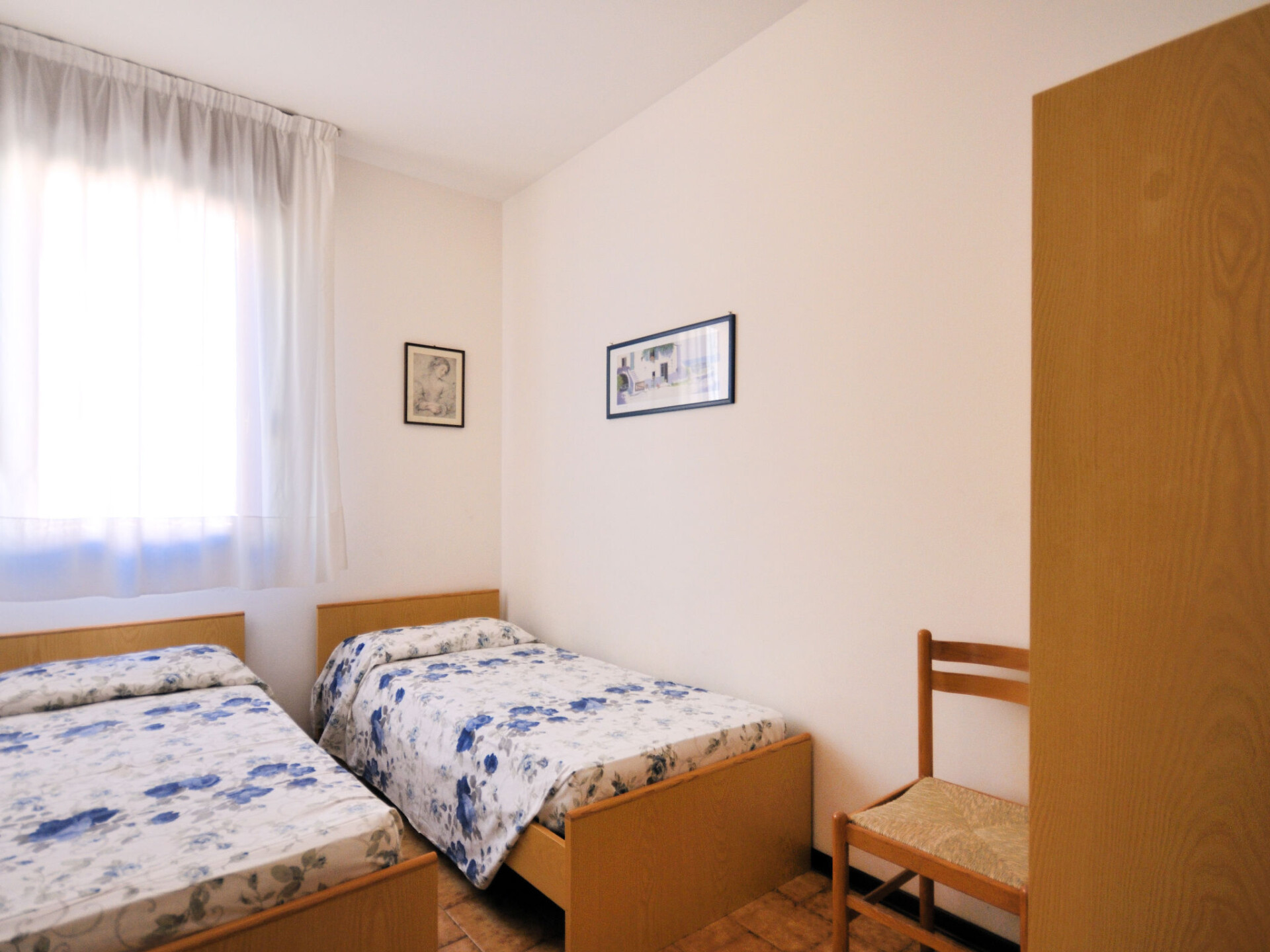 Appartement 3-kamers 48 m2, op de bovenverdieping. Doelmatig ingericht: woon-/slaapkamer met 1 2-pers divanbed, eettafel, kookhoek en Sat-TV. Uitgang naar het balkon. 1 2-pers. kamer. Uitgang naar het balkon. 1 kamer met 2 bedden. Kookhoek (Gasfornuis, 4 kookpitten (vlammen), magnetron, diepvriezer, elektrische koffiemachine). Douche/WC. Air-conditioning, heteluchtverwarming. Verwarming niet in alle ruimtes. Balkon. Balkonmeubilair. Ter beschikking: kluis, kinderstoel, kinderbed (extra). Internet (WiFi, gratis). Parkeerplaats (omheind, 1 Auto) bij het huis. Maximaal 1 huisdier/hond toegestaan. De beschrijving betreft een voorbeeld van dit type woning in dit complex. IT027034C2M752QJDD