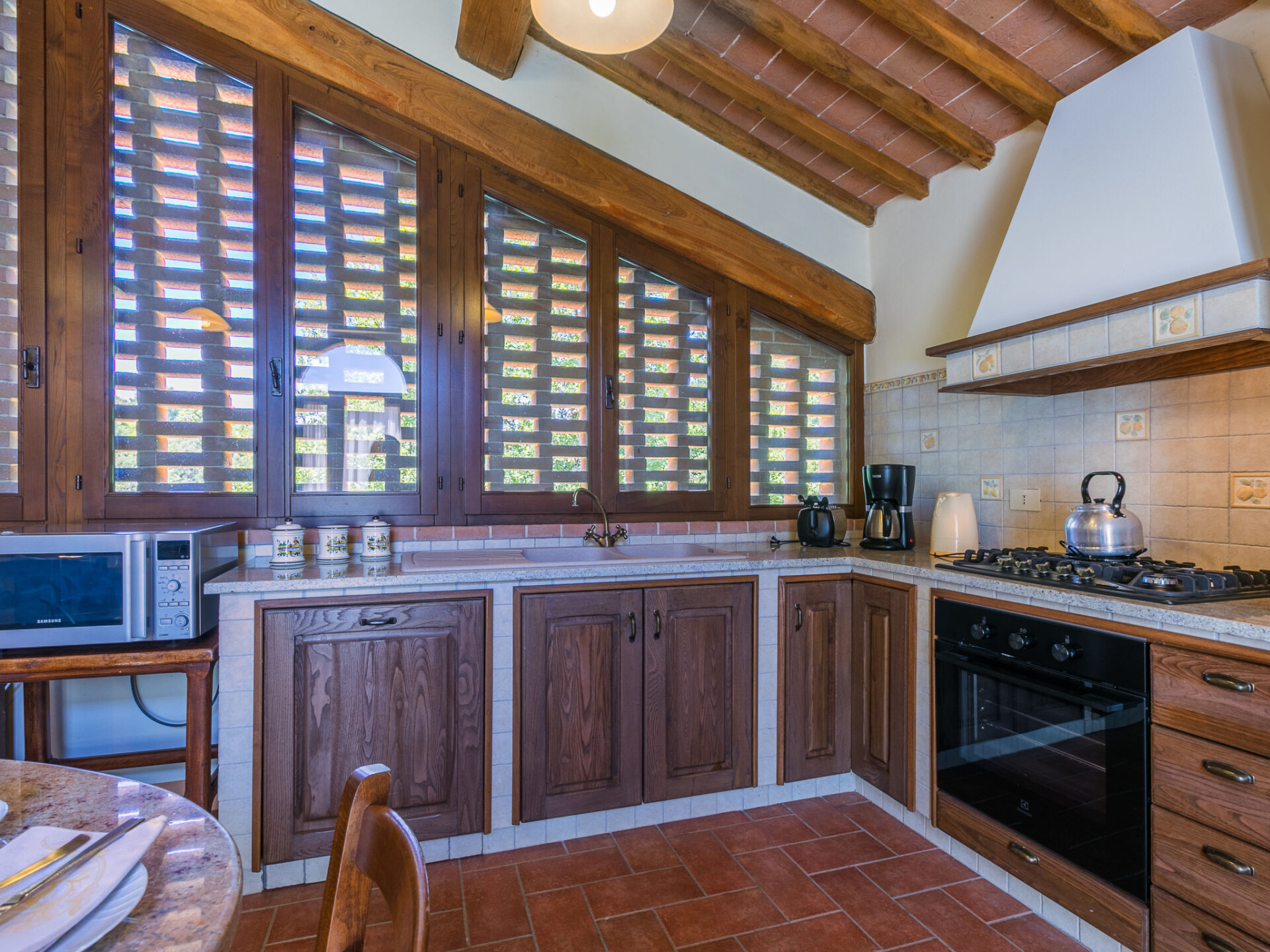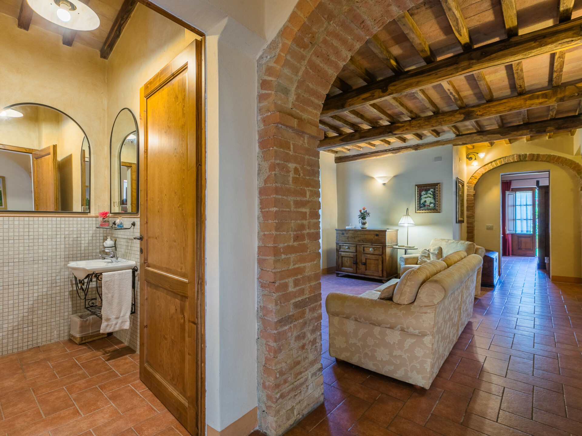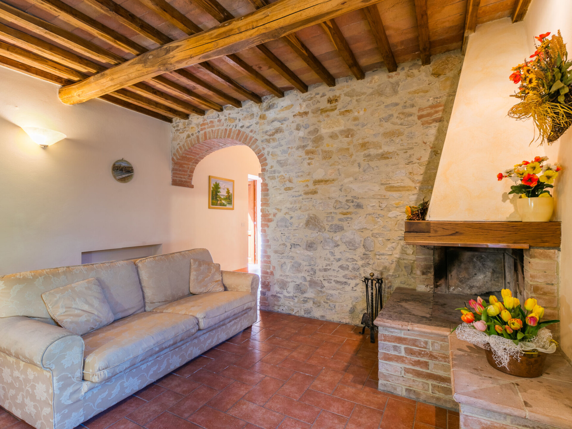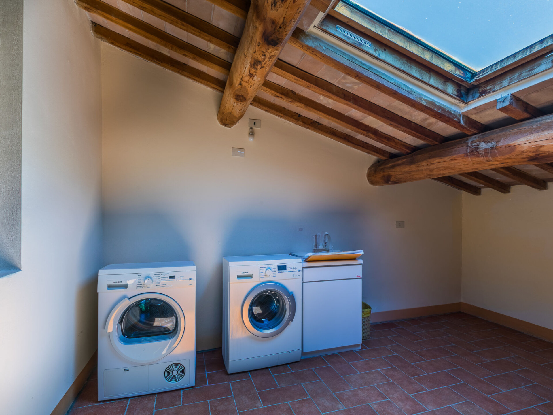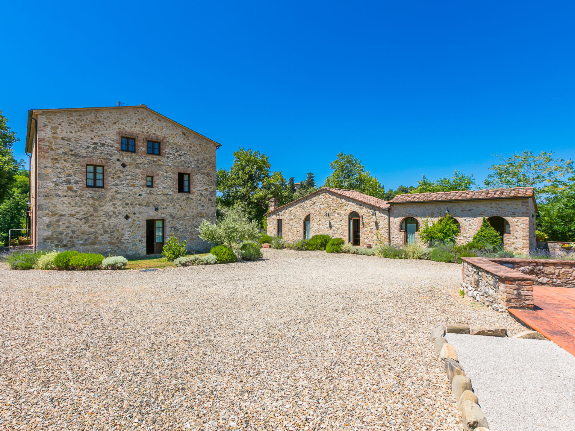 Colle di Val d'Elsa: Groot, comfortabele cottage "Podere San Giuseppe", omgeven door bomen. Huurobject bestaande uit hoofd-/ bijgebouw, 7 km van het centrum van Colle di Val d'Elsa, geïsoleerde, zonnige ligging, 100 m van de bosrand, te midden van groen. Voor alleengebruik: wild terrein, tuin, openluchtzwembad omheind (6 x 12 m, seizoensgebonden beschikbaarheid: 15.Mei. - 30.Sep.). Buitendouche, poolhouse, tafeltennis, patio, terras, tuinmeubelen, barbecue, onderhoud zwembad door de eigenaar/tuinman. In het huis: centrale verwarming, air-conditioning. 1 km lange rommelige toegangsweg. Parkeerplaats bij het huis op het terrein. Bushalte "Colle di Val d'Elsa" 7 km. Auto noodzakelijk. Baby uitrusting (incl.). Groepen jongeren uitsluitend op aanvraag. Geschikt voor evenementen.