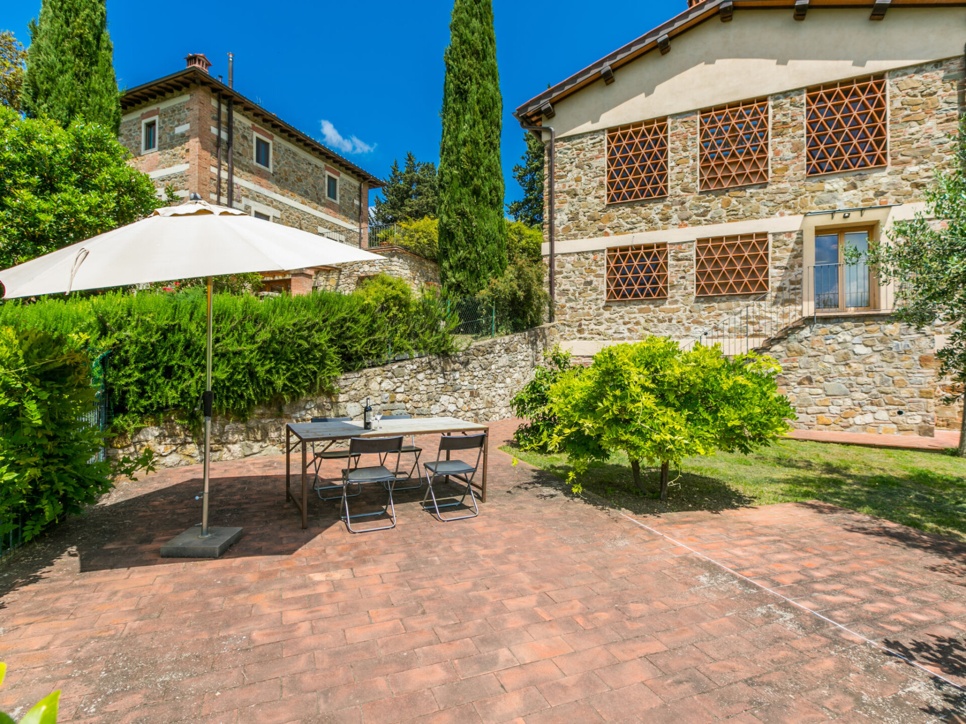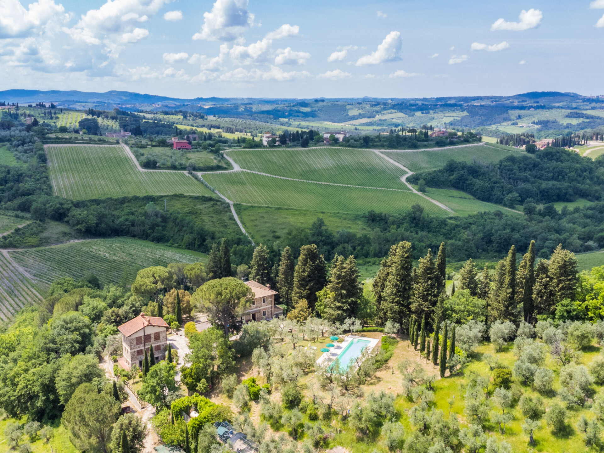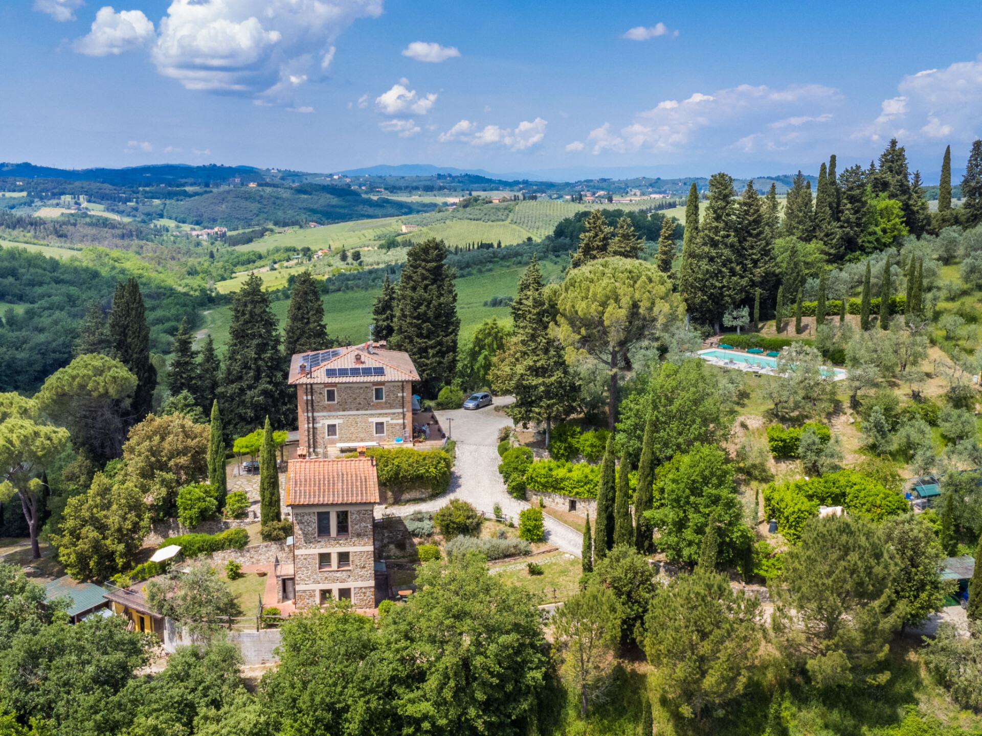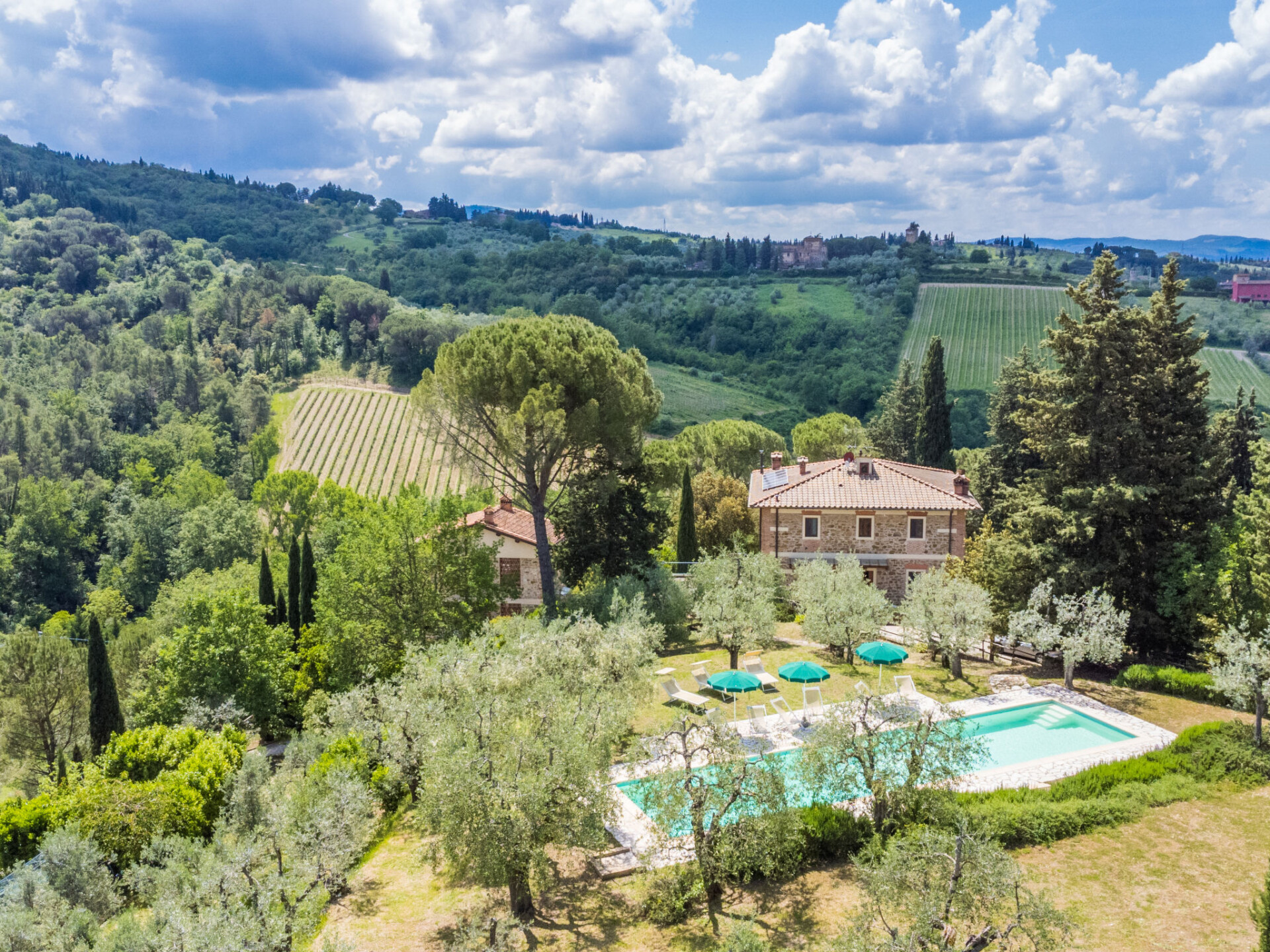 Gezellige cottage "Fienile di Policleto", 350 m boven zeeniveau, omgeven door weiden en wijngaarden. Huurobject bestaande uit hoofd-/ bijgebouw, 6 km van het centrum van San Polo in Chianti, 6 km van het centrum van Grassina, 15 km van het centrum van Firenze, geïsoleerde, verhoogde ligging, te midden van groen. Voor medegebruik: terrein 10.000 m2, tuin op verschillende niveaus (niet omheind) met bomen, binnenplaats. Voor alleengebruik: openluchtzwembad (17 x 4 m, 120 - 220 cm diepte, seizoensgebonden beschikbaarheid: 01.Mei. - 15.Okt.) met zout-elektrolyse. Buitendouche, barbecue, onderhoud zwembad door de eigenaar/tuinman. In het huis: centrale verwarming, air-conditioning. Parkeerplaats op het terrein. Winkel 2 km, levensmiddelenwinkel 2 km, supermarkt 6 km, restaurant 2 km, bushalte 7 km. Golfterrein (19 holes) 7.5 km, tennis 6 km. Attracties in de buurt: Greve in Chianti 15 km, San Gimignano 55 km, Siena 70 km. Auto noodzakelijk. Baby uitrusting (incl.). De eigenaar accepteert geen jeugdgroepen. Eigenaar woont in apart huisgedeelte. De eigenaar heeft een hond. Dieren in de buurt.