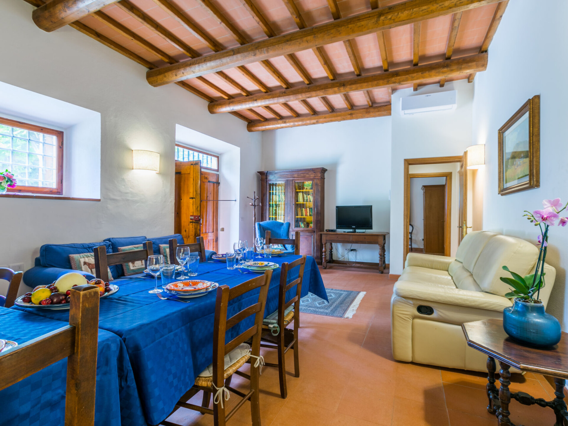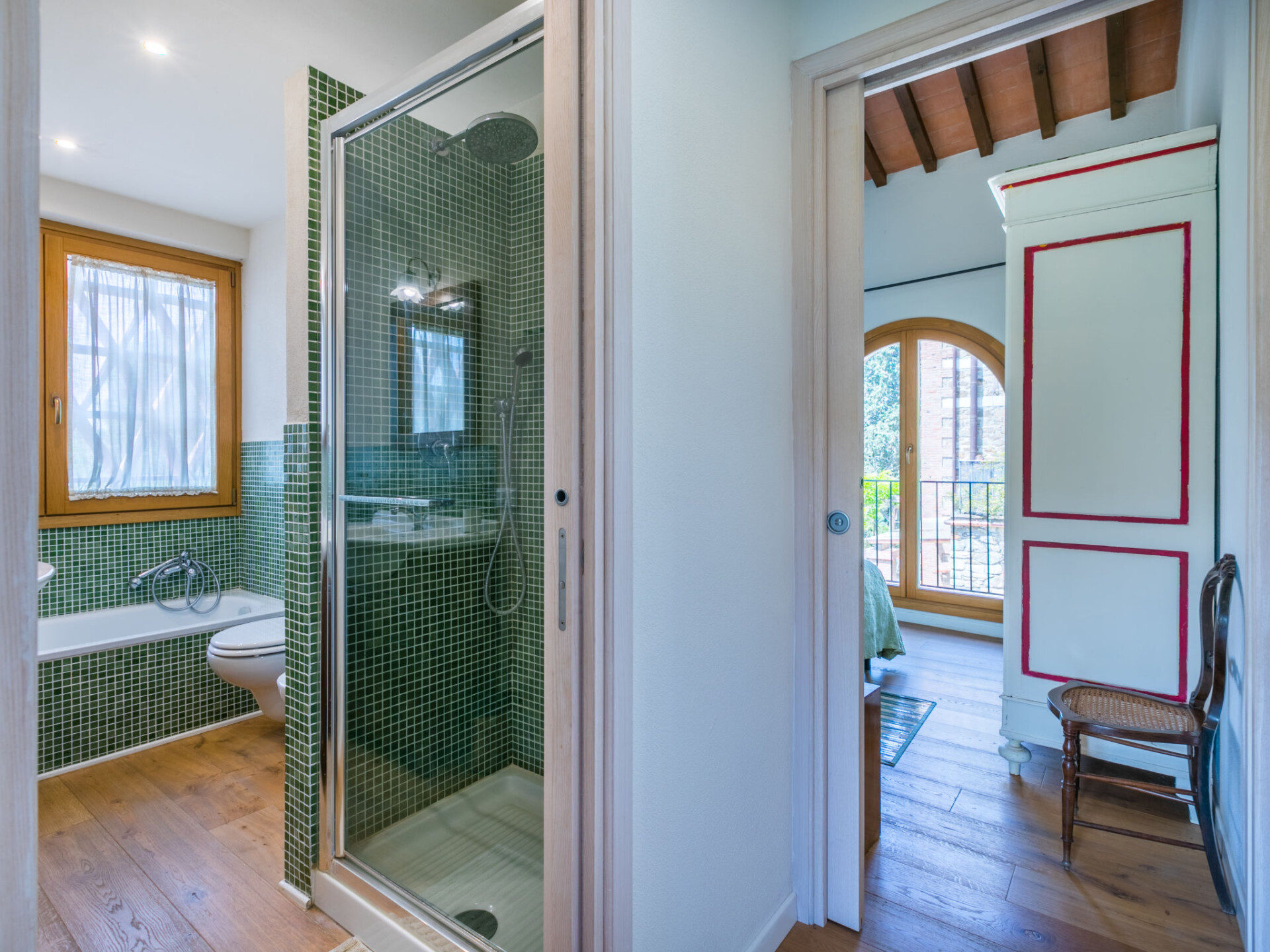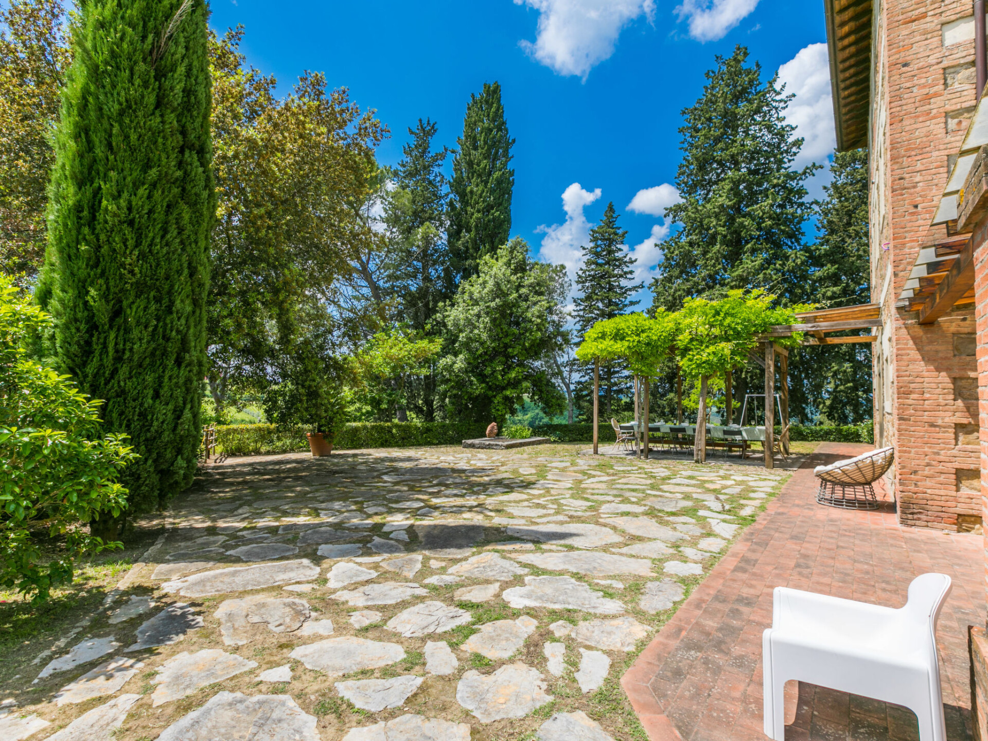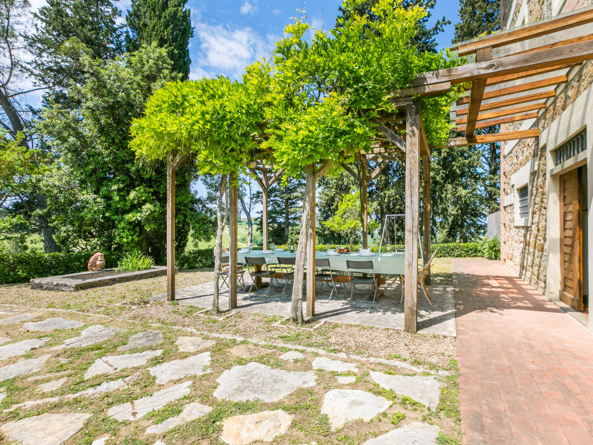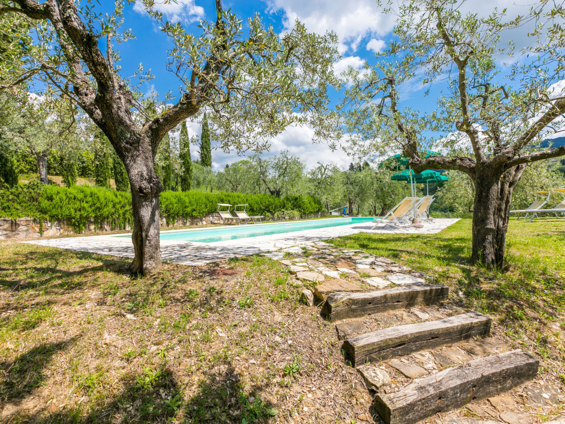 Gezellige cottage "Fienile di Policleto", 350 m boven zeeniveau, omgeven door weiden en wijngaarden. Huurobject bestaande uit hoofd-/ bijgebouw, 6 km van het centrum van San Polo in Chianti, 6 km van het centrum van Grassina, 15 km van het centrum van Firenze, geïsoleerde, verhoogde ligging, te midden van groen. Voor medegebruik: terrein 10.000 m2, tuin op verschillende niveaus (niet omheind) met bomen, binnenplaats. Voor alleengebruik: openluchtzwembad (17 x 4 m, 120 - 220 cm diepte, seizoensgebonden beschikbaarheid: 01.Mei. - 15.Okt.) met zout-elektrolyse. Buitendouche, barbecue, onderhoud zwembad door de eigenaar/tuinman. In het huis: centrale verwarming, air-conditioning. Parkeerplaats op het terrein. Winkel 2 km, levensmiddelenwinkel 2 km, supermarkt 6 km, restaurant 2 km, bushalte 7 km. Golfterrein (19 holes) 7.5 km, tennis 6 km. Attracties in de buurt: Greve in Chianti 15 km, San Gimignano 55 km, Siena 70 km. Auto noodzakelijk. Baby uitrusting (incl.). De eigenaar accepteert geen jeugdgroepen. Eigenaar woont in apart huisgedeelte. De eigenaar heeft een hond. Dieren in de buurt.
