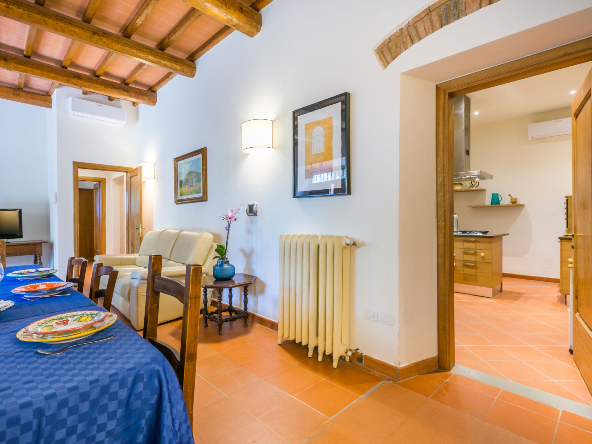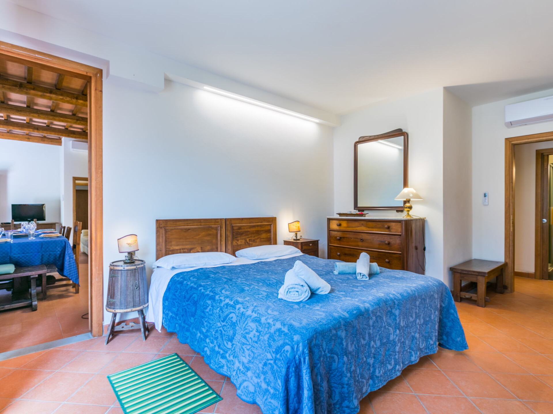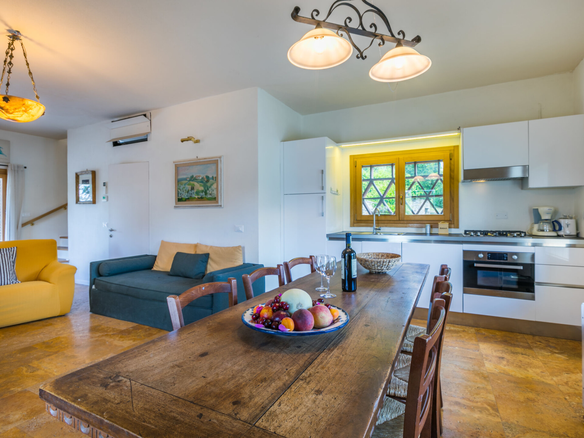 "Policleto", huis 9-kamers 270 m2 op 3 verdiepingen. Ruim, gedeeltelijk gerenoveerd in 2023, comfortabel en gezellig ingericht: woon-/eetkamer met eettafel, Sat-TV, houtkachel en air-conditioning. 2 2-pers. kamers, elke kamer heeft douche/bidet/WC en air-conditioning. Uitgang naar de tuin. 1 2-pers. kamer met douche/bidet/WC en air-conditioning. Keuken (oven, afwasmachine, 5 kookpitten (vlammen), broodrooster, waterkoker, magnetron, diepvriezer, elektrische koffiemachine) met air-conditioning. Souterrain: (buitentrap) woon-/eetkamer met kookhoek. Uitgang naar de tuin. 1 2-pers. kamer. Douche/bidet/WC. Bovenverdieping: woon-/eetkamer met open haard, Sat-TV en air-conditioning. Open keuken (oven, afwasmachine, 4 kookpitten (vlammen), broodrooster). Douche/bidet/WC. 2e Verdieping: 2 2-pers. kamers, elke kamer heeft air-conditioning. Bad/douche/bidet/WC. Elektrische verwarming (extra), air-conditioning. Parketvloeren, natuurstenen vloeren. Groot tuin 100 m2. Terrasmeubelen, barbecue, bergruimte. Mooi panoramazicht op het landschap. Ter beschikking: wasmachine, kinderstoel, kinderbed tot 2 jaar. Internet (WiFi, gratis). Parkeerplaats bij het huis. Eén tweepersoonskamer is buiten het appartement. Rookvrij huis. Rookmelders, brandblusser. Geen interne verbinding tussen de aparte wooneenheden. IT048001B5KNPC4G7Y