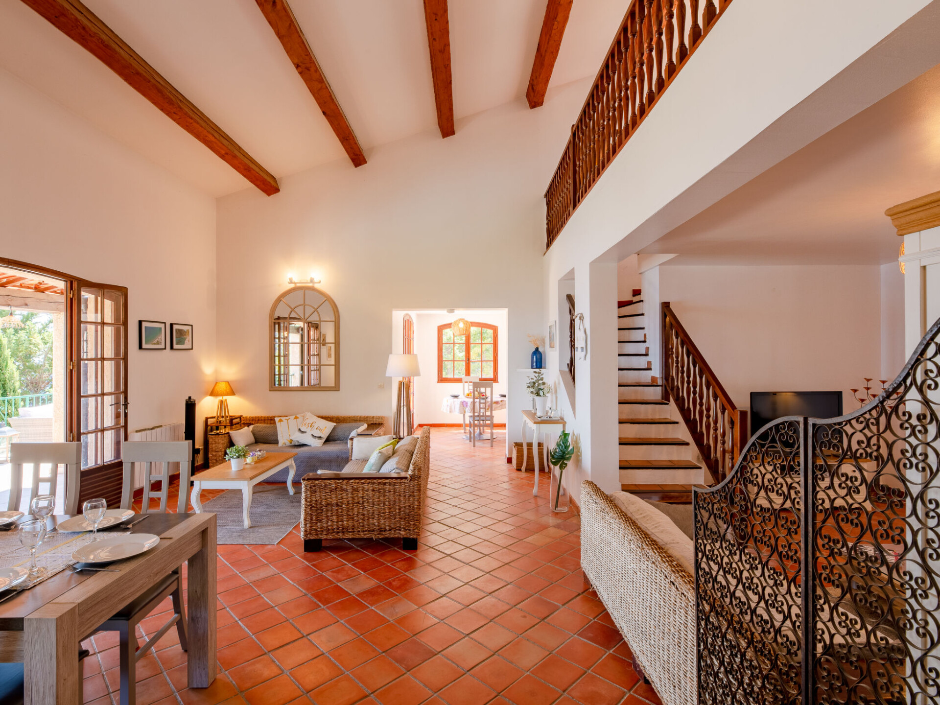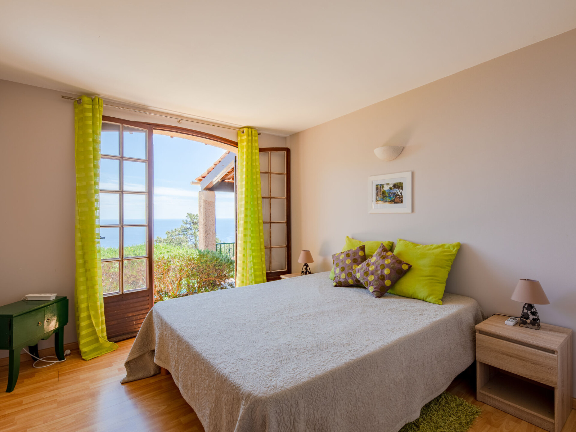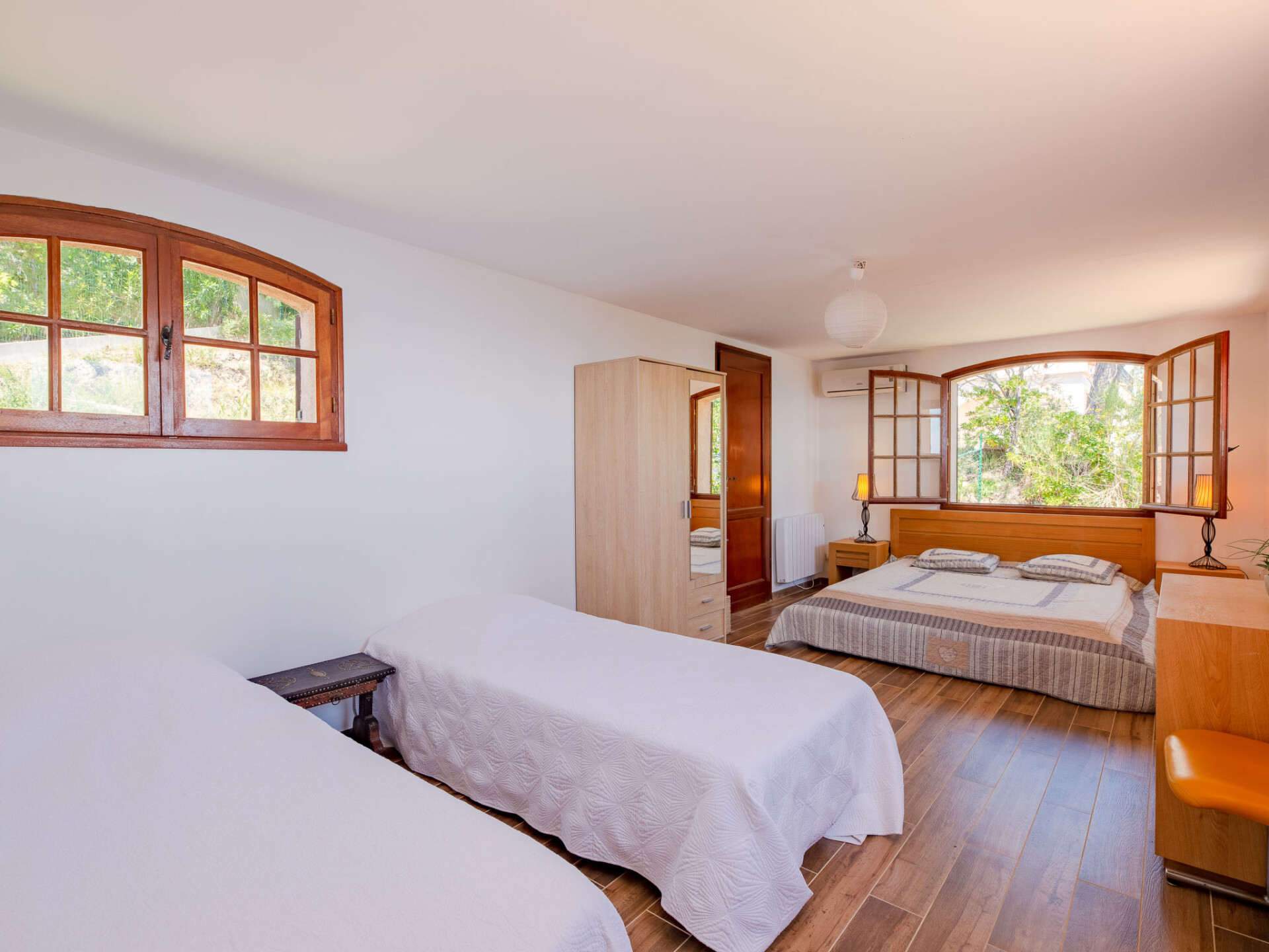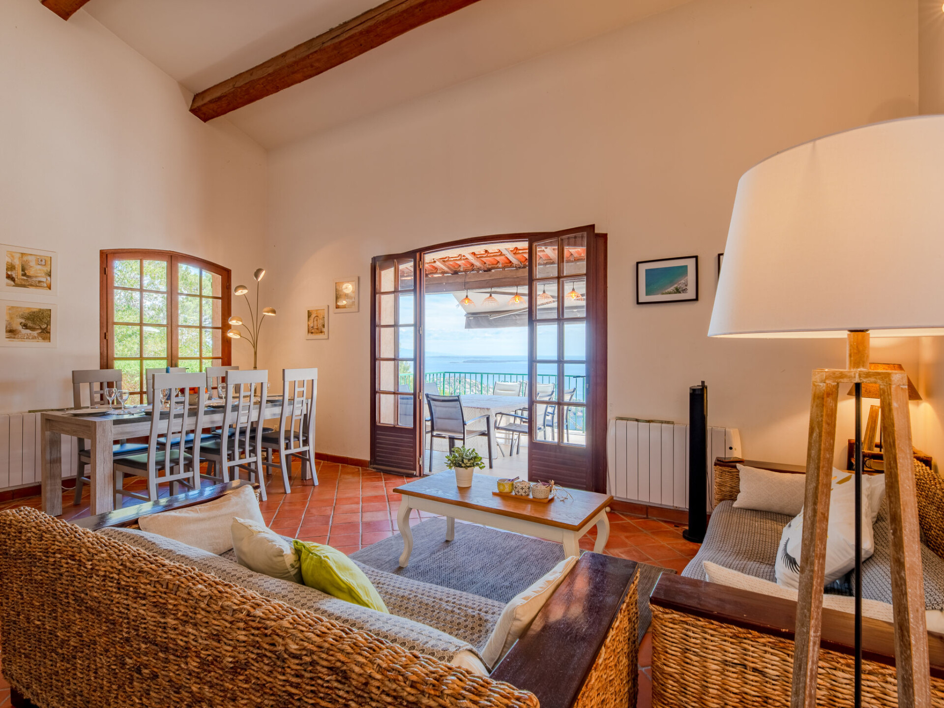 "Ponderosa", huis 4-kamers 175 m2 op 2 verdiepingen. Gerenoveerd in 2014, comfortabel ingericht: woon-/eetkamer met eettafel en Sat-TV. Uitgang naar het terras. 2 kamers, elke kamer heeft 1 2-pers bed (160 cm, lengte 200 cm), air-conditioning. Uitgang naar het terras. Open keuken (oven, afwasmachine, 3 inductiekookplaten, broodrooster, waterkoker, magnetron, diepvriezer, elektrische koffiemachine). Douche, douche/WC, aparte WC, dubbele wastafels. Bovenverdieping: open galerij met 1 2-pers bed (140 cm, lengte 190 cm). Uitgang naar het terras. 1 kamer met 2 bedden (90 cm, lengte 200 cm), 1 2-pers bed (160 cm, lengte 200 cm), air-conditioning. Douche/WC. Elektrische verwarming. Terras 60 m2 gedeeltelijk overdekt, terras 15 m2. Terrasmeubelen, elektrische barbecue, ligstoelen. Uitzicht op zee. Ter beschikking: wasmachine, droger. Internet (WiFi, gratis). Bedindeling is flexibel. Er zijn meer slaapmogelijkheden beschikbaar dan het maximaal toegestane aantal personen dat echter niet mag worden overschreden. In plaats van een afgesloten slaapkamer bevinden sommige slaapgedeeltes zich in een open ruimte (galerij, nis, etc.).