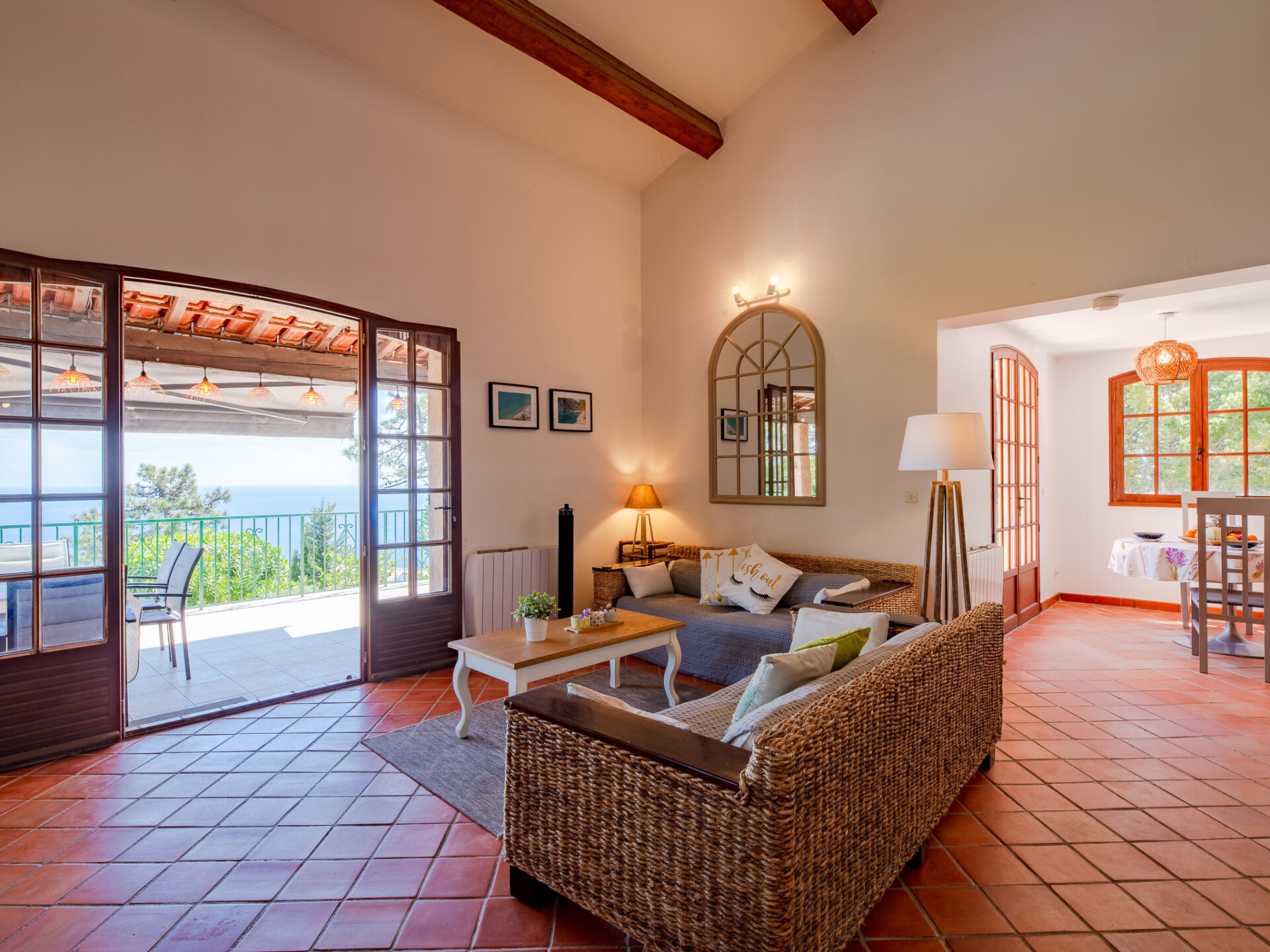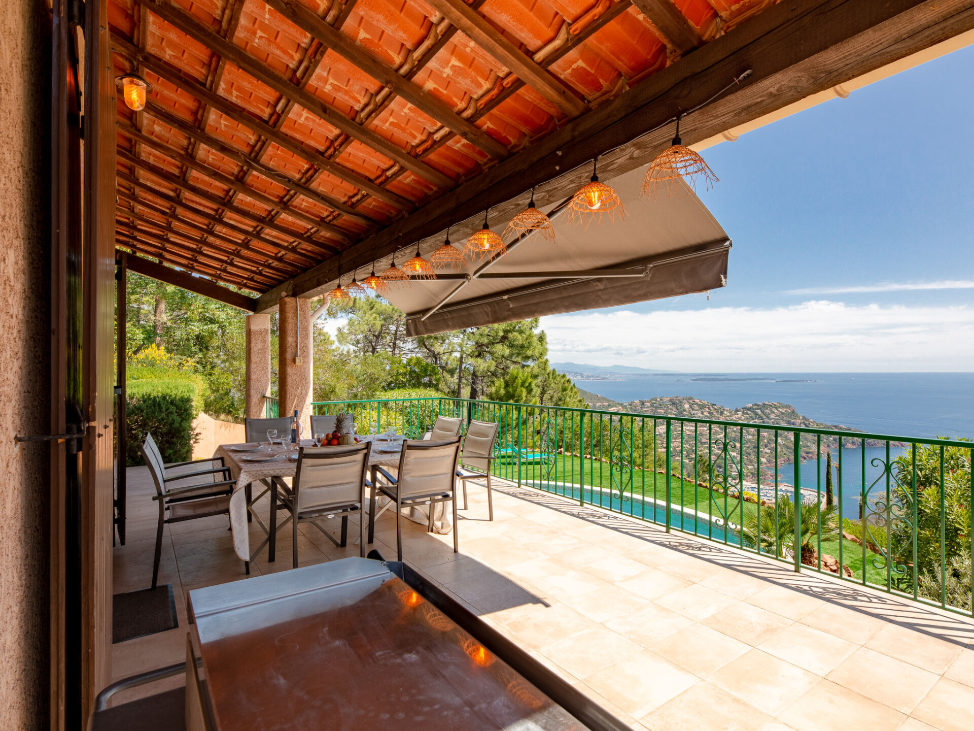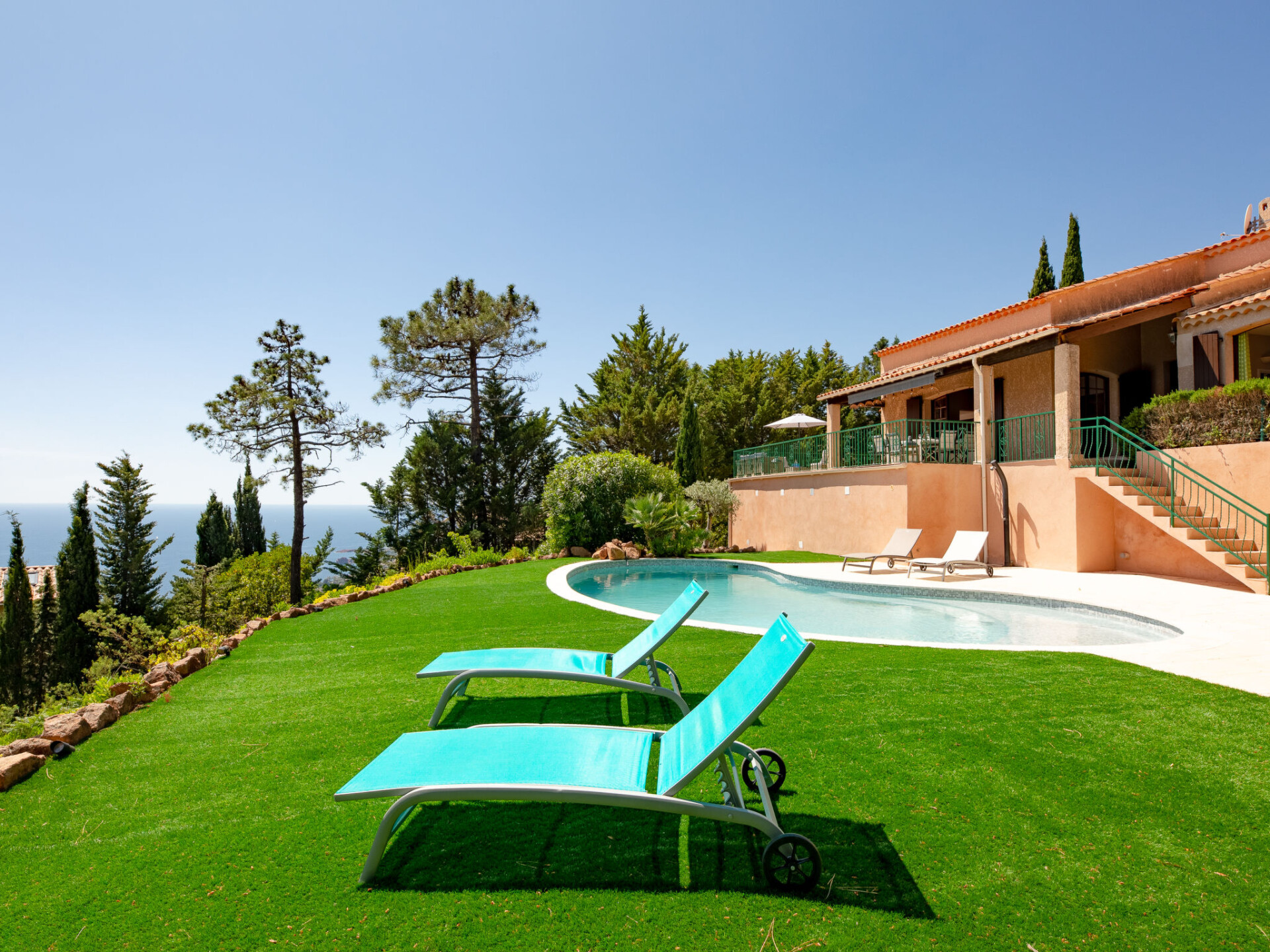 Mooi huis "Ponderosa". 9 km van het centrum van Théoule-sur-Mer, 2.5 km van het centrum van Le Trayas, 22 km van het centrum van Saint Raphael, tegen een helling, in een woonwijk, 3 km van zee. Voor alleengebruik: wild terrein 1.500 m2 (omheind), openluchtzwembad niervormig (13 x 4 m, seizoensgebonden beschikbaarheid: 01.Jan. - 31.Dec.) met alarminstallatie en zout-elektrolyse. Buitendouche. Steile toegangsweg. Parkeerplaats (voor 3 auto's) op het terrein. Winkel 9 km, bakkerij 2.5 km, bushalte 2.2 km, rotsstrand 3 km.