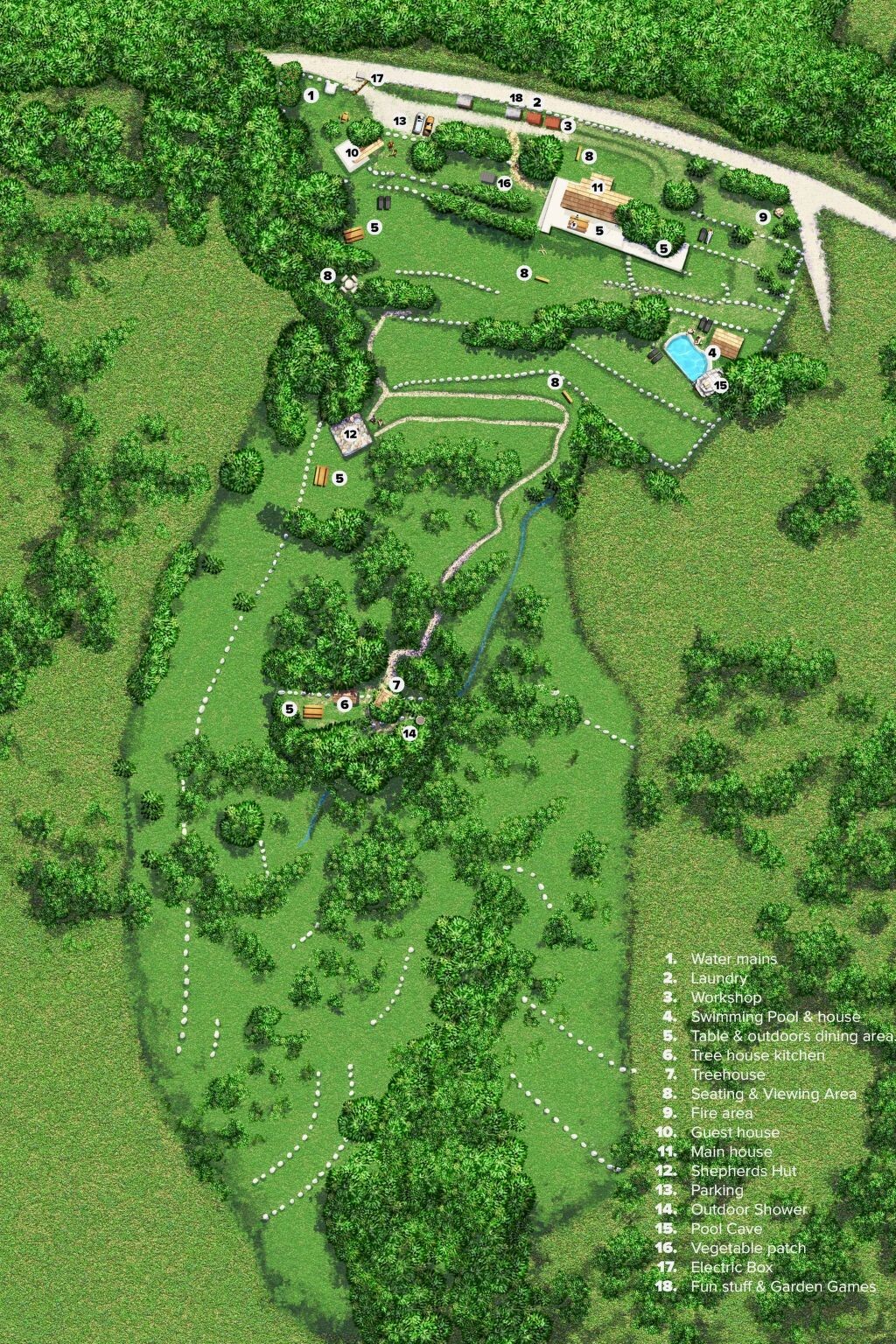 This self-catering private holiday estate is nestled in the mountain of the Languedoc natural park. The local town is just a 5 minutes drive down the hill to Bedarieux. The estate with 2 hectares of land is spoiled with stunning views of the mountains and is completely secluded from the rest of the world. Whether you are looking for a family holiday, an exclusive holiday with friends, or a private retreat for you to escape for some alone time, this is the perfect choice for you.The estate offers private parking with electric gates, plus a housekeeper on call. So, the property is extremely secure and you are just one call away from help if there is an emergency.The private holiday estate provides a place like no other, which allows you to escape the busy lives we all live and provide a totally relaxing experience. Unwind by the natural salt infinity pool, relax in the sauna, or spend a night in the treehouse amidst the sound of nature. Or perhaps chill in the 200 year-old stone shepherd's hut!
