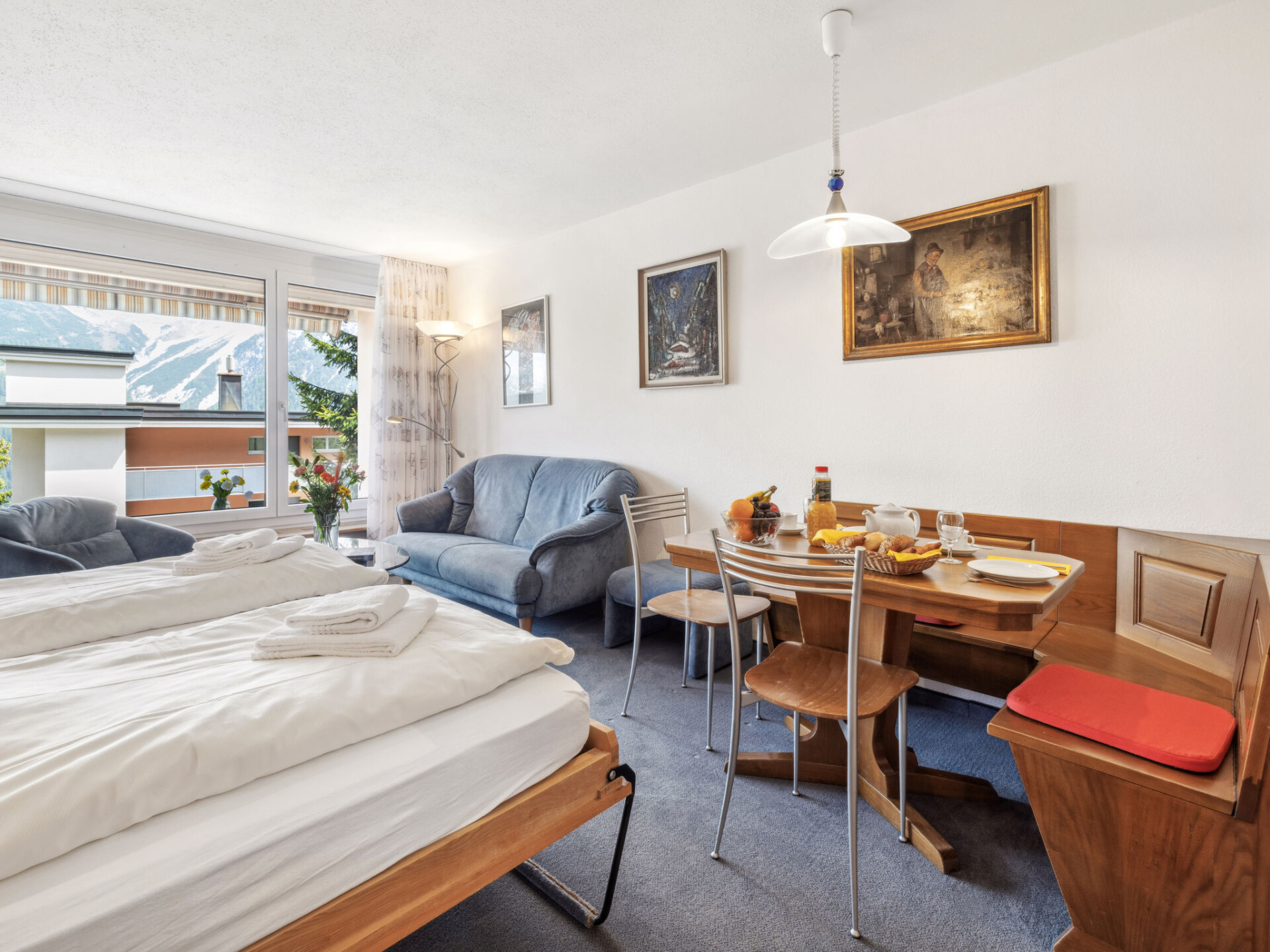 Flatgebouw "Promenade (Utoring)". In de plaats, 500 m van het centrum, rustige ligging. In het huis: salon, tafeltennis, kiosk, lift, berging voor ski's, centrale verwarming, wasmachine (voor medegebruik). Toegangsweg tot aan het huis (bergweg). In de winter sneeuwkettingen aanbevolen, 's winters 4x4 aanbevolen. Parkeerplaats (beperkt aantal, extra) bij het huis, gemeenschappelijke garage (extra), Openbare parkeergarage op 800 m. Winkel 500 m, bushalte "Arosa, Rathaus" 400 m, treinstation "Arosa" 1 km. Ski faciliteiten, skipisten, rodelbaan 500 m. Boodschappendienst mogelijk. Mooie wandelpaden vlak voor het huis. Let op: beperkt aantal parkeerplaatsen! Parkeerplaats of garageplaats moet vooraf worden gereserveerd bij de sleutelhouder: Parkeerplaats CHF 5.00/dag, overdekte parkeerplaats CHF 8.00/dag, garageplaats CHF 16.00/dag. Reserveringen bij de beheerder van het huis. Recreatieruimte met internetaansluiting (WiFi). Skipassen zijn verkrijgbaar bij de receptie.