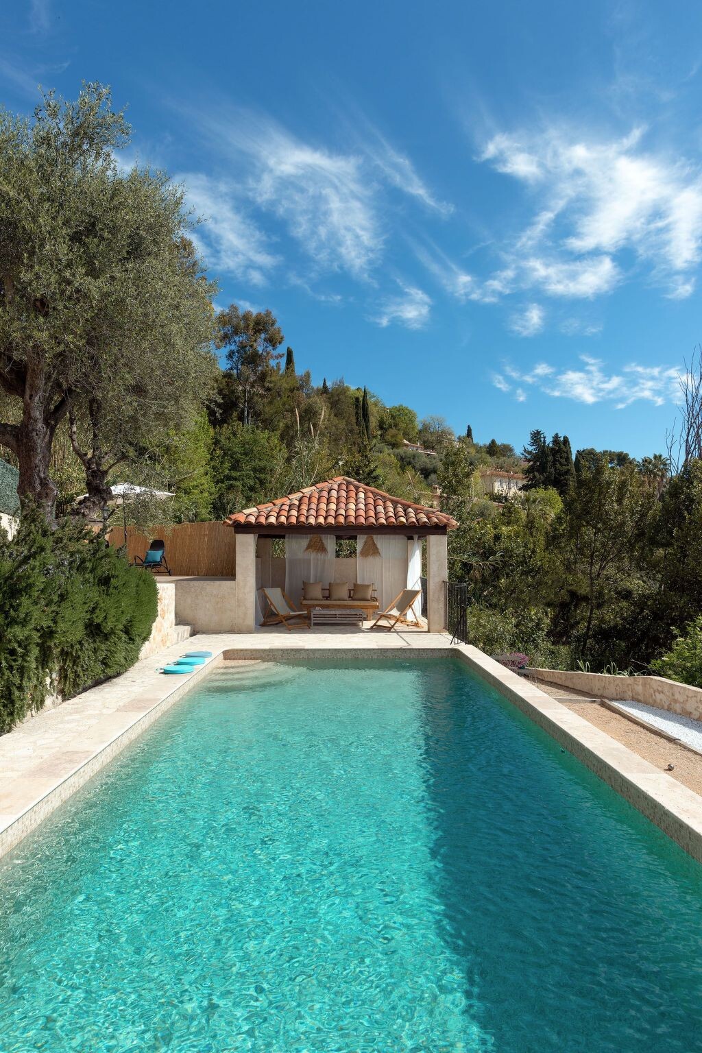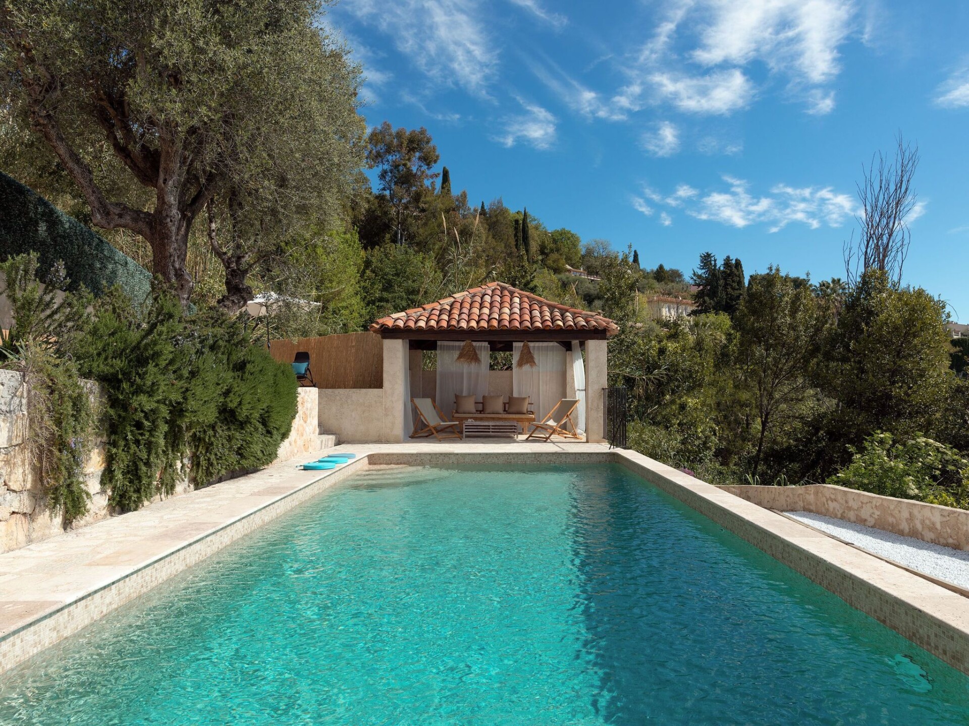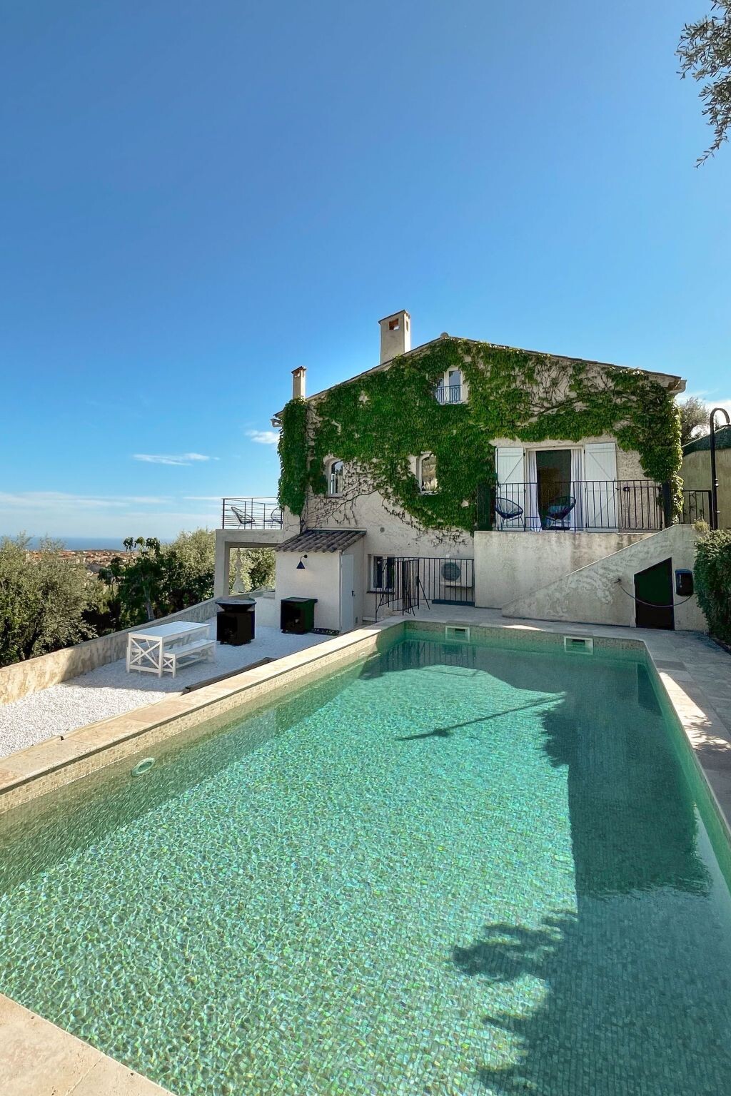 Experience an unforgettable holiday in this charming Provençal holiday home, situated on a picturesque hillside plot surrounded by olive trees. With its unique location, the villa offers breathtaking panoramic views over Nice, Vence and the sparkling Mediterranean Sea. This idyllic domicile promises peace and tranquillity while you enjoy the luxurious comfort and privacy of your own home.The interior of the house is designed to make your stay as pleasant as possible. Amenities include partial air conditioning, underfloor heating in selected areas and a fully equipped kitchen with induction hob, capsule coffee machine and dishwasher for your convenience. Additional cosiness is provided by a fireplace, several fans, a washing machine and a tumble dryer, which are available for exclusive use in the property.Outside, the spacious saltwater pool is for your exclusive use, surrounded by a sun terrace and a charming summer house - perfect for enjoying sunny days to the full. The garden of the holiday home extends over several levels and offers plenty of space to relax or conjure up culinary delights in the OFYR grill. The large terrace alongside the house is the ideal place to enjoy outdoor meals together.The surroundings of Vence are equally impressive. The old town centre of Vence with its variety of restaurants and shops is just a short walk away. The beaches of Cagnes-sur-Mer, Nice airport and the Promenade des Anglais are just a 15-20 minute drive away. You can also discover the charming medieval villages and local markets that make the region a real gem.Let yourself be enchanted by the magic of this Provençal holiday home and enjoy a holiday that combines relaxation, comfort and the beauty of the Côte d'Azur. Here you will find the perfect retreat for an unforgettable holiday with family or friends, far away from everyday life. 06157023769DP