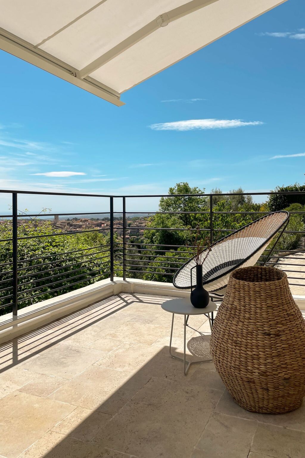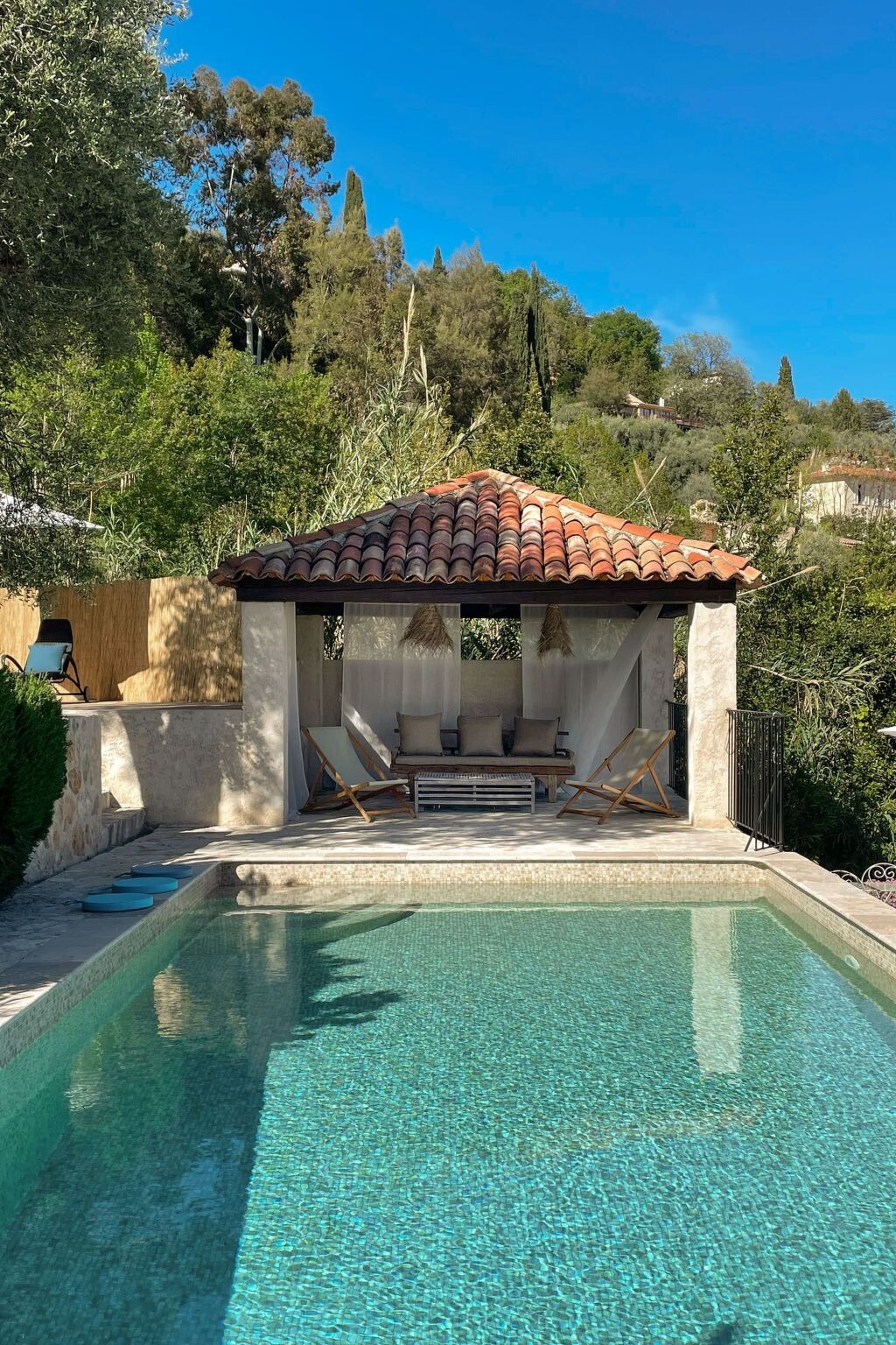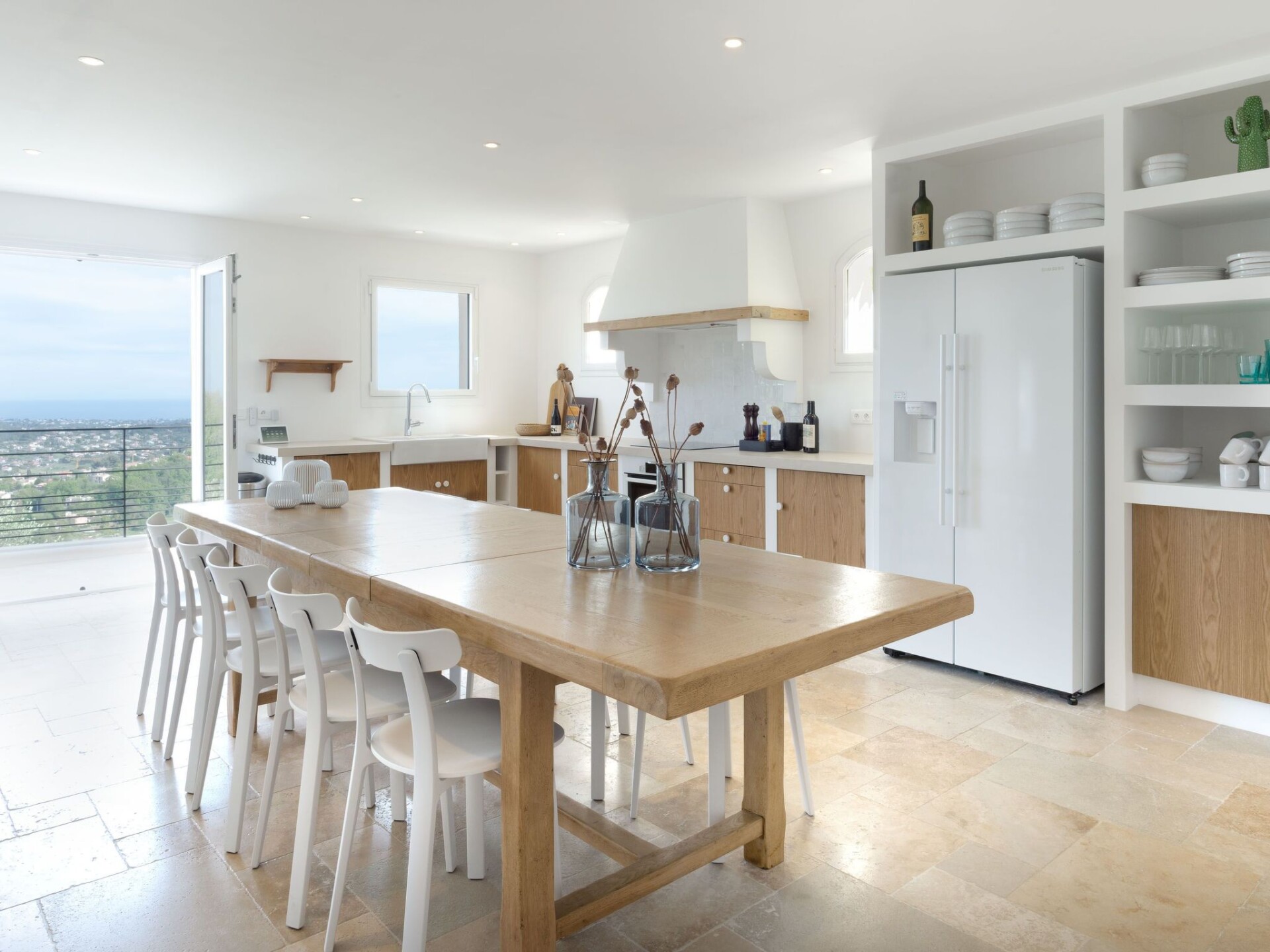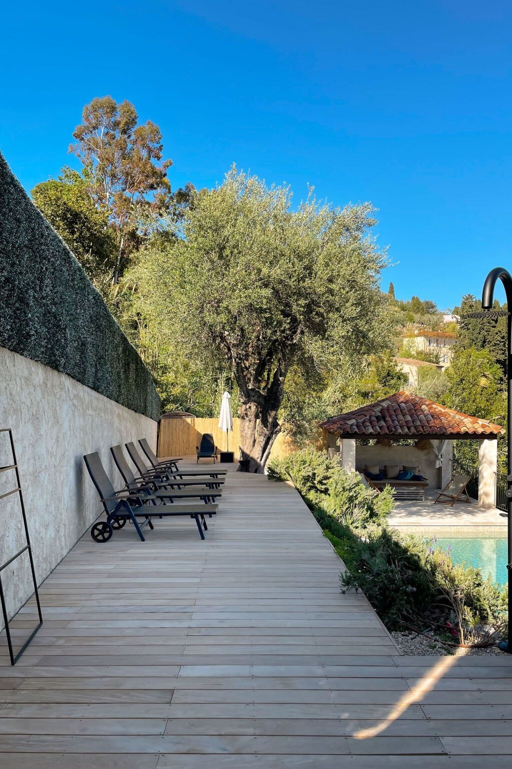 Experience an unforgettable holiday in this charming Provençal holiday home, situated on a picturesque hillside plot surrounded by olive trees. With its unique location, the villa offers breathtaking panoramic views over Nice, Vence and the sparkling Mediterranean Sea. This idyllic domicile promises peace and tranquillity while you enjoy the luxurious comfort and privacy of your own home.The interior of the house is designed to make your stay as pleasant as possible. Amenities include partial air conditioning, underfloor heating in selected areas and a fully equipped kitchen with induction hob, capsule coffee machine and dishwasher for your convenience. Additional cosiness is provided by a fireplace, several fans, a washing machine and a tumble dryer, which are available for exclusive use in the property.Outside, the spacious saltwater pool is for your exclusive use, surrounded by a sun terrace and a charming summer house - perfect for enjoying sunny days to the full. The garden of the holiday home extends over several levels and offers plenty of space to relax or conjure up culinary delights in the OFYR grill. The large terrace alongside the house is the ideal place to enjoy outdoor meals together.The surroundings of Vence are equally impressive. The old town centre of Vence with its variety of restaurants and shops is just a short walk away. The beaches of Cagnes-sur-Mer, Nice airport and the Promenade des Anglais are just a 15-20 minute drive away. You can also discover the charming medieval villages and local markets that make the region a real gem.Let yourself be enchanted by the magic of this Provençal holiday home and enjoy a holiday that combines relaxation, comfort and the beauty of the Côte d'Azur. Here you will find the perfect retreat for an unforgettable holiday with family or friends, far away from everyday life. 06157023769DP