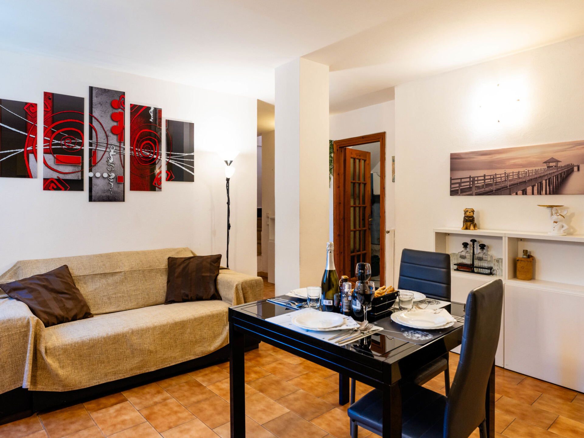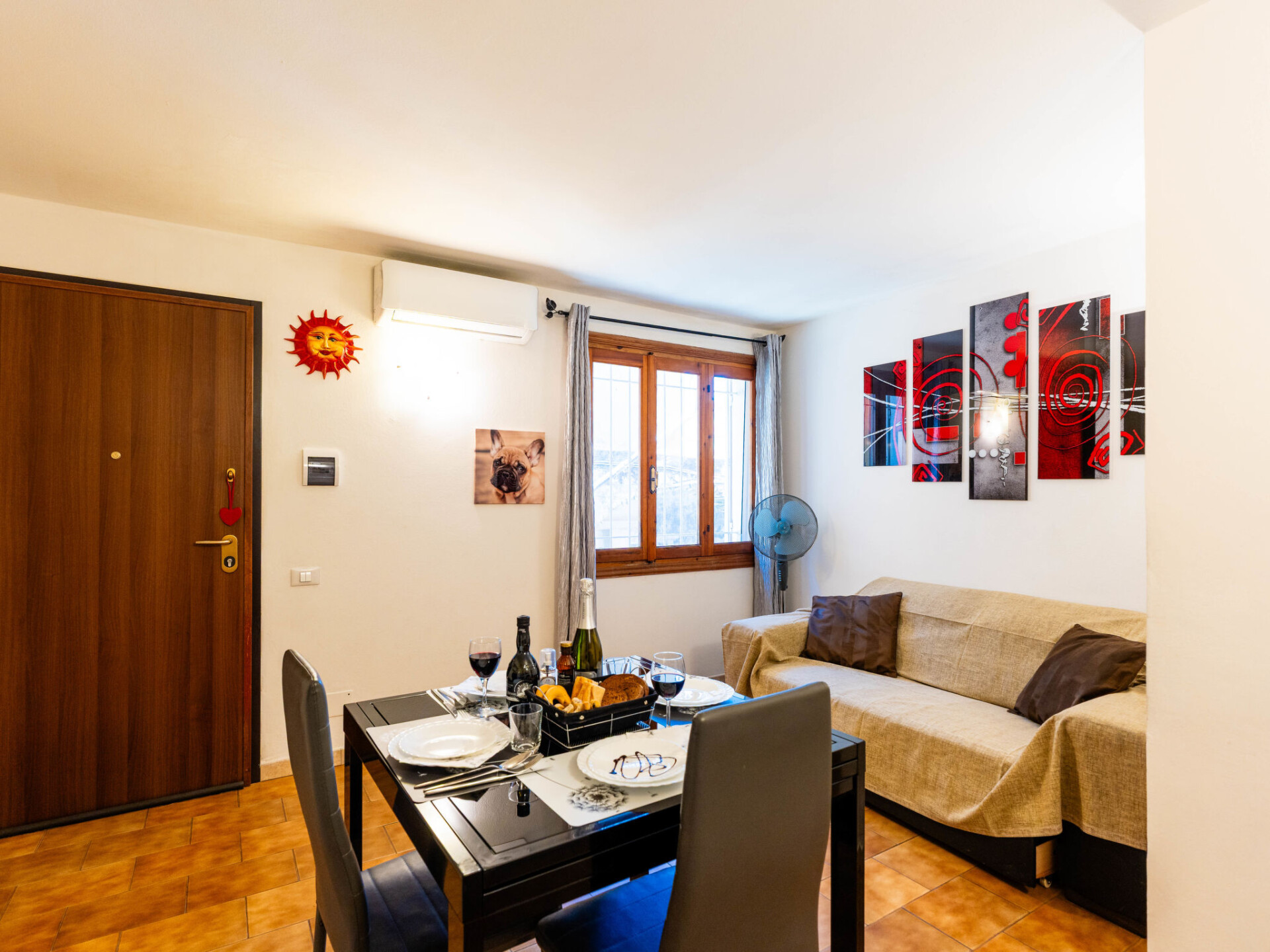 "Pug House", huis in een rij 3-kamers 85 m2. Comfortabel en gezellig ingericht: woon-/eetkamer met 1 divanbed (160 cm, lengte 200 cm), TV. Keuken (oven, afwasmachine, 4 inductiekookplaten, broodrooster, waterkoker). Douche/bidet/WC. Air-conditioning, heteluchtverwarming. Verwarming alleen beschikbaar van 01.11. tot 15.04. Bovenverdieping: 1 2-pers. kamer (160 cm, lengte 200 cm). Uitgang naar het terras. Doorgangskamer met 1 bed (80 cm, lengte 190 cm). Terras 30 m2. Terrasmeubelen. Uitzicht op het landschap en de plaats. Ter beschikking: wasmachine, klamboe, kinderbed tot 2 jaar, haardroger. Internet (WiFi, gratis). Rookvrij huis. Maximaal 1 huisdier/hond toegestaan. Privé ingang, rookmelders, brandblusser. IT008019B4H8MC668I