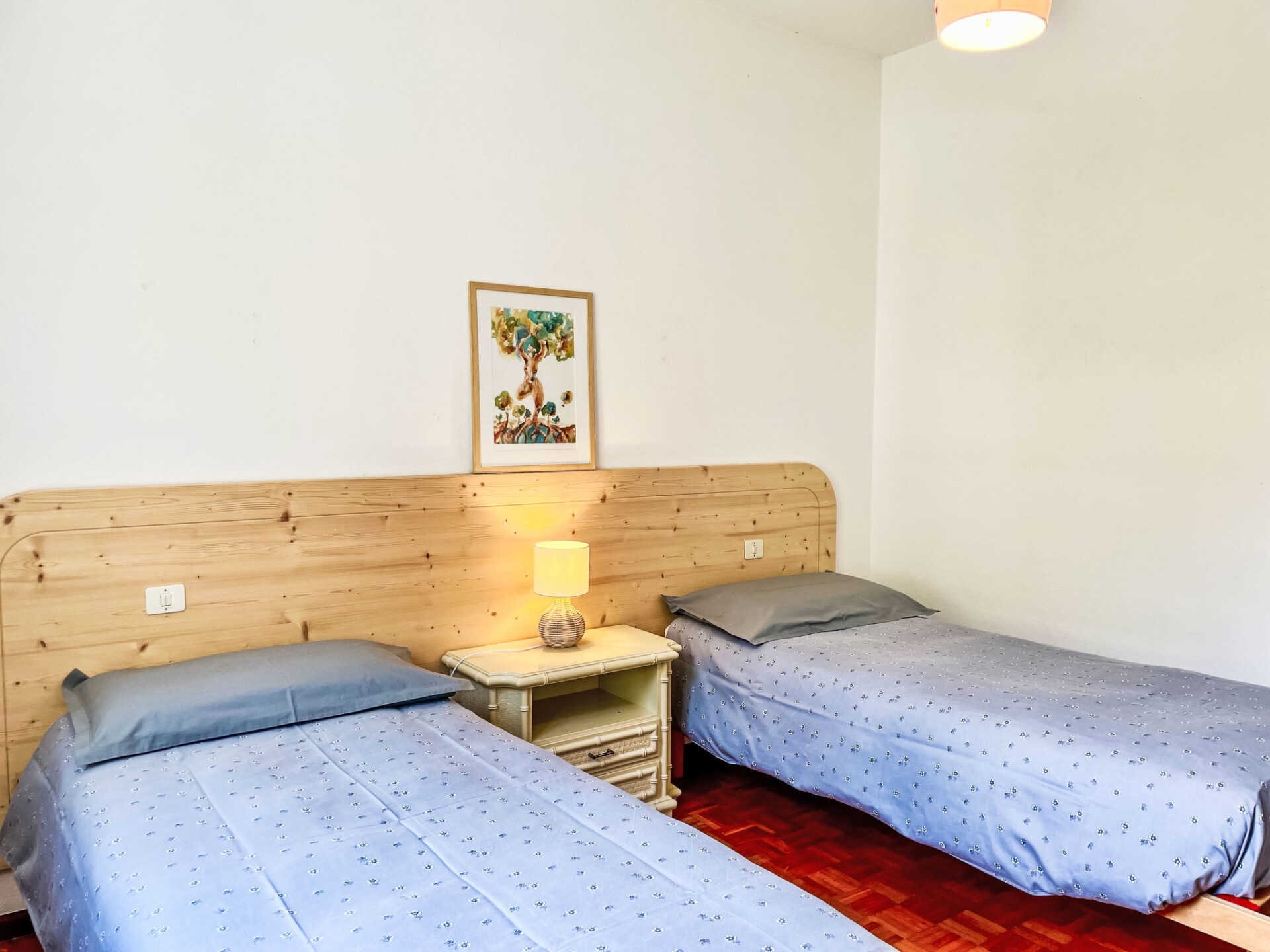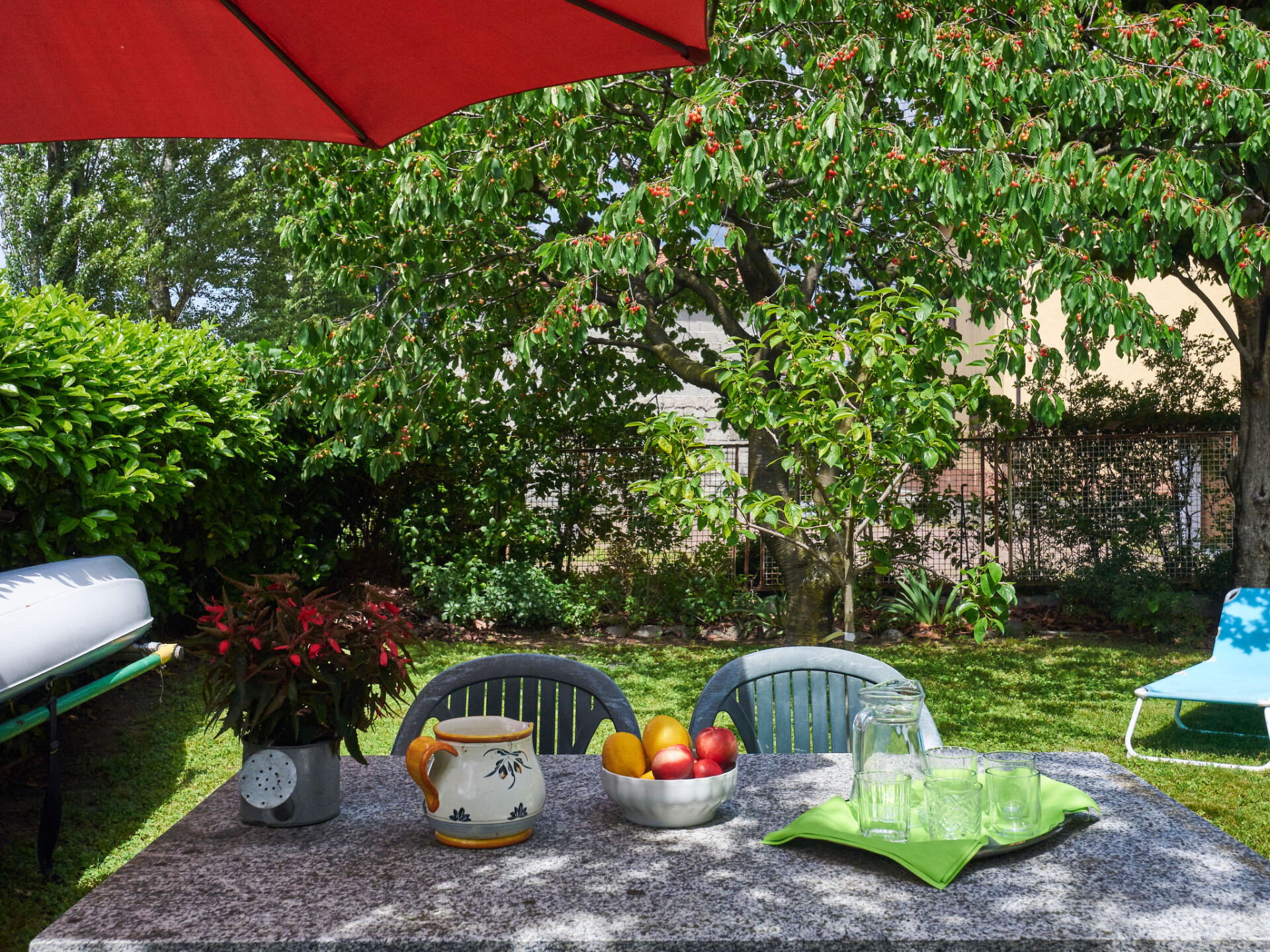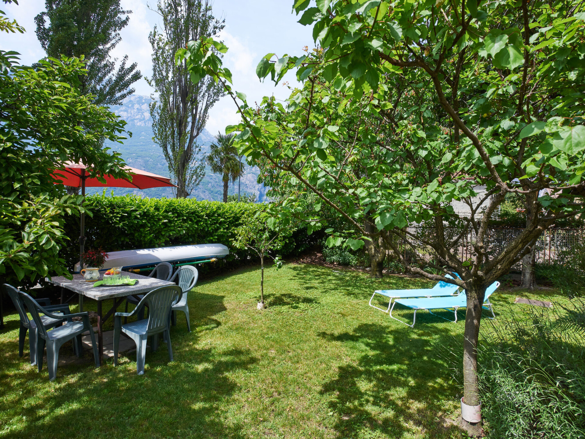 Appartement 4-kamers 100 m2 op de 2e verdieping, op het westen gelegen. Doelmatig ingericht: woon-/eetkamer met eettafel en Sat-TV. 1 kamer met 1 2-pers bed (160 cm). 2 kamers, elke kamer heeft 2 bedden. Keuken (oven, afwasmachine, 4 kookpitten (vlammen), broodrooster, waterkoker, diepvriezer, elektrische koffiemachine) met eettafel. Douche/WC. Olie-verwarming. Parketvloeren. Balkon, zithoek in de tuin, gazon 80 m2. Balkonmeubilair, ligstoelen (4). Uitzicht op het meer en de bergen. Ter beschikking: wasmachine, strijkijzer, kinderstoel, kinderbed tot 2 jaar. Niet rokers woning. Maximaal 2 huisdieren/honden toegestaan. Geen lift. IT014075C2QJSTEJPF