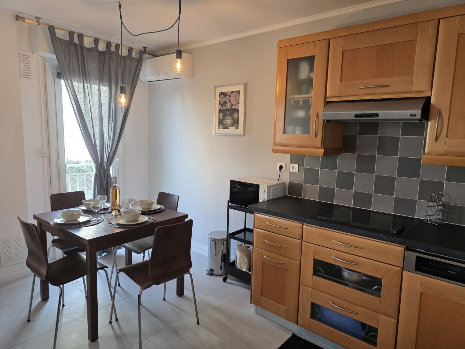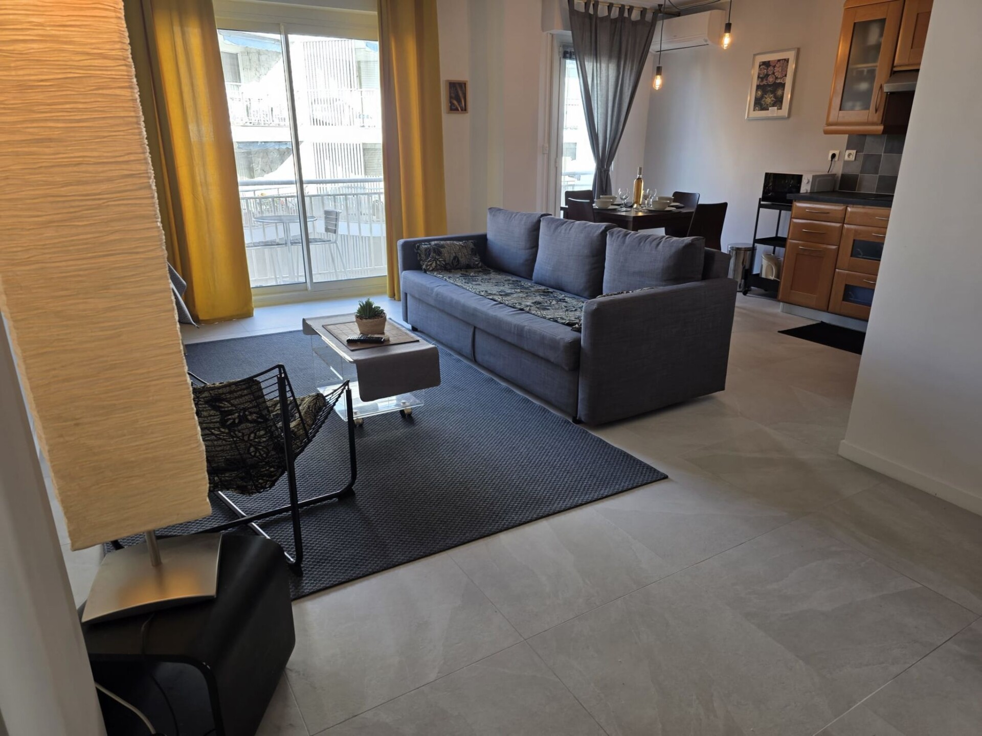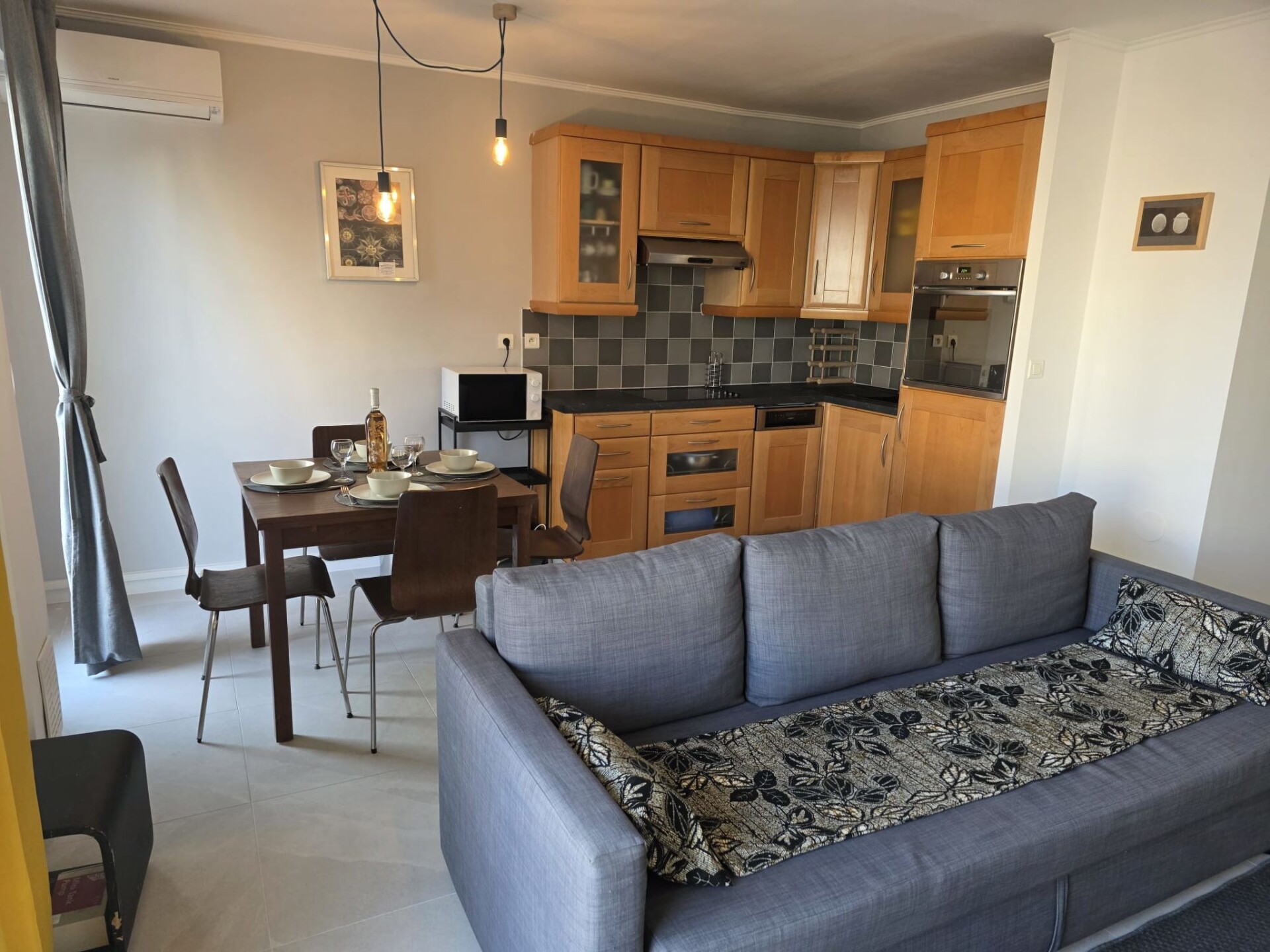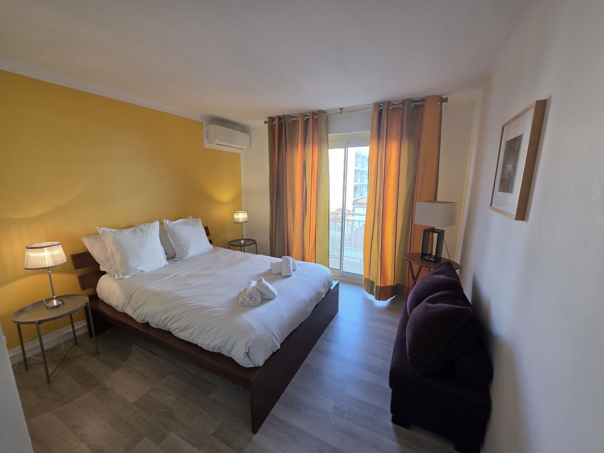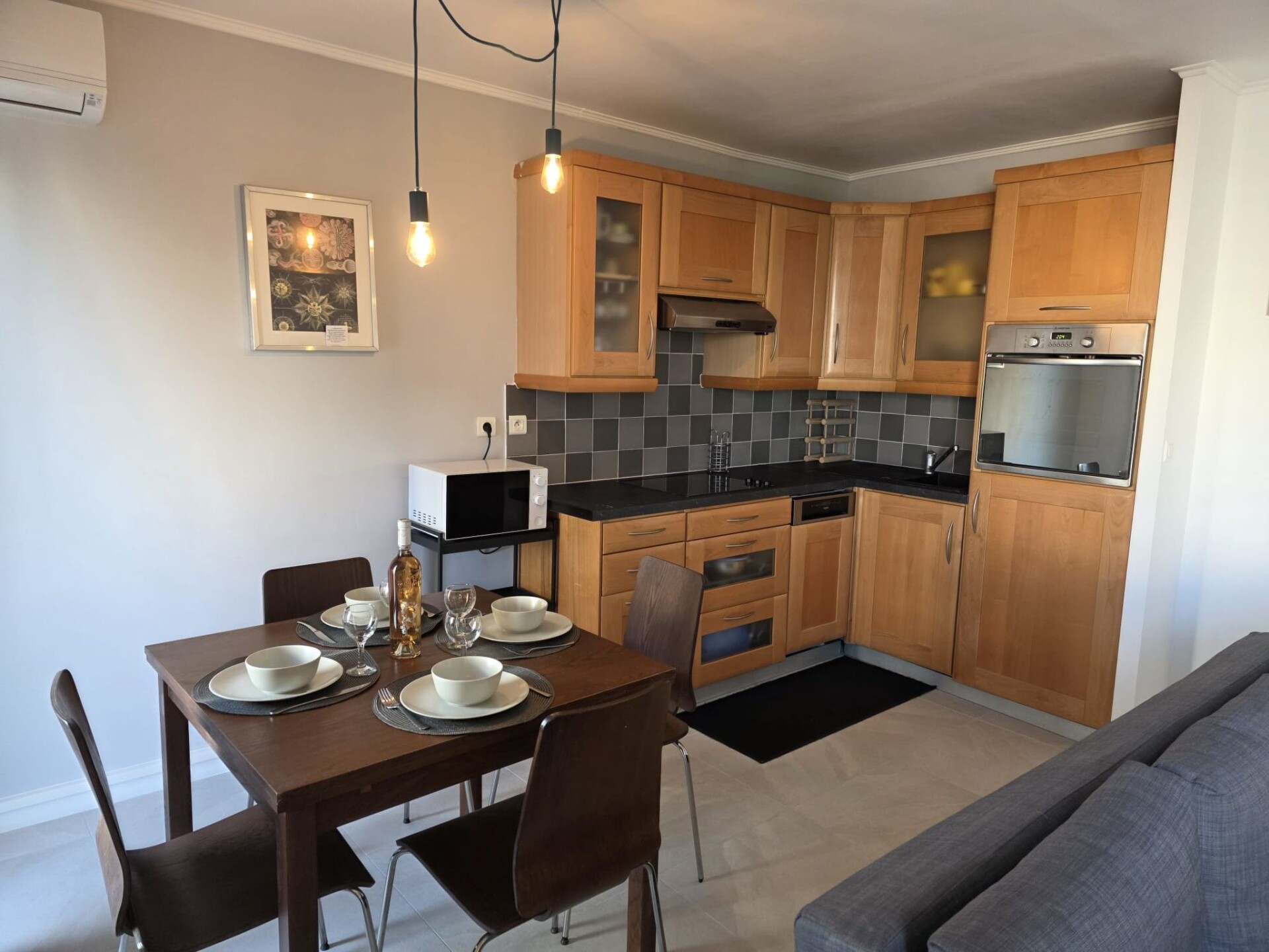 "Résidence Astrid", appartement 2-kamers 58 m2 op de 4e verdieping. Gerenoveerd in 2025, zeer comfortabel en mooi ingericht: groot woon-/eetkamer met 1 2-pers divanbed (140 cm, lengte 190 cm), TV (Flatscreen TV), air-conditioning. Uitgang naar het terras. 1 kamer met 1 2-pers bed (140 cm, lengte 190 cm), air-conditioning. Uitgang naar het terras. Open keuken (oven, afwasmachine, 4 keramische glas kookplaten, broodrooster, waterkoker, magnetron, elektrische koffiemachine, pads voor de koffiemachine (Senseo) extra) met stereo-installatie. Badkamer. Heteluchtverwarming. Terras 8 m2, op het noorden gelegen. Balkonmeubilair. Zijdelings uitzicht op zee. Ter beschikking: wasmachine, strijkijzer. Internet (WiFi, gratis). Parkeerplaats nr. 34 (omheind). Rookmelders. 06029019787DP