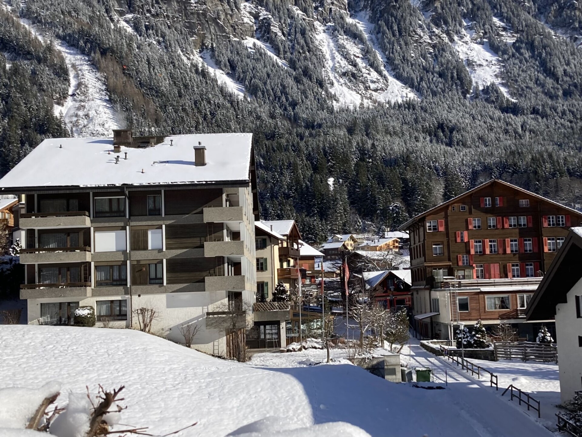 Flatgebouw "Residence". In de plaats, 100 m van het centrum van Wengen, centrale, zonnige ligging. In het huis: restaurant, lift, centrale verwarming. Boodschappenpakket mogelijk bij aankomst. Winkel 100 m, levensmiddelenwinkel 50 m, supermarkt 100 m, bar 50 m, bakkerij 100 m, bushalte "Lauterbrunnen (by train)" 3.2 km, treinstation "Wengen" 150 m, openluchtzwembad 500 m. Kabelbaan, ski faciliteiten 100 m, kinderspeelplaats 30 m. Bekende meren kunnen gemakkelijk worden bereikt: Thunersee 13 km, Brienzersee 13 km. Autovrij vakantiepark. Aankomst is via berglift. Aankomst alleen mogelijk met de trein van Lauterbrunnen – 14 minuten rijden.
