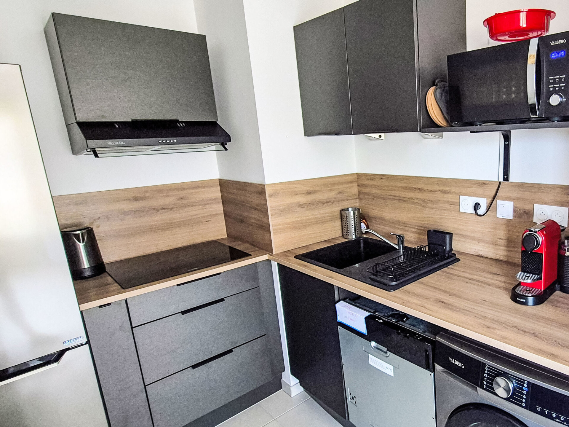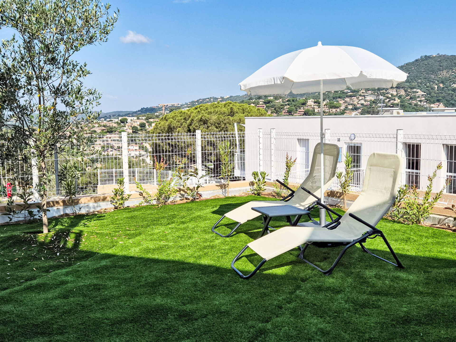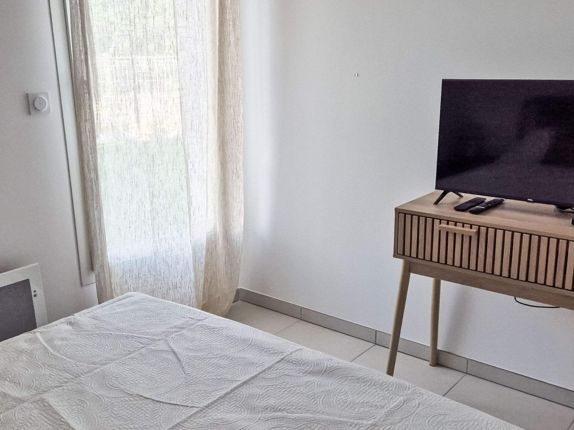 Appartement 2-kamers 41 m2 op de 1e verdieping. Comfortabel en smaakvol ingericht: woon-/eetkamer met 1 divanbed (140 cm, lengte 190 cm), air-conditioning. 1 kamer met 1 2-pers bed (160 cm, lengte 200 cm), TV (Flatscreen TV). Kookhoek (afwasmachine, 2 inductiekookplaten, broodrooster, waterkoker, elektrische koffiemachine, pads voor de koffiemachine (Nespresso) extra, combimagnetron). Douche/WC. Elektrische verwarming. Terras 12 m2, op het zuidwesten gelegen, tuin 75 m2, op het zuidwesten gelegen. Terrasmeubelen. Uitzicht op de plaats. Ter beschikking: wasmachine, strijkijzer, haardroger. Internet (WiFi, gratis). Parkeerplaats nr. 34 et 35 (2 Auto's). Niet rokers woning. TV alleen FR. Rookmelders. Aanbod door een particulier volgens art. 155, IV van CGI. 83070003162HO