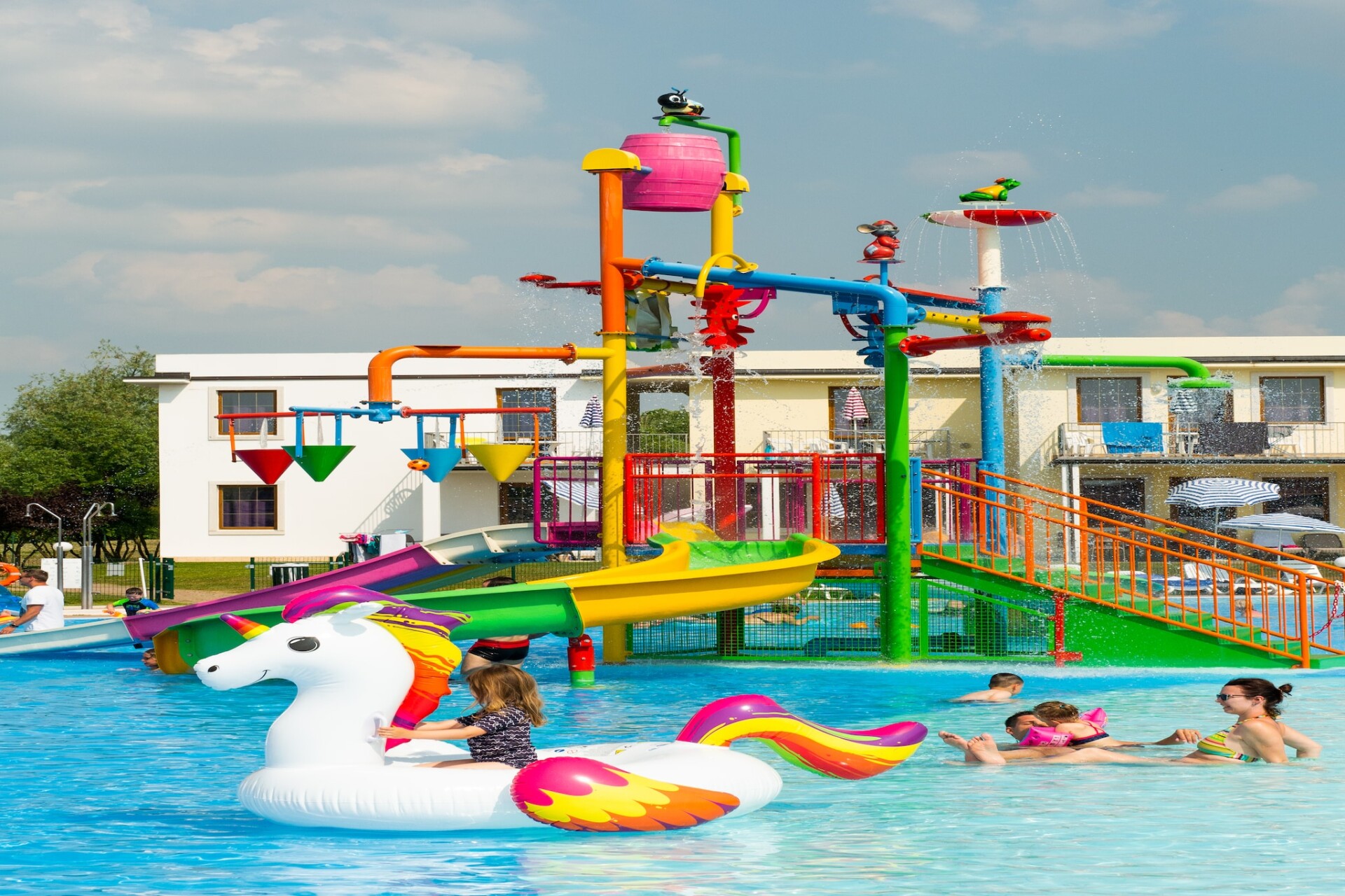 Het lagunezwembad is maximaal 1 meter diep en is ideaal voor jong en oud. Ook is er in het minder diepe gedeelte een glijbaan waar je veel plezier kunt beleven met waterspatten, kleine dieren en spelletjes.