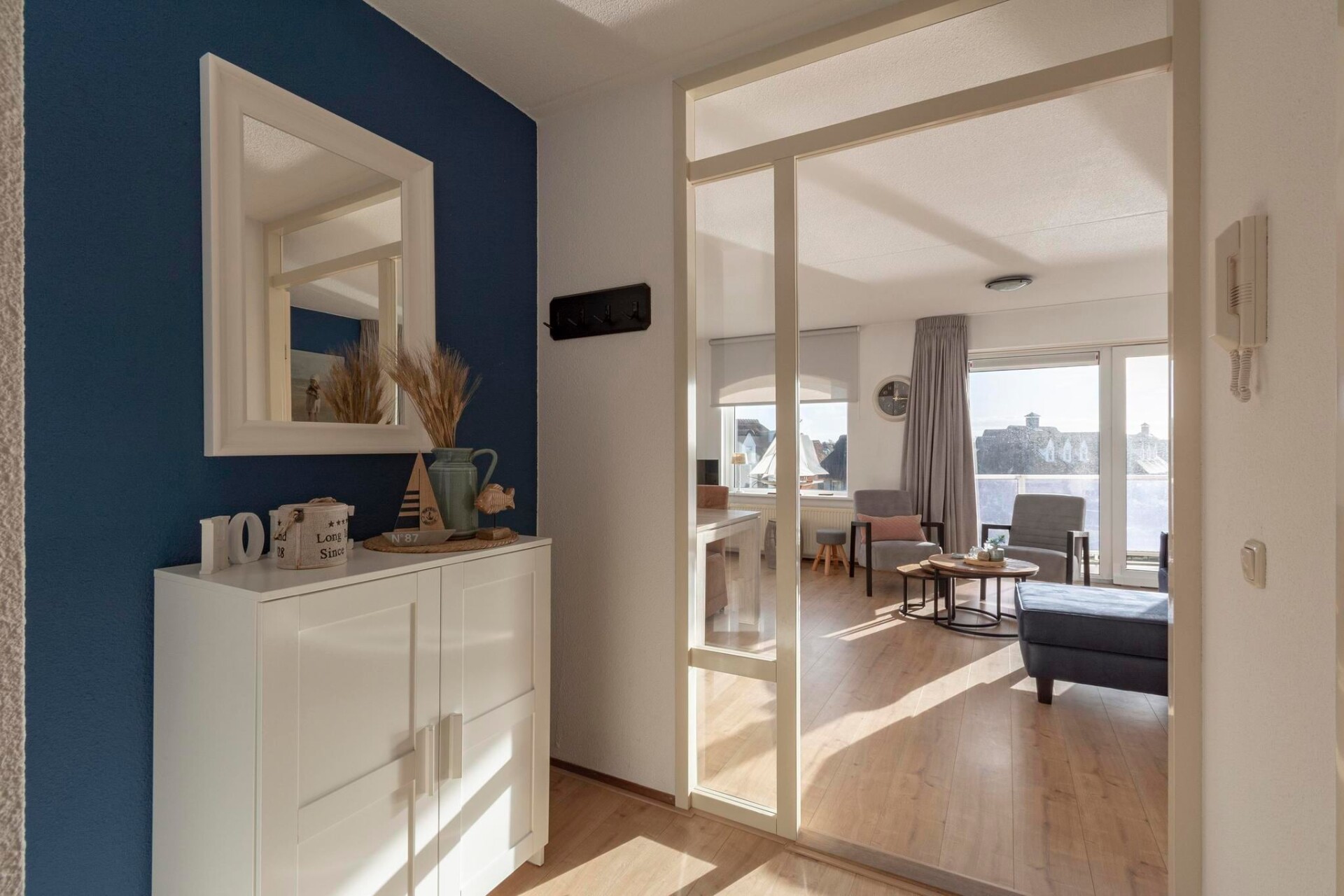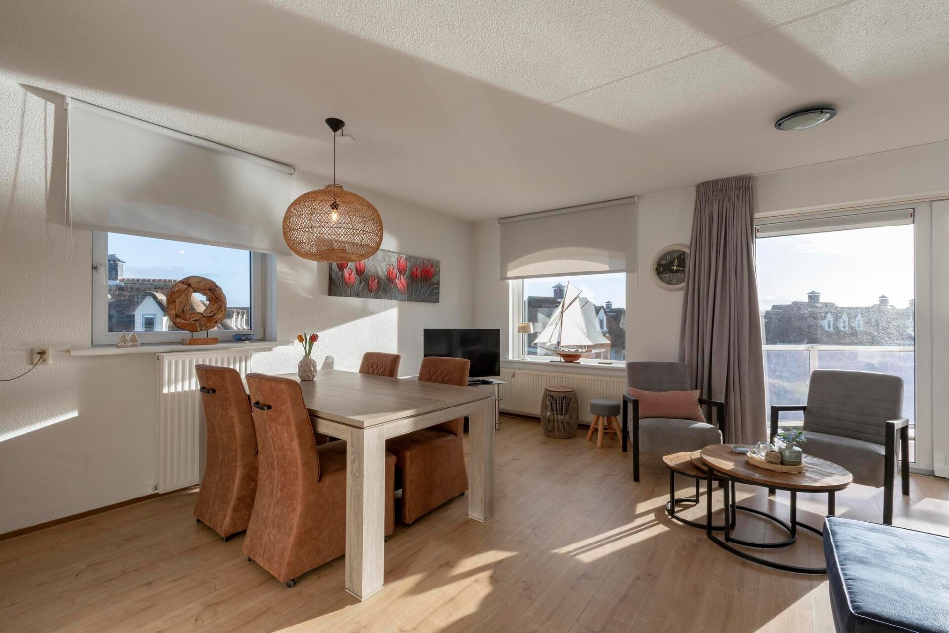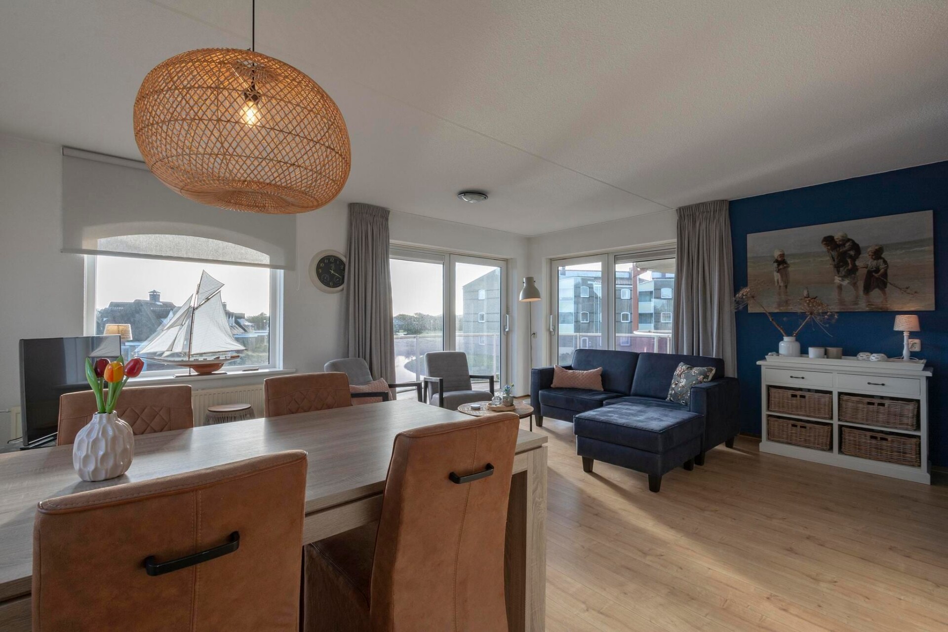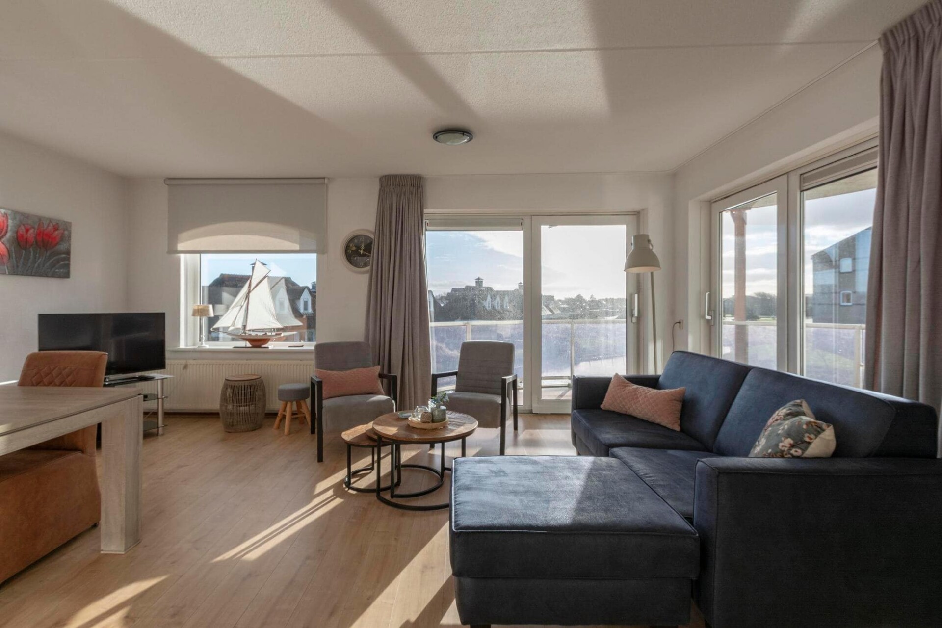 Welkom in een fantastisch appartement, ideaal gelegen op slechts een paar honderd meter van het strand. Deze prachtig ingerichte accommodatie biedt een perfecte mix van comfort en stijl, waardoor het een ideaal toevluchtsoord is voor uw vakantie aan zee. De lichte woonkamer is voorzien van dubbele schuifdeuren die de ruimte overspoelen met natuurlijk licht, waardoor een warme en uitnodigende sfeer ontstaat. Stap naar buiten op het balkon, waar u kunt genieten van een prachtig uitzicht op het water - een perfecte plek voor een kopje koffie in de ochtend of ontspanning in de avond.