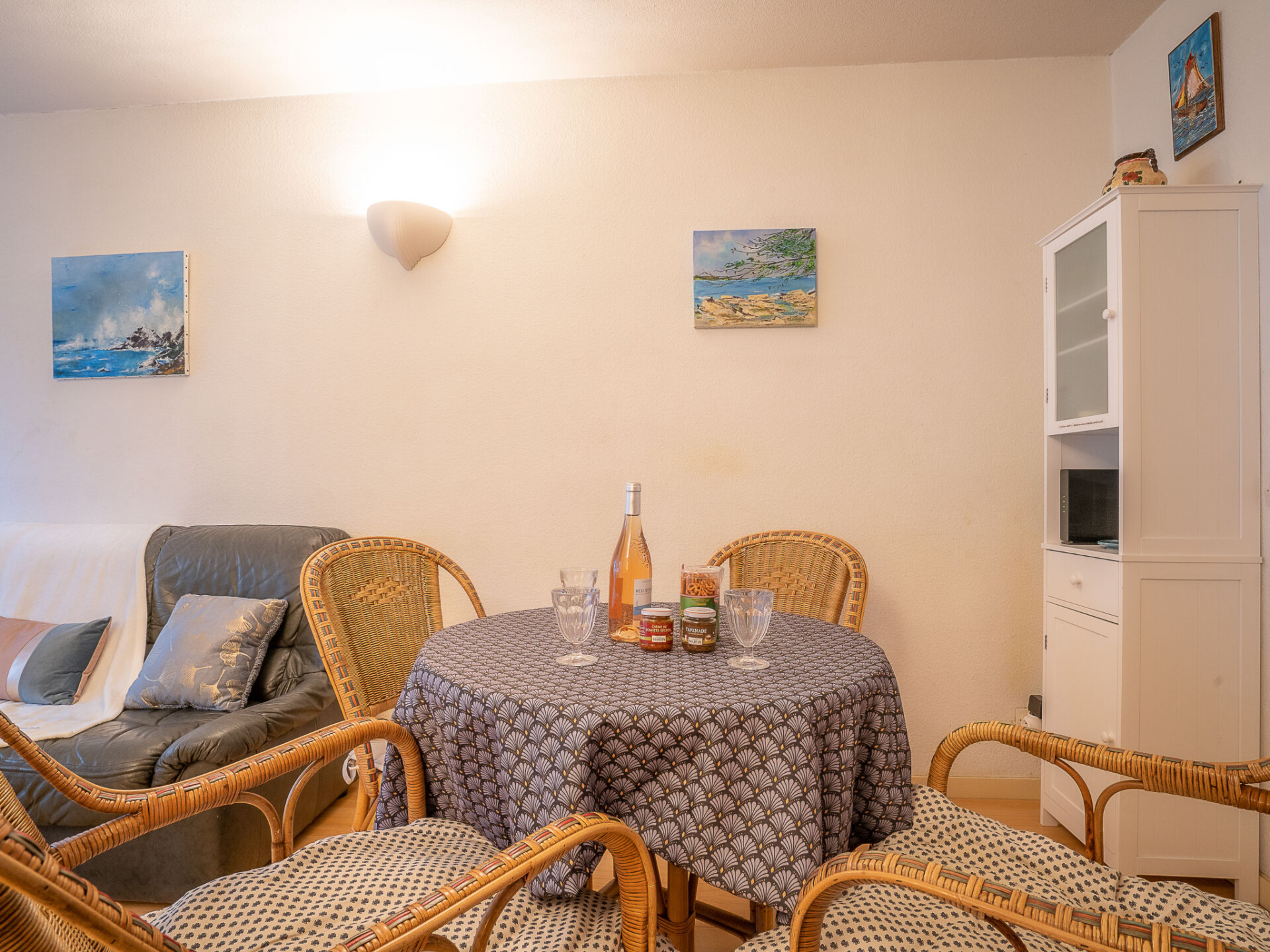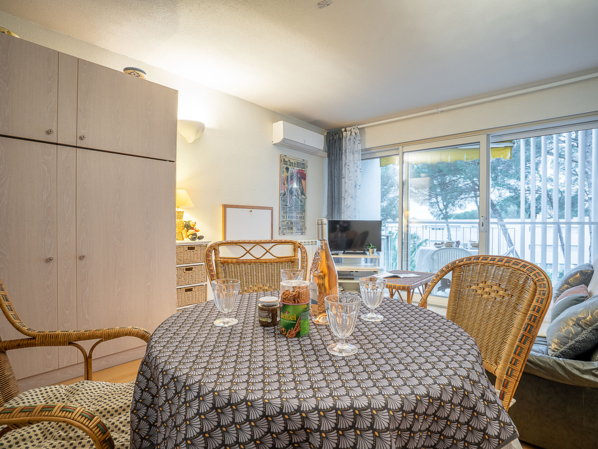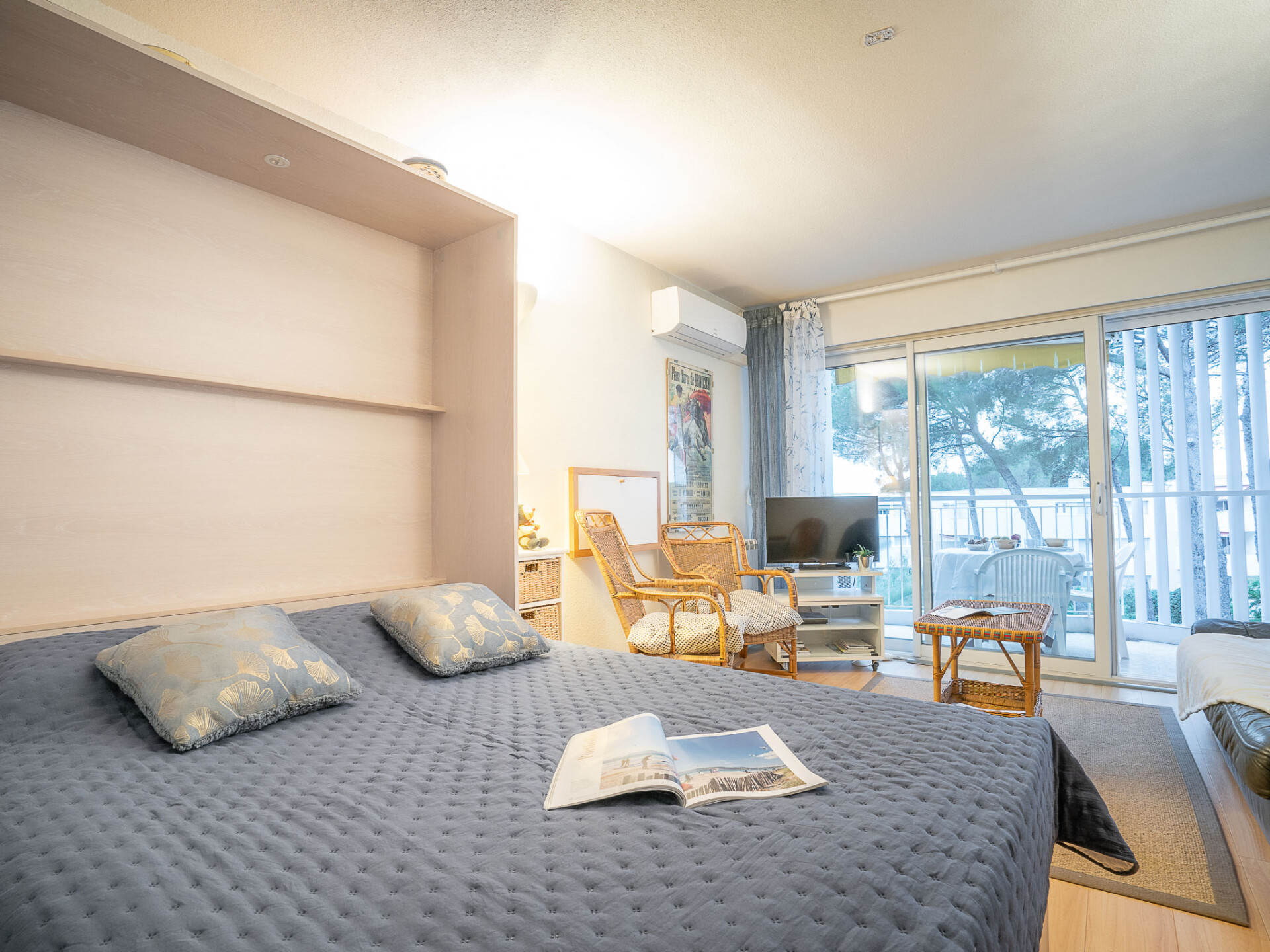 Studio 1-kamer 30 m2 op de 2e verdieping. Mooi ingericht: woon-/eetkamer met 1 2-pers opklapbed (140 cm, lengte 190 cm), TV, DVD, elektrische verwarming en air-conditioning. Kleine keuken (oven, afwasmachine, 3 keramische glas kookplaten, broodrooster, waterkoker, magnetron, diepvriezer, elektrische koffiemachine). Douche/WC. Klein terras, op het westen gelegen. Terrasmeubelen. Ter beschikking: wasmachine, strijkijzer, haardroger. Internet (WiFi, gratis). Parkeerplaats (1 Auto). Maximaal. TV alleen FR. Rookmelders.