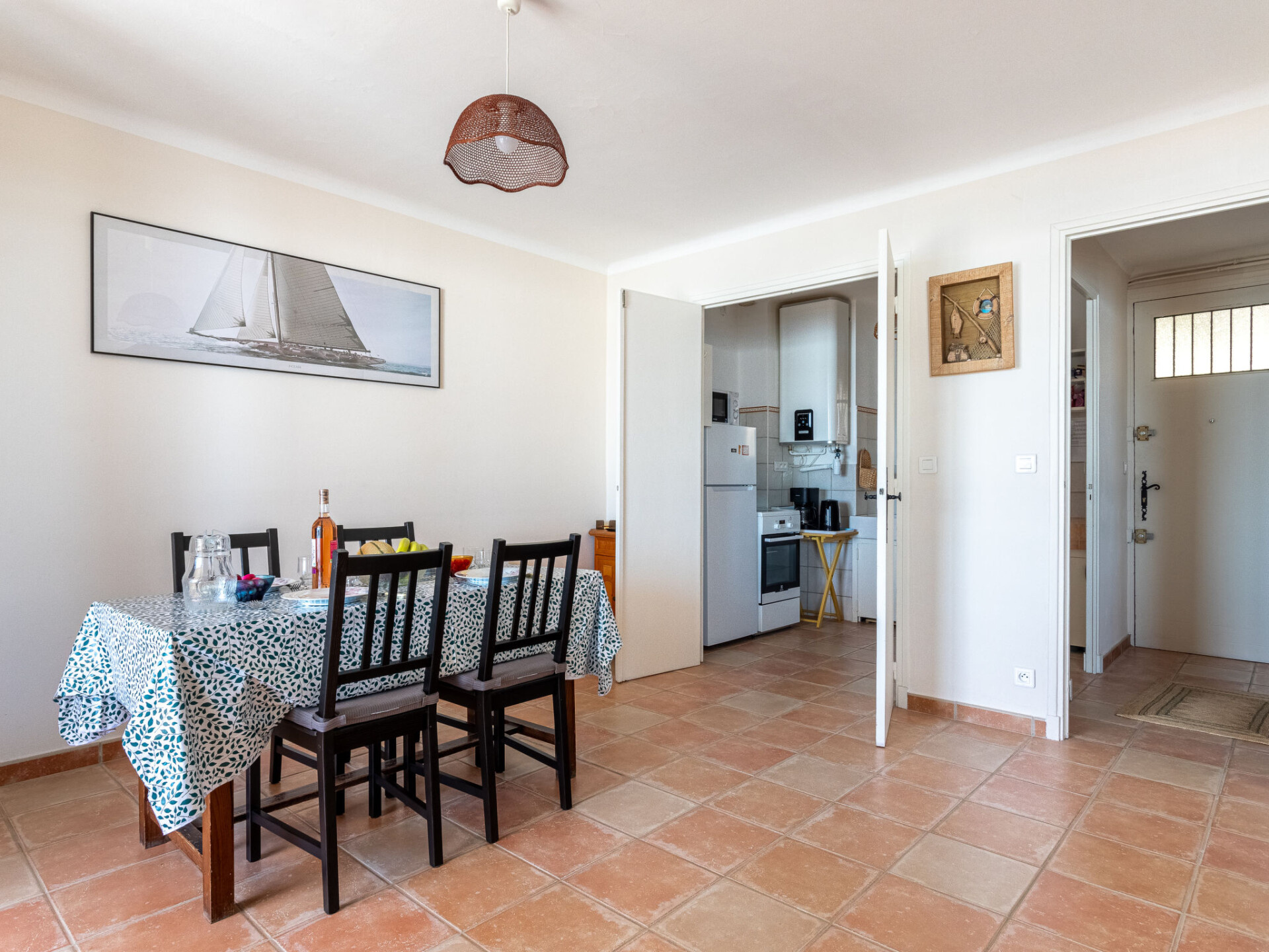 Appartement 2-kamers 50 m2 op de 1e verdieping. Mooi ingericht: woon-/eetkamer met 1 2-pers divanbed (140 cm, lengte 190 cm), TV (Flatscreen TV), air-conditioning. Uitgang naar het terras. 1 kamer met 2 bedden (90 cm, lengte 190 cm). Open keuken (oven, 3 keramische glas kookplaten, broodrooster, waterkoker, magnetron, diepvriezer, elektrische koffiemachine). Douche, aparte WC. Elektrische verwarming. Terras 12 m2, overdekt. Terrasmeubelen. Zeer mooi uitzicht op zee. Ter beschikking: wasmachine. Internet (WiFi, extra). Garage, hoogte 210 cm, breedte 210 cm. TV alleen FR. Rookmelders, geen lift. Aanbod door een particulier volgens art. 155, IV van CGI. 83122000473QS