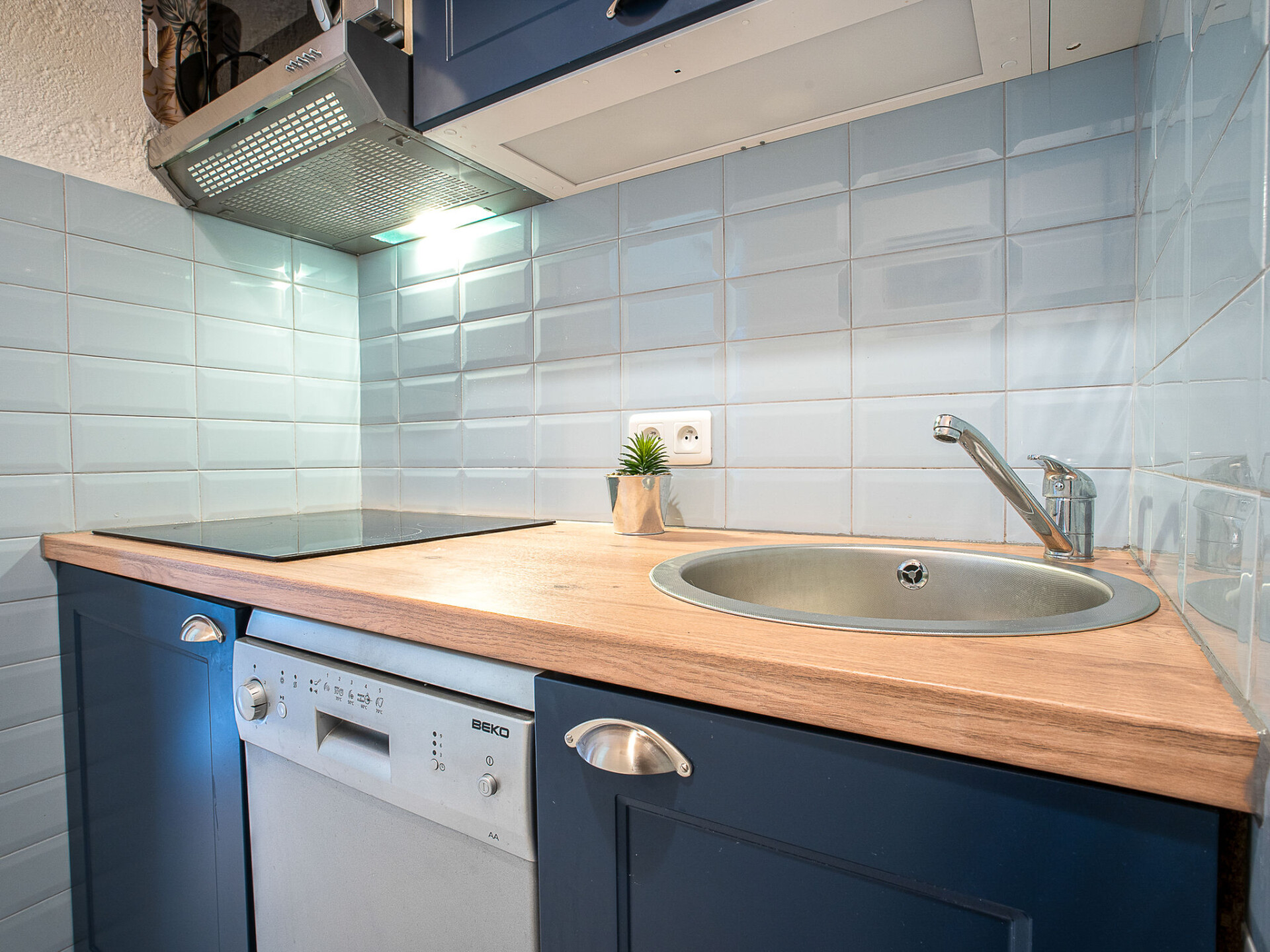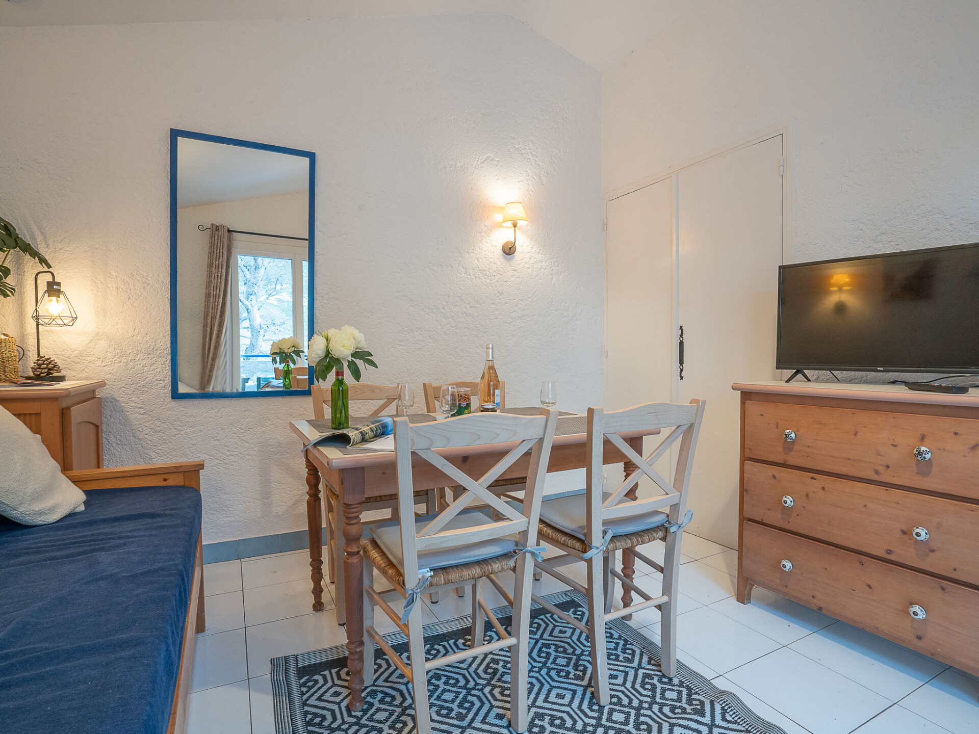 Appartement 2-kamers 26 m2 op de 3e verdieping. Woon-/eetkamer met 1 uitschuifbaar bed (2 x 90 cm, lengte 190 cm), TV en elektrische verwarming. Uitgang naar het terras. 1 kamer met 1 2-pers bed (1 x 140 cm, lengte 200 cm). Open keuken (afwasmachine, 4 keramische glas kookplaten, broodrooster, waterkoker, magnetron, elektrische koffiemachine). Douche/WC. Air-conditioning. Terras 6 m2, op het westen gelegen. Terrasmeubelen. Ter beschikking: haardroger. Internet (WiFi, gratis). Parkeerplaats bij het huis. Geschikt voor families. Niet rokers woning. Maximaal 1 klein huisdier/hond toegestaan. Rookmelders.