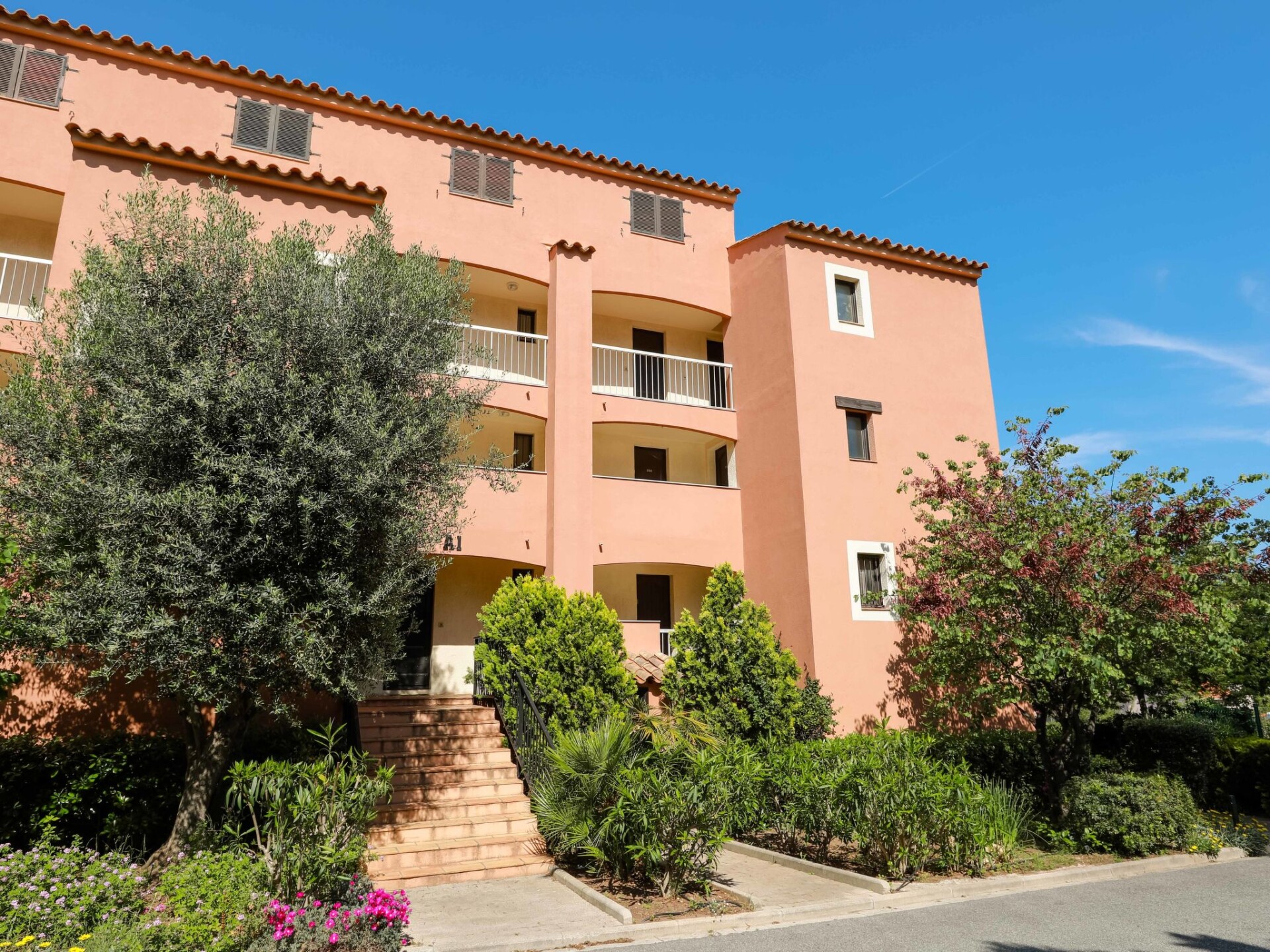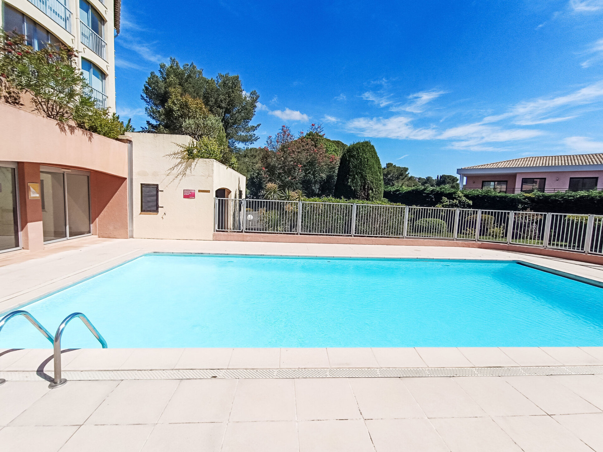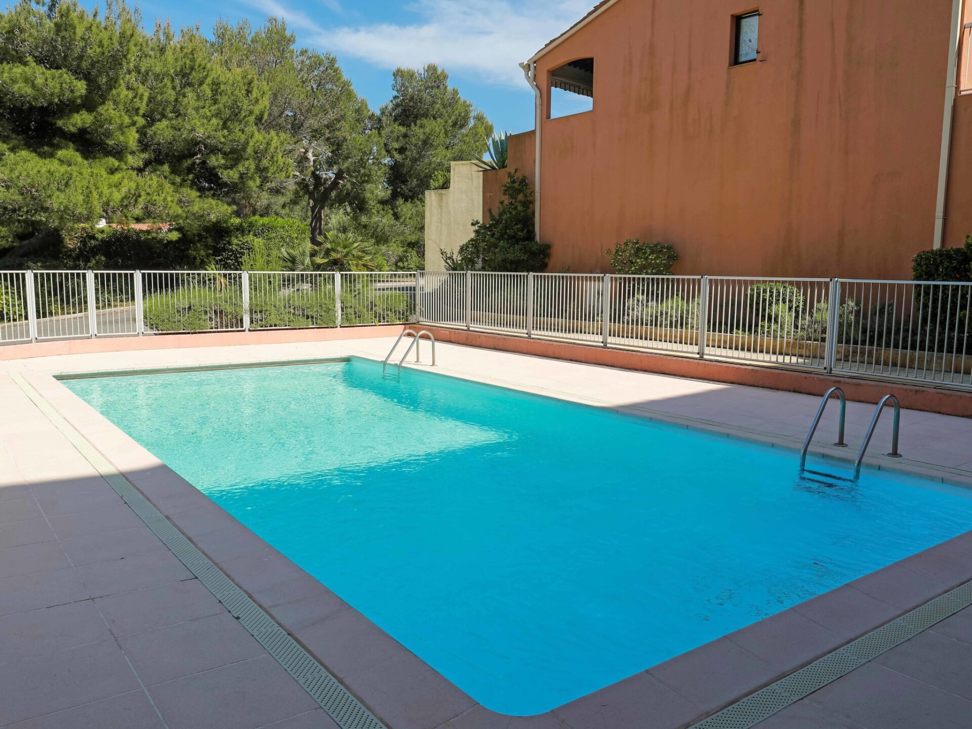 St Raphael Dramont: Flatgebouw "Résidence Les Sangliers", van 3 verdiepingen. 600 m van zee, 600 m van het strand. Voor medegebruik: openluchtzwembad hoekig omheind (seizoensgebonden beschikbaarheid: 01.Jun. - 15.Sep.). Voor alleengebruik: tafeltennis. Winkel 200 m, levensmiddelenwinkel 150 m, supermarkt 5 km, bakkerij 50 m, bushalte 300 m, treinstation "Saint-Raphaël Valescure" 10 km, zandstrand "plage du debarquement", duikschool 600 m. Jachthaven 600 m. Attracties in de buurt: St Tropez 45 km, Nice 75 km, Fréjus 11 km. Wandelgebied L'Estérel 6 km. Auto noodzakelijk. Gesloten residentie met een elektrische deur. De sleuteloverdracht vindt plaats bij het agentschap INTERHOME in Port Fréjus. Spoorweg in de buurt.