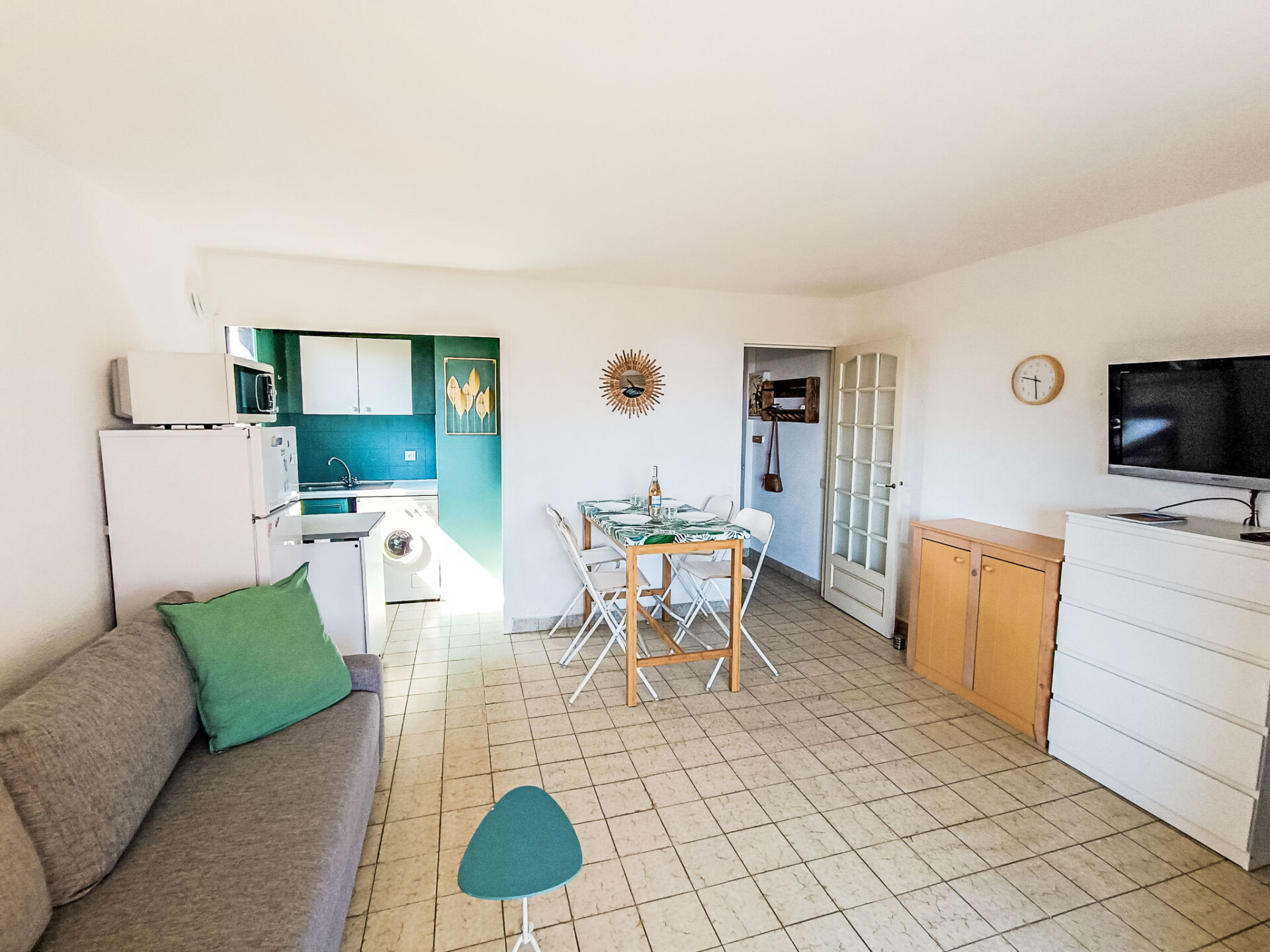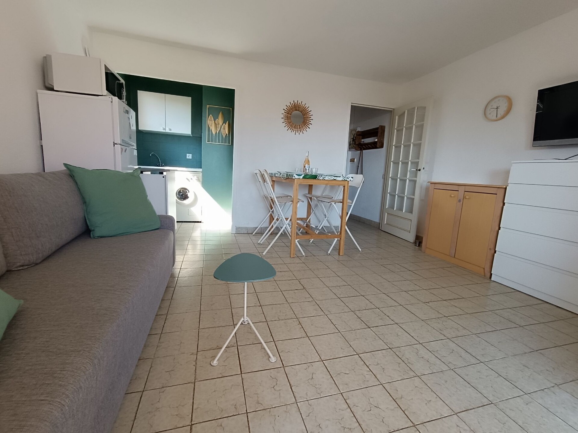 Appartement 2-kamers 40 m2, op verhoogde begane grond. Woon-/eetkamer met 1 2-pers divanbed (1 x 140 cm, lengte 190 cm), TV. Uitgang naar de loggia. 1 kamer met 1 2-pers bed (1 x 140 cm, lengte 190 cm), bad en aparte WC. Kookhoek (4-pits kookplaat, broodrooster, waterkoker, magnetron, diepvriezer, elektrische koffiemachine, pads voor de koffiemachine (Nespresso) extra, combimagnetron). Loggia. Beperkt uitzicht op zee. Ter beschikking: wasmachine, haardroger. Internet (Internet (WiFi), gratis). Niet rokers woning. Rookmelders. Aanbod door een particulier volgens art. 155, IV van CGI.