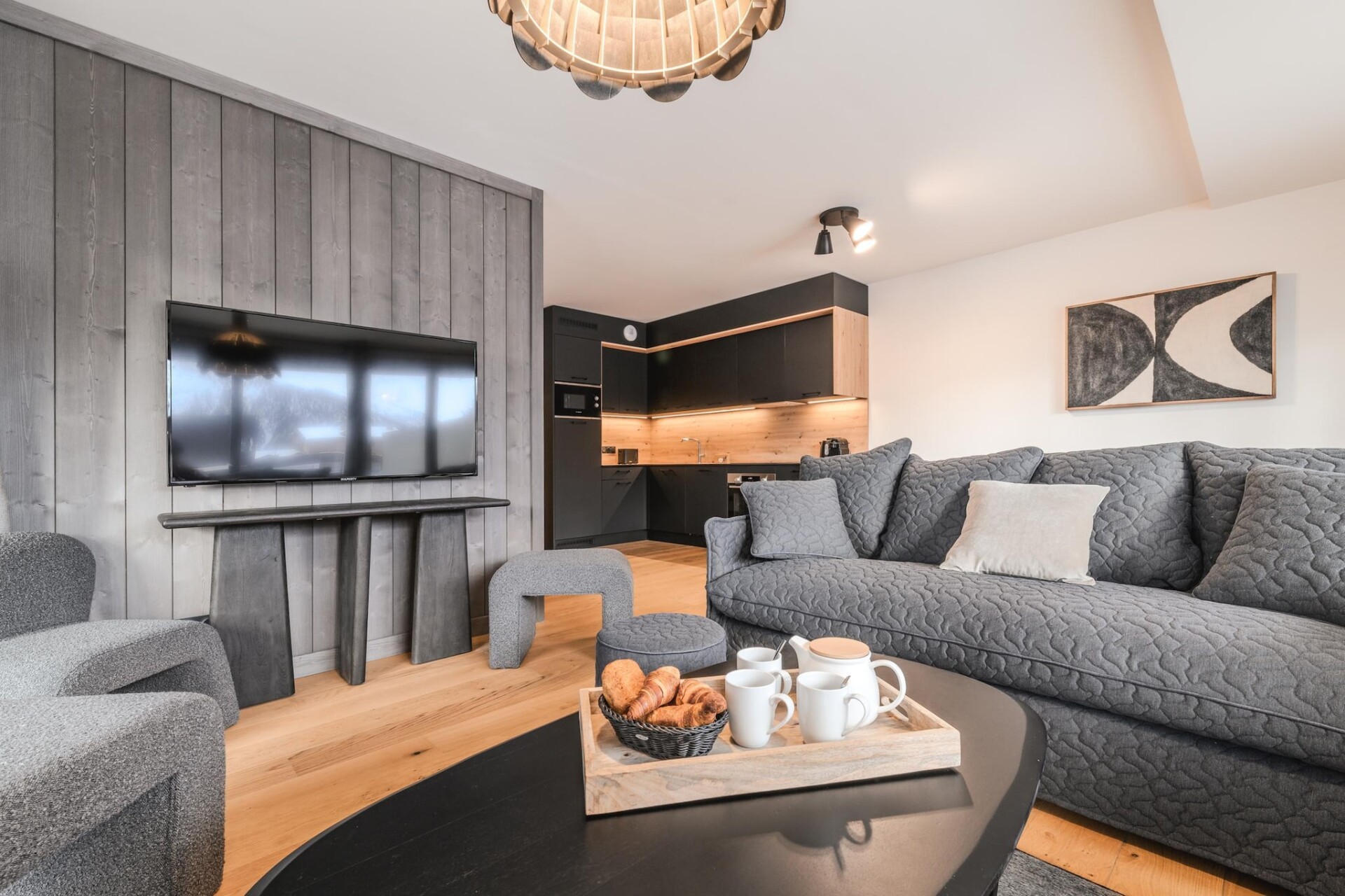 Binnen is het appartement uitgerust met alle nodige voorzieningen, waaronder een volledig uitgeruste keuken voor zelfcatering en een comfortabele woonkamer. Geniet van het gemak van een functionele badkamer, samen met gemakkelijke toegang tot nabijgelegen skipistes en schilderachtige wandelpaden. Of u nu ontspant aan het einde van een actieve dag of zich voorbereidt op uw volgende avontuur, dit appartement biedt de perfecte mix van bergcharme en modern comfort.