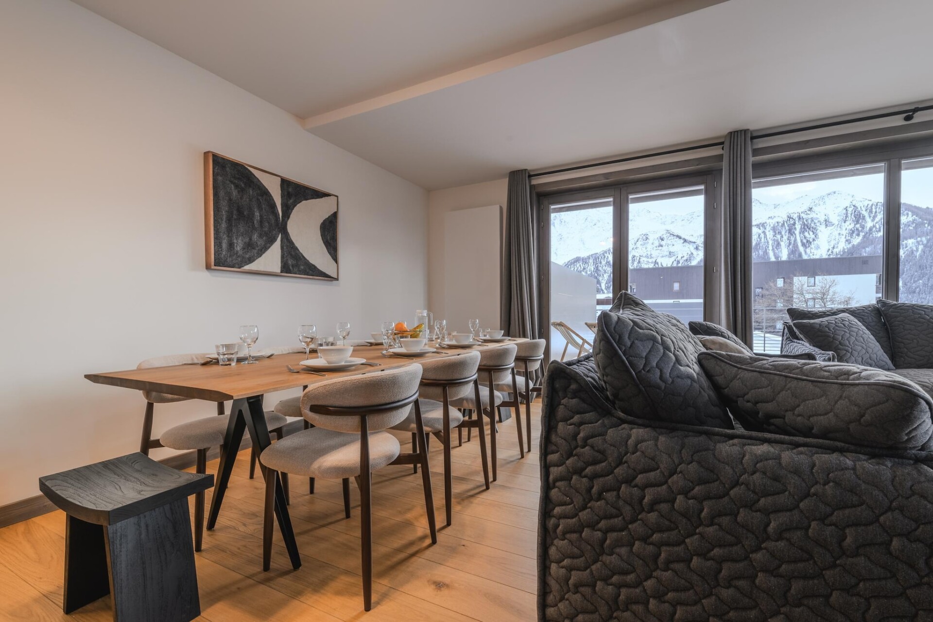 Het appartement ligt in het pittoreske dorpsresort Plan Peisey, waar authentieke bergdorpjes modern comfort ontmoeten. Op korte afstand van het Vanoise National Park biedt dit resort een uitzonderlijk Noords skigebied in de winter en een scala aan zomeractiviteiten, waaronder paragliden en via ferrata. Het culturele erfgoed van de regio voegt een extra laagje charme toe aan uw verblijf, terwijl lokale cafés en markten een voorproefje bieden van het authentieke alpine leven.