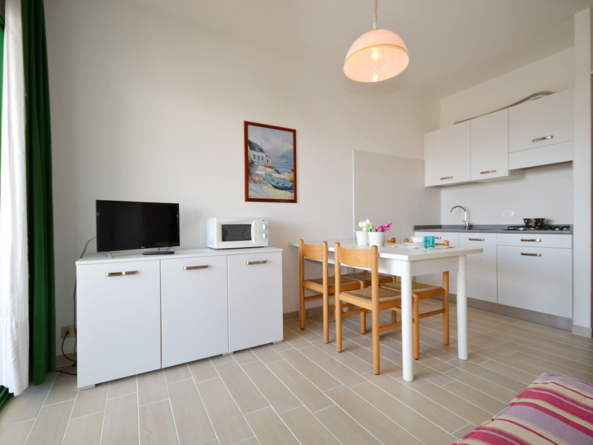 Appartement 2-kamers 35 m2. Doelmatig ingericht: woon-/slaapkamer met 1 divanbed, 1 uitschuifbaar bed, eettafel en Sat-TV. 1 kamer met 1 bed en 1 2-pers bed. Kookhoek (4 kookpitten (vlammen), magnetron, diepvriezer, elektrische koffiemachine). Douche/bidet/WC. Air-conditioning, heteluchtverwarming. Balkon. Balkonmeubilair. Ter beschikking: kluis, kinderstoel, kinderbed tot 2 jaar (extra). Parkeerplaats (overdekt, 1 Auto). Maximaal 1 huisdier/hond toegestaan. IT027034B4WQ6WB9EM