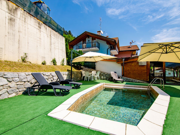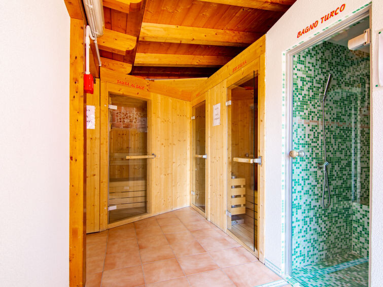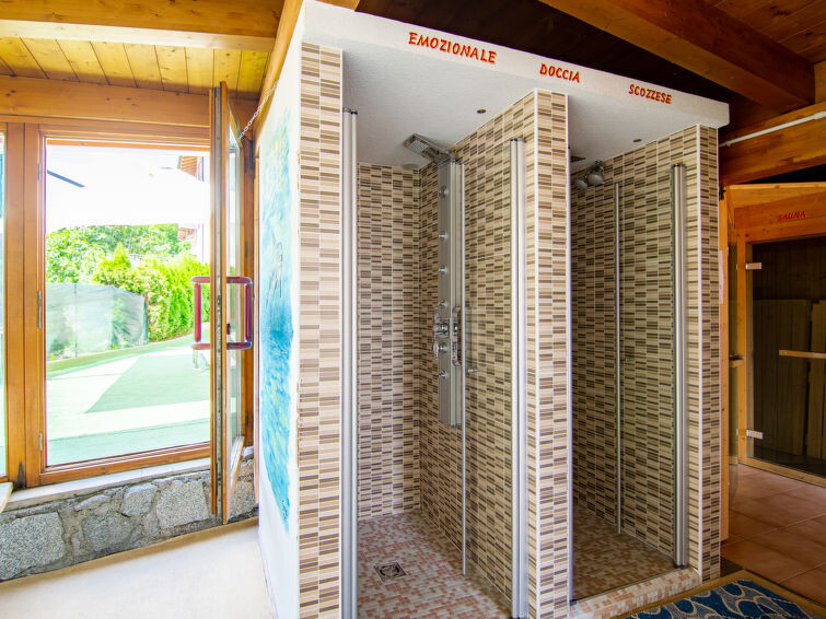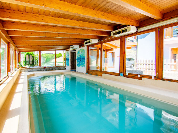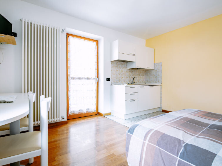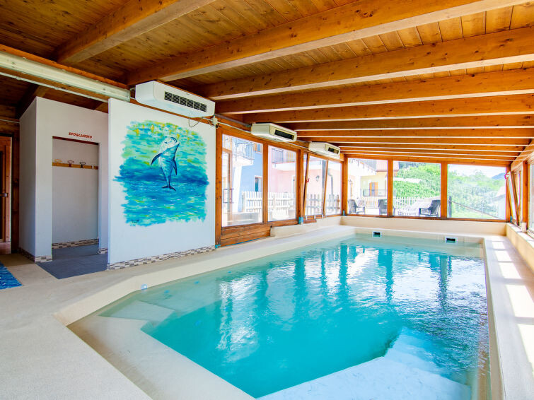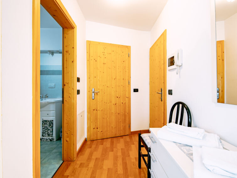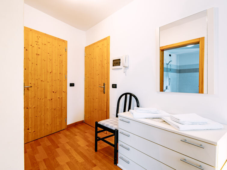 Val di Sole: Kleine, comfortabele residentie "Al Pescatore", van 3 verdiepingen, omgeven door bomen en velden. 15 appartementen in de woning. In het gehucht Tozzaga, 4 km van het centrum van Caldes, 7 km van het centrum van Malè, rustige ligging tegen een helling, 15 km van het skigebied, aan een weg. Voor medegebruik: tuin, openluchtzwembad, overdekt zwembad verwarmd (4 x 10 m, 130 cm diepte, seizoensgebonden beschikbaarheid: 01.Jun. - 15.Sep. openingstijden zwembad: 10:00-20:00). Douche/WC bij het zwembad, terras, tuinmeubelen. In het complex: restaurant, bar, Internet (WiFi), sauna, fitnessruimte, stoombad, solarium, hot tub, berging voor ski's, centrale verwarming. Parkeerplaats (beperkt aantal) bij het huis, gemeenschappelijke garage (extra) bij het huis. Winkel, restaurant 50 m, bushalte 100 m, treinstation "Tozzaga" 500 m, park "Parco Nazionale dello Stelvio" 28 km. Skipisten 15 km. Attracties in de buurt: Folgarida 19 km, Marilleva 25 km, Trento 50 km, Merano 58 km. Bekende meren kunnen gemakkelijk worden bereikt: Lago di Garda (Riva Del Garda) 87 km. Spoorweg 100 m van het huis. De afgebeelde foto is slechts een voorbeeld.
