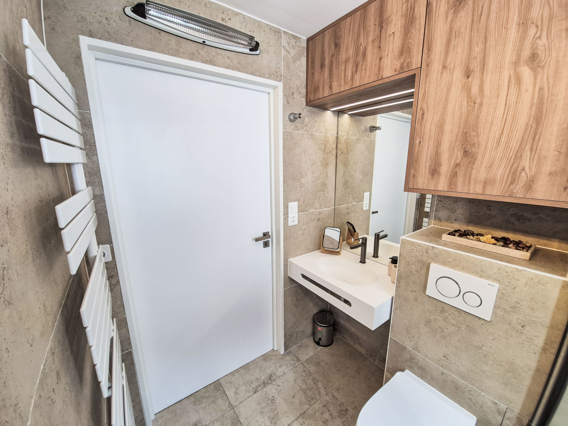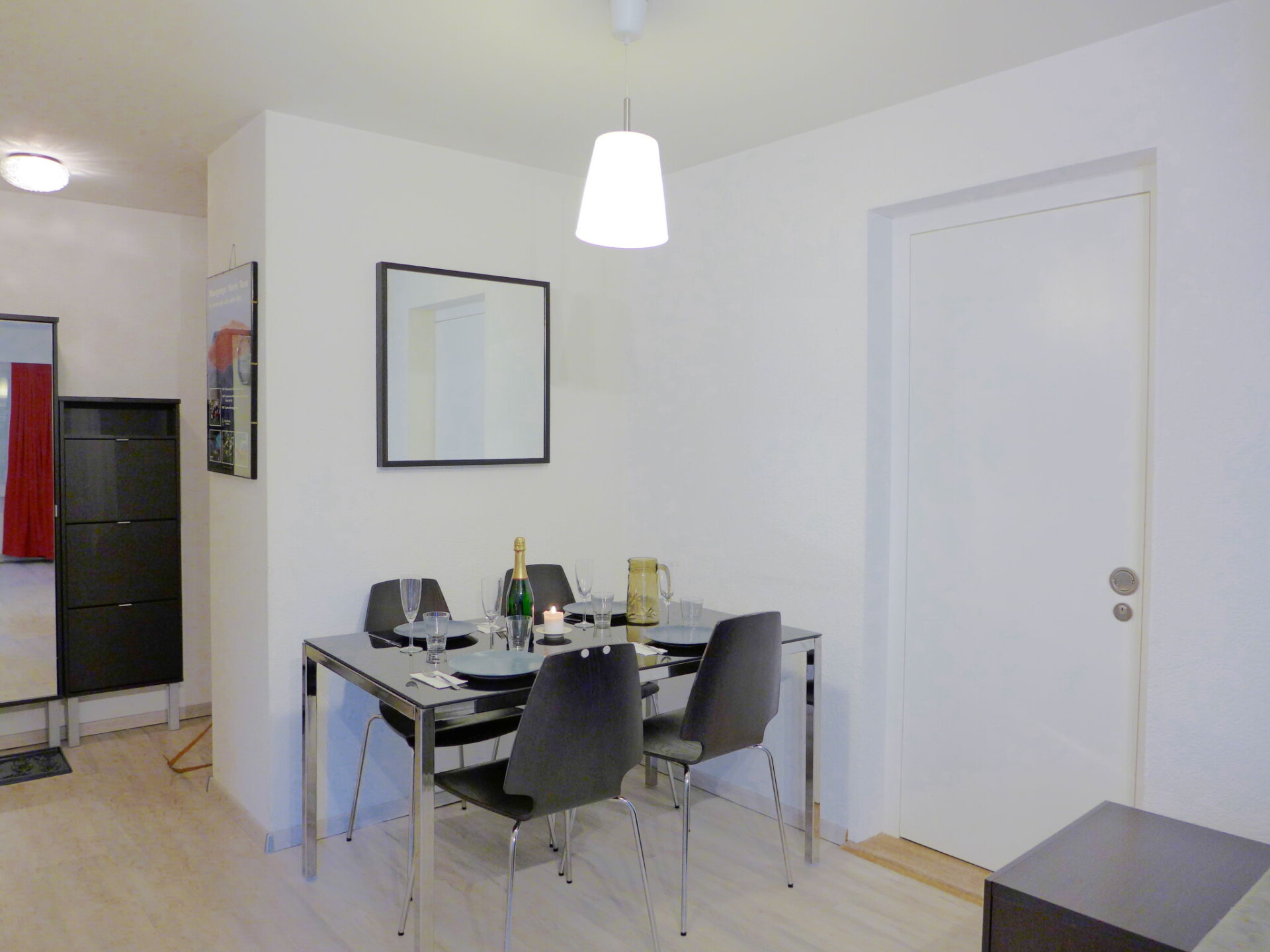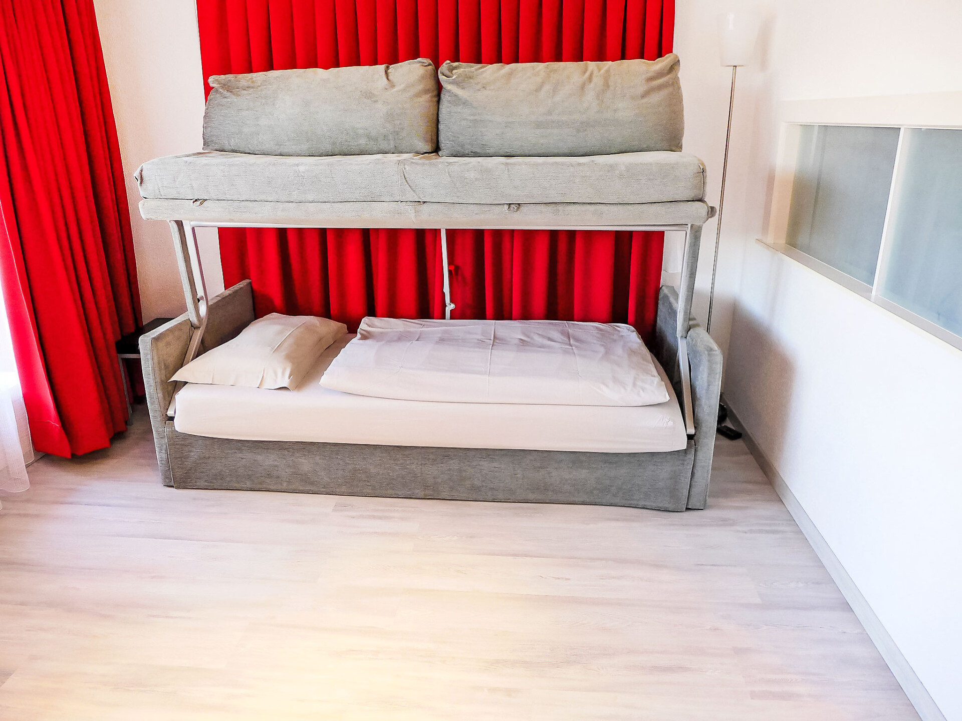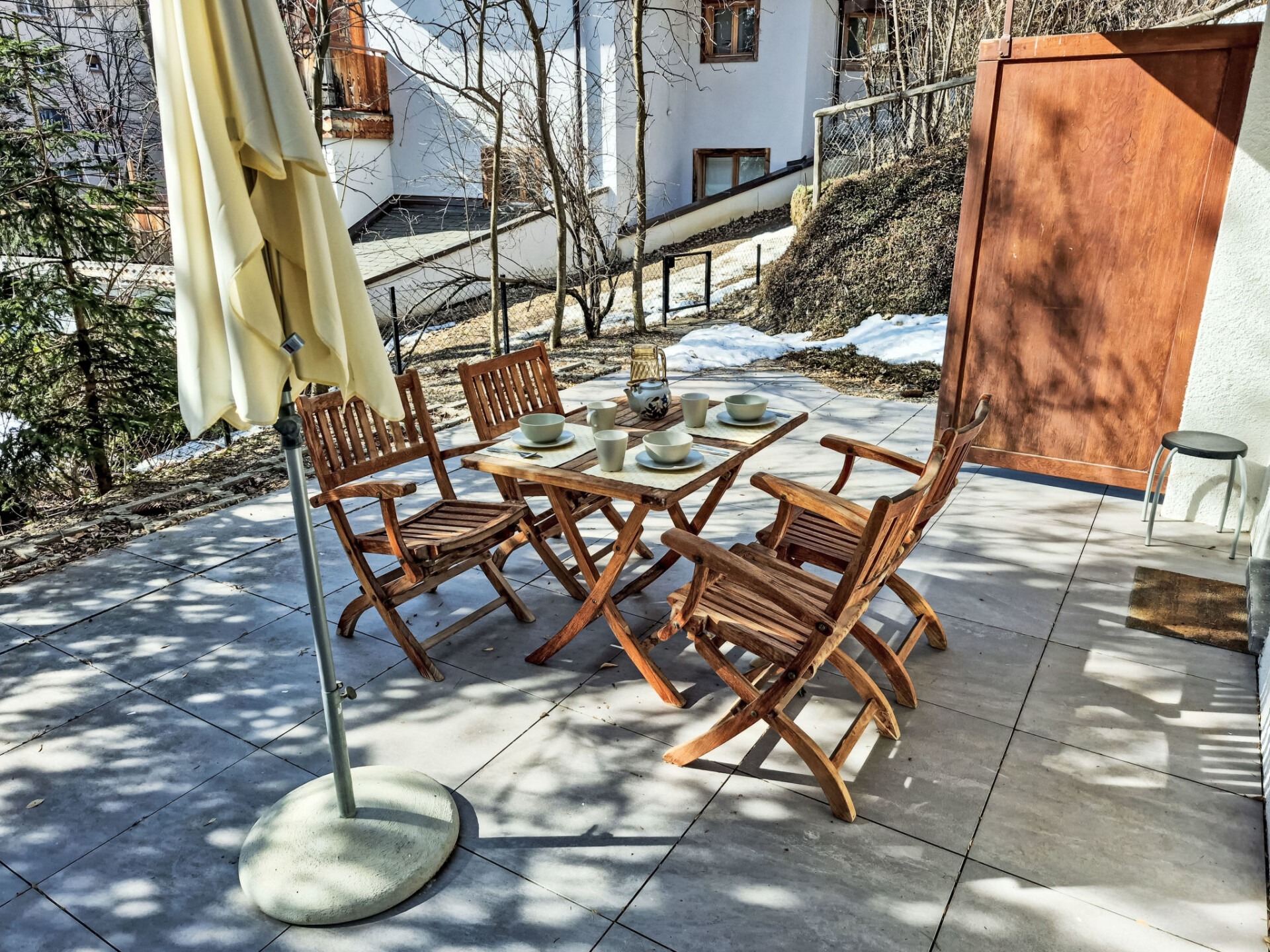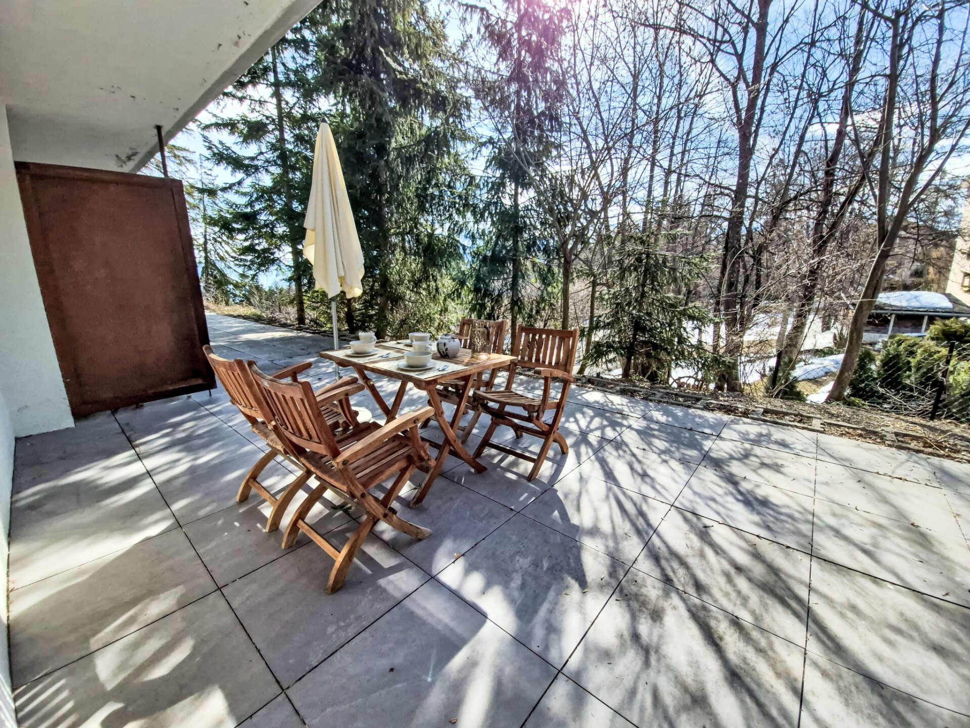 "Andrea B15", appartement 1-kamer 35 m2, op de begane grond. Doelmatig en comfortabel ingericht: woon-/eetkamer met 1 divanbed (80 cm, lengte 190 cm), 1 2-pers divanbed (140 cm, lengte 190 cm), Kabel-TV, DVD en homecinema. Uitgang naar het terras. Keuken (3-pits kookplaat, oven, broodrooster, waterkoker, magnetron, elektrische koffiemachine, pads voor de koffiemachine (Nespresso) extra, raclette oven, fondue Set (kaas)). Douche/WC. Terras, op het zuiden gelegen. Terrasmeubelen. Beperkt uitzicht op de bergen en het bos. Ter beschikking: strijkijzer, haardroger. Internet (WiFi, gratis). Niet rokers woning. Homecinema LCD TV aan de muur (94 cm).