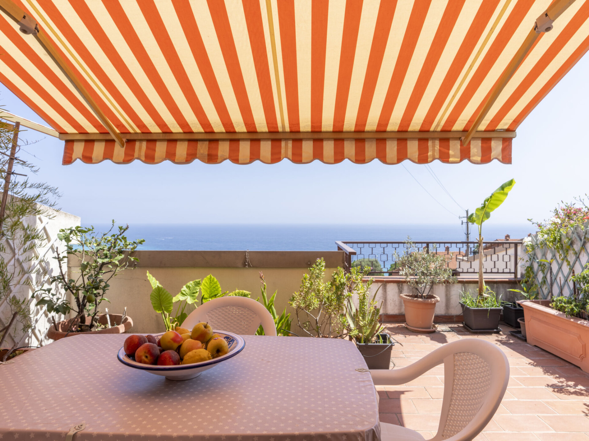 "Beautiful View", appartement 2-kamers 60 m2, op verhoogde begane grond. Licht, gezellig ingericht: woon-/eetkamer met 1 2-pers divanbed (160 cm, lengte 200 cm). Uitgang naar het terras. 1 2-pers. kamer. Kookhoek (afwasmachine, 4 kookpitten (vlammen), broodrooster, waterkoker, elektrische koffiemachine). Uitgang naar het terras. Douche/bidet/WC. Gas-verwarming, air-conditioning, heteluchtverwarming. Verwarming alleen beschikbaar van 01.11. tot 08.04. Terras 30 m2. Terrasmeubelen. Zeer mooi panoramazicht op zee. Ter beschikking: wasmachine, haardroger. Internet (WiFi, gratis). Garage op het terrein, breedte 220 cm. Geschikt voor families. Maximaal 1 huisdier/hond toegestaan. Privé ingang. lengte garage 4.60m. IT008039B49V3HF3IO