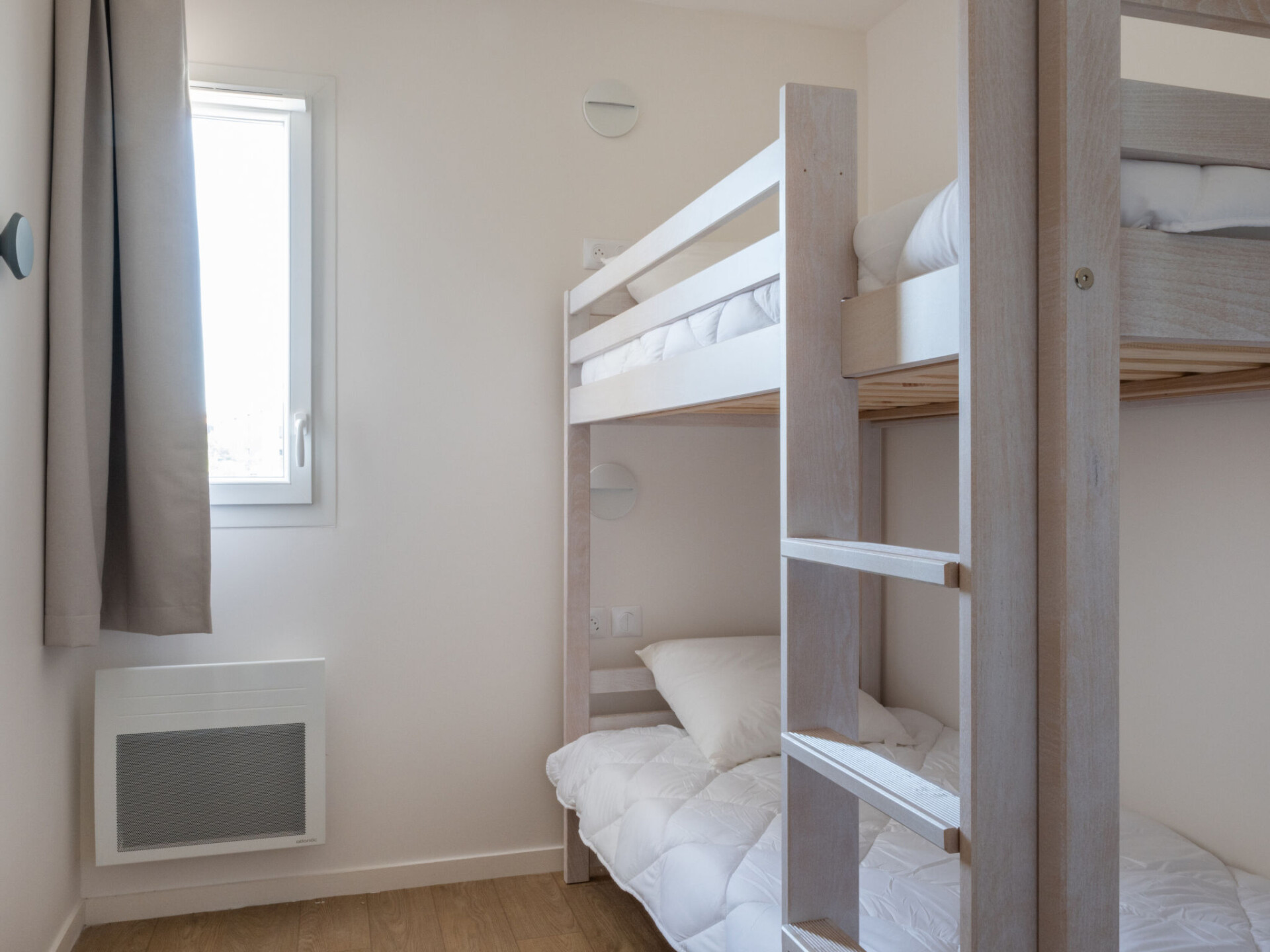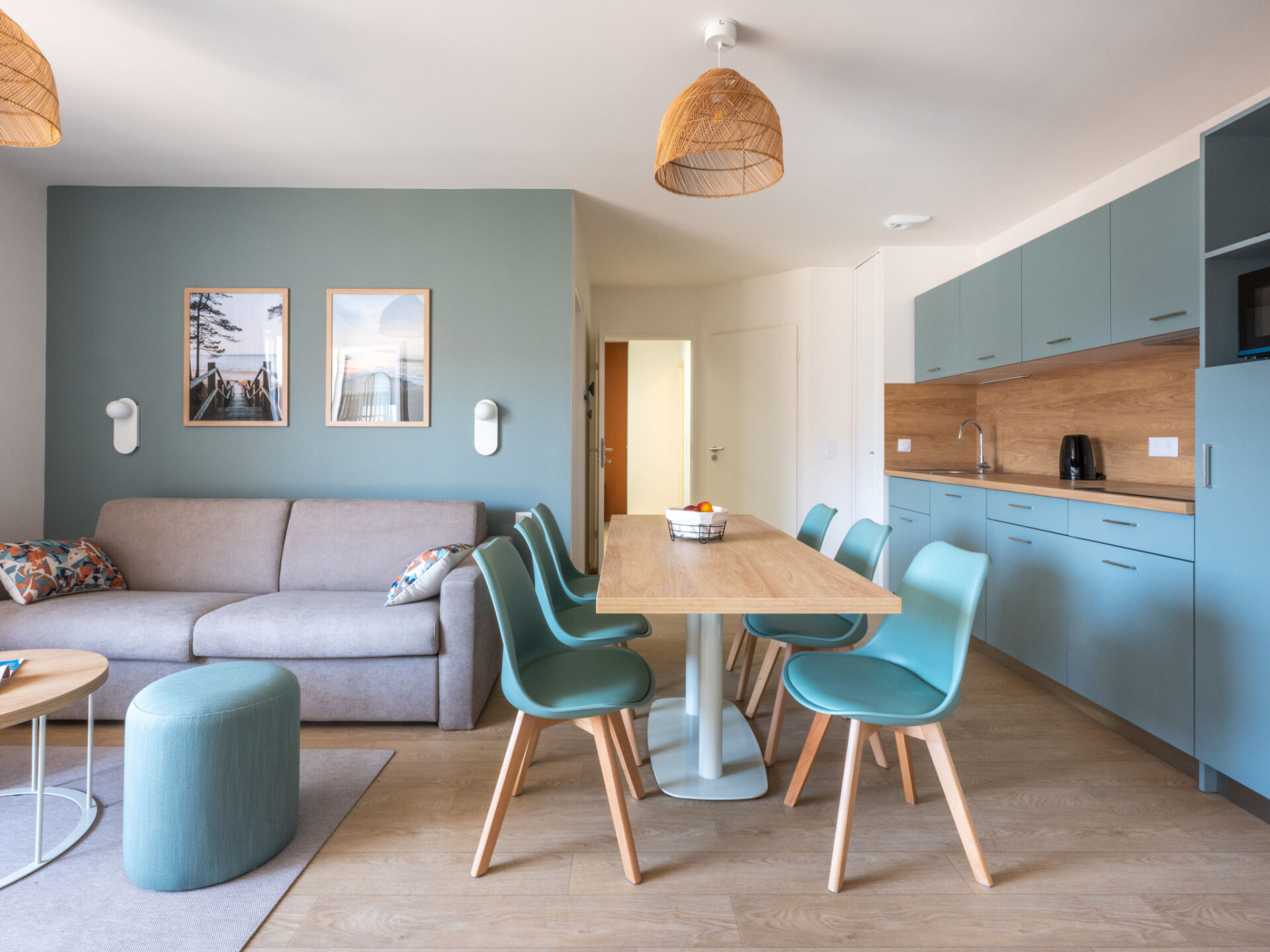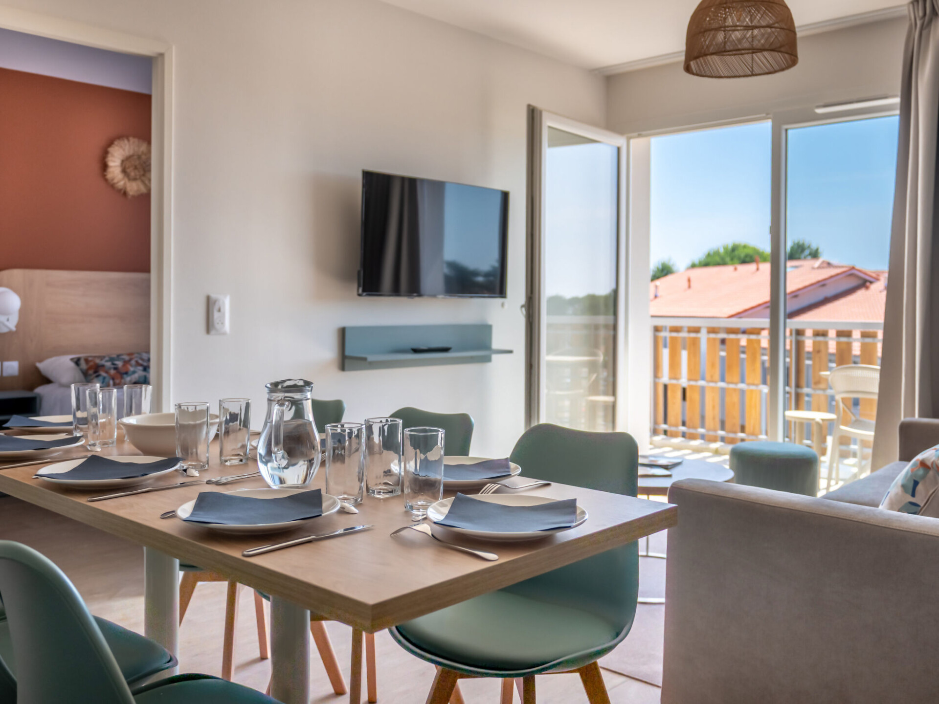 "Bleu Canopée", appartement 2-kamers 38 m2. Comfortabel en mooi ingericht: woon-/eetkamer met 1 2-pers divanbed (140 cm, lengte 190 cm) (2 pers.), eettafel en TV (Flatscreen TV). Uitgang naar het balkon, naar het terras. 1 kamer met 1 2-pers bed (160 cm, lengte 200 cm). Cabine met 1 x 2 stapelbedden (80 cm, lengte 180 cm). Kookhoek (afwasmachine, 4 keramische glas kookplaten, broodrooster, waterkoker, elektrische koffiemachine, combimagnetron) met eettafel. Aparte WC, bad of douche. Elektrische verwarming. Klein balkon of klein terras. Terrasmeubelen. Ter beschikking: kinderstoel, kinderbed (extra), haardroger. Internet (WiFi, gratis). Parkeerplaats. Maximaal 2 huisdieren/honden toegestaan. Rookmelders. De beschrijving betreft een voorbeeld van dit type woning in dit complex.