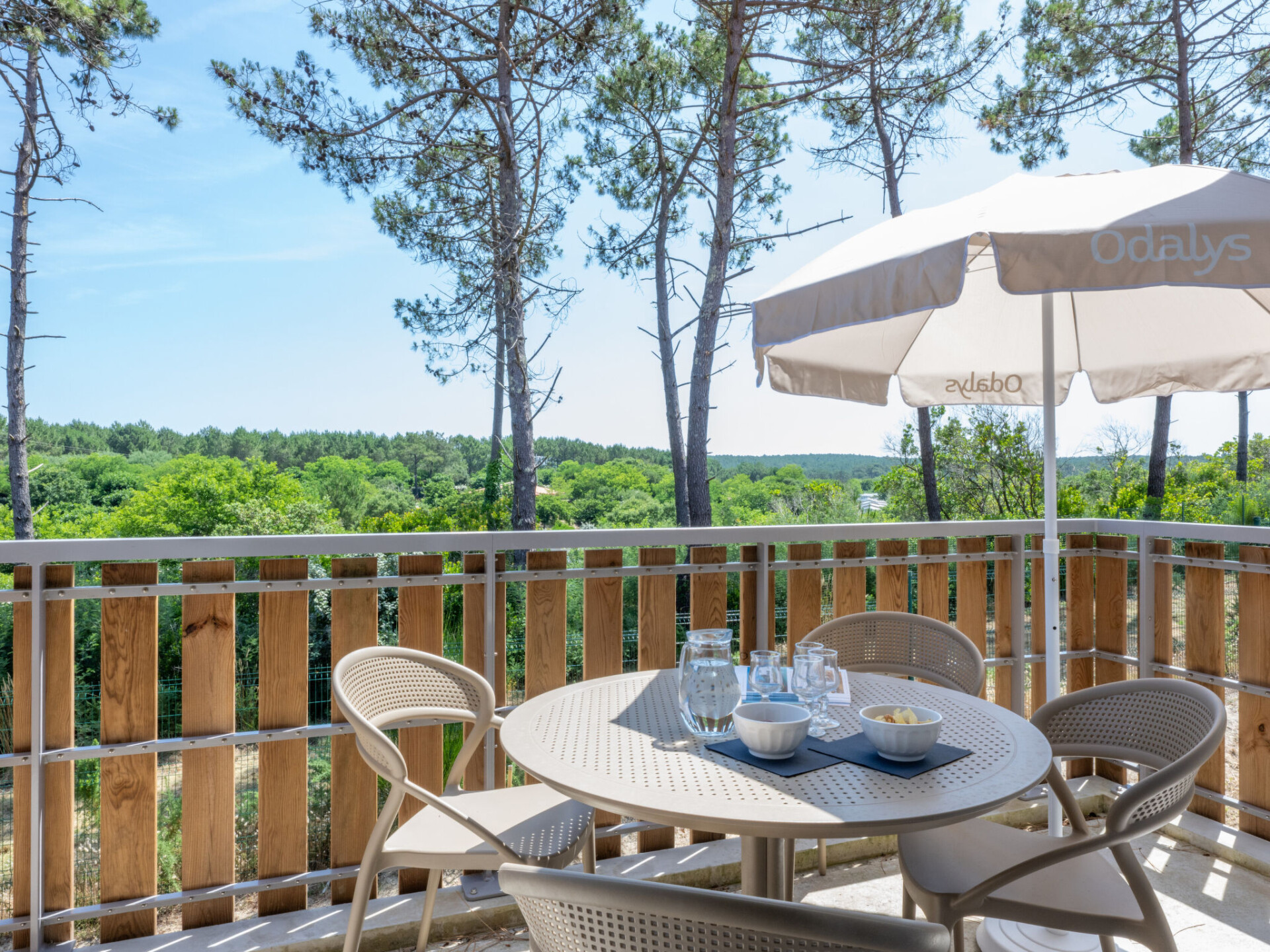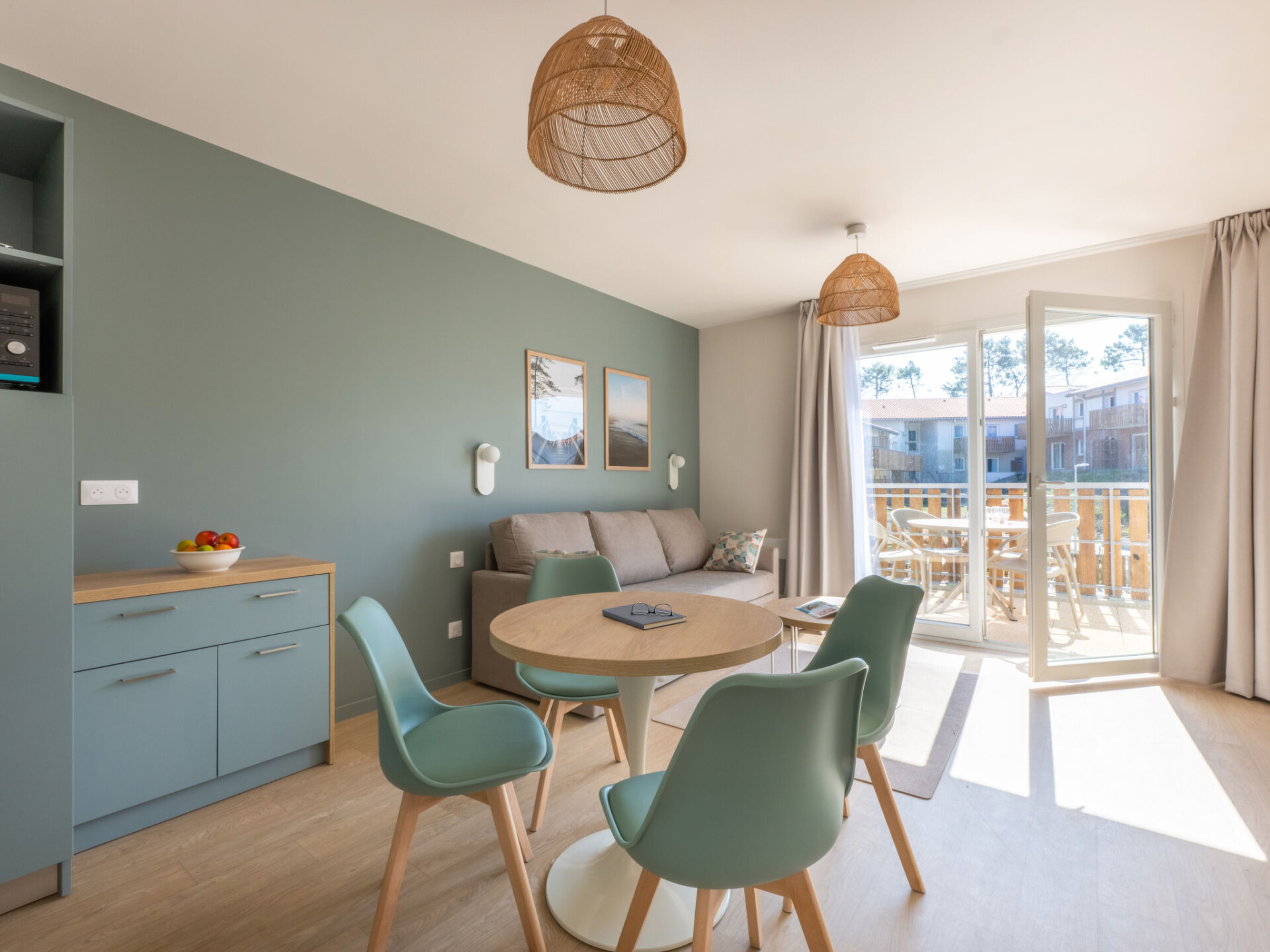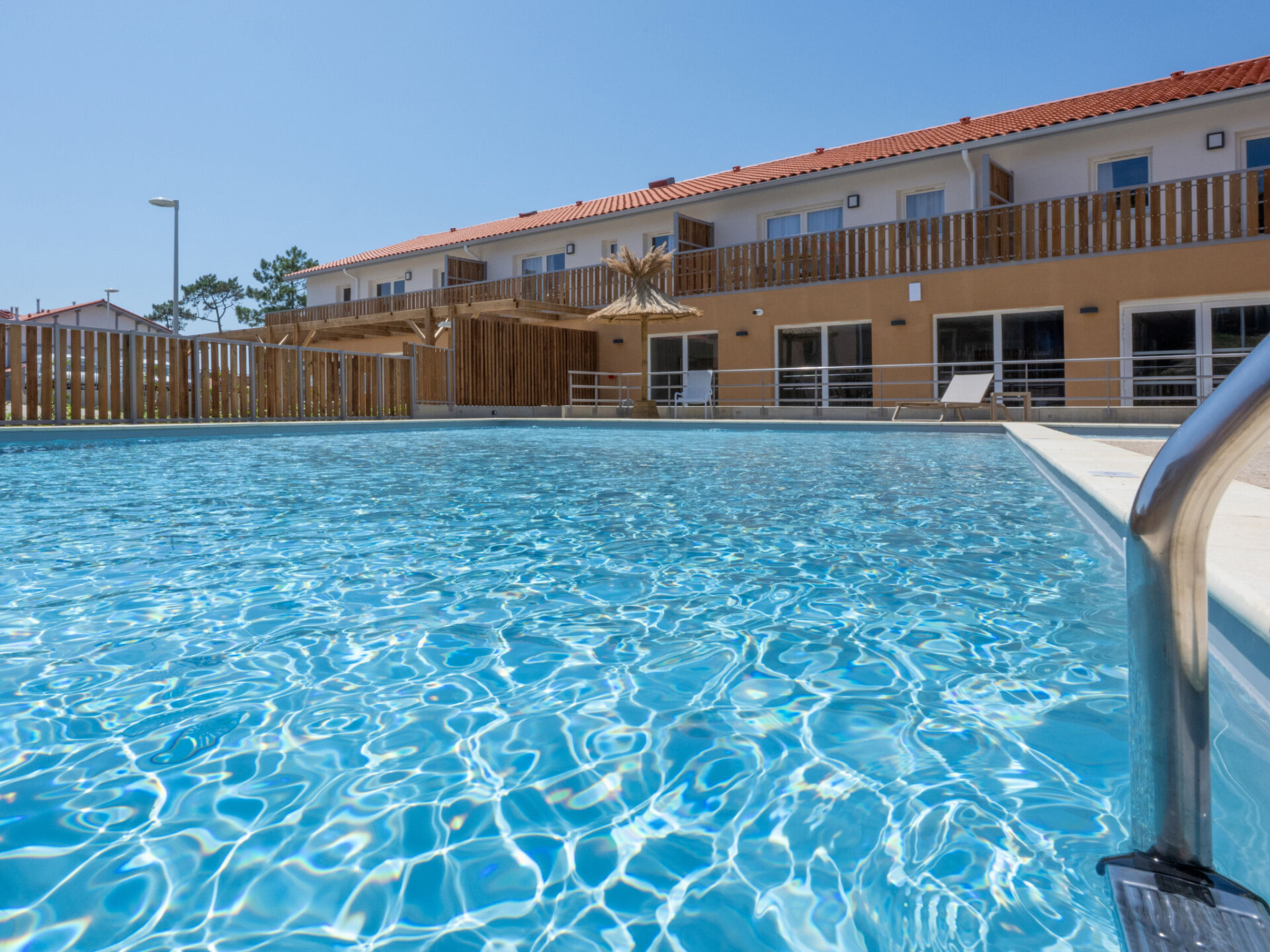 Residentie "Bleu Canopée", van 3 verdiepingen, bouwjaar 2025. 100 appartementen in de woning. 5 km van het centrum van Mimizan, in een woonwijk, 650 m van zee, 650 m van het strand. Voor medegebruik: terrein met gazon, openluchtzwembad omheind (98 m2, 80 - 140 cm diepte, seizoensgebonden beschikbaarheid: 01.Mei. - 30.Sep.) met trap. Kinderzwembad. In het complex: receptie, Internet (WiFi), sauna (extra). Fitnessruimte, wasmachine, droger (voor medegebruik, extra). Parkeerplaats. Supermarkt 1.4 km, restaurant 1 km, bushalte "Office de tourisme Mimizan" 1.3 km, treinstation "Labouheyre" 30 km, zandstrand 650 m, park "Landes aventures" 6 km, meer (zwemmen) "Aureilhan" 10 km. Golfterrein (9 holes) 7 km. Attracties in de buurt: Bassin Arcachon 70 km, Biscarrosse 35 km, Casino Mimizan - Plage 1 km, Centre Nautique 6 km, Bordeaux 110 km. De afgebeelde foto is slechts een voorbeeld.