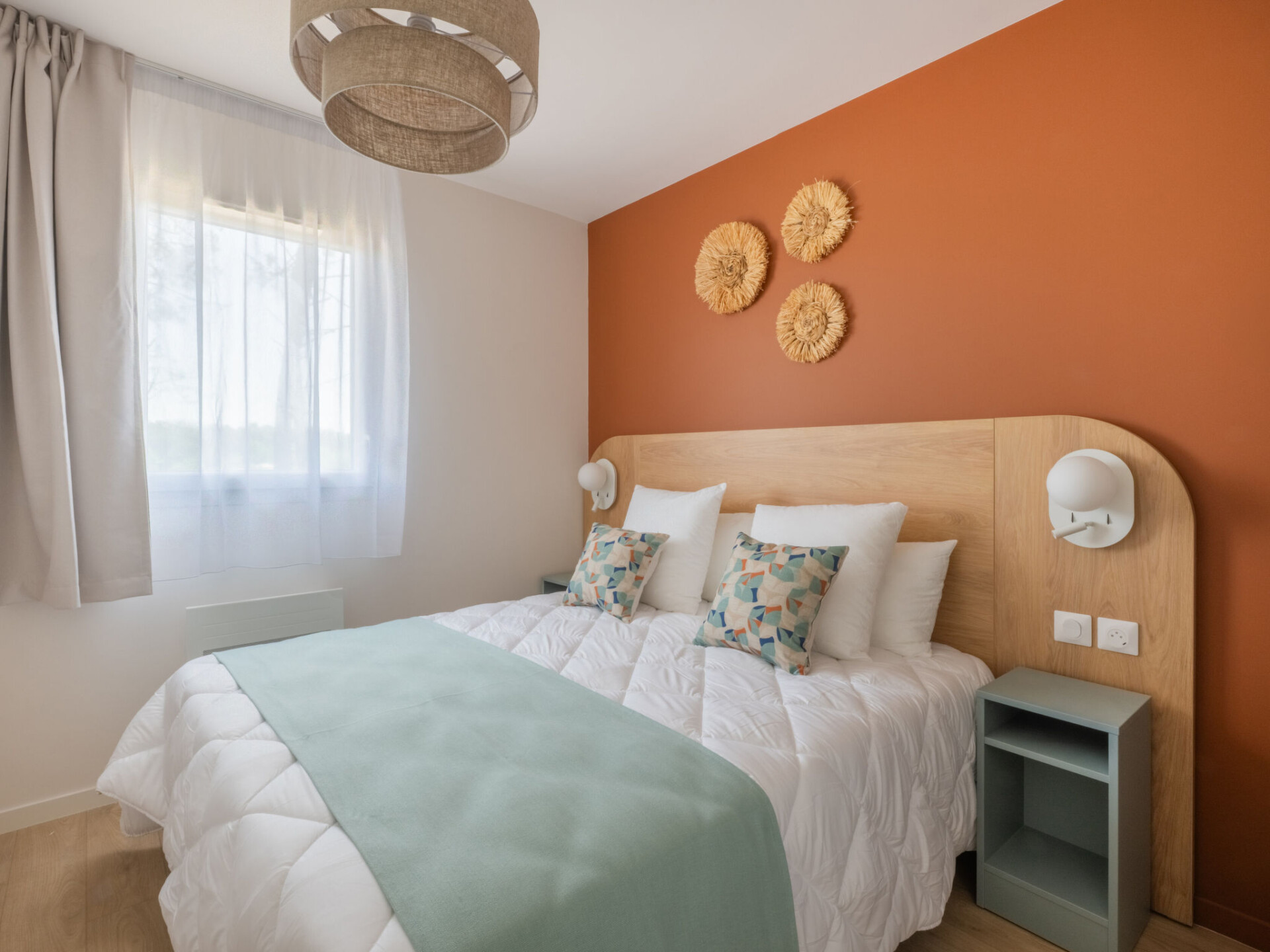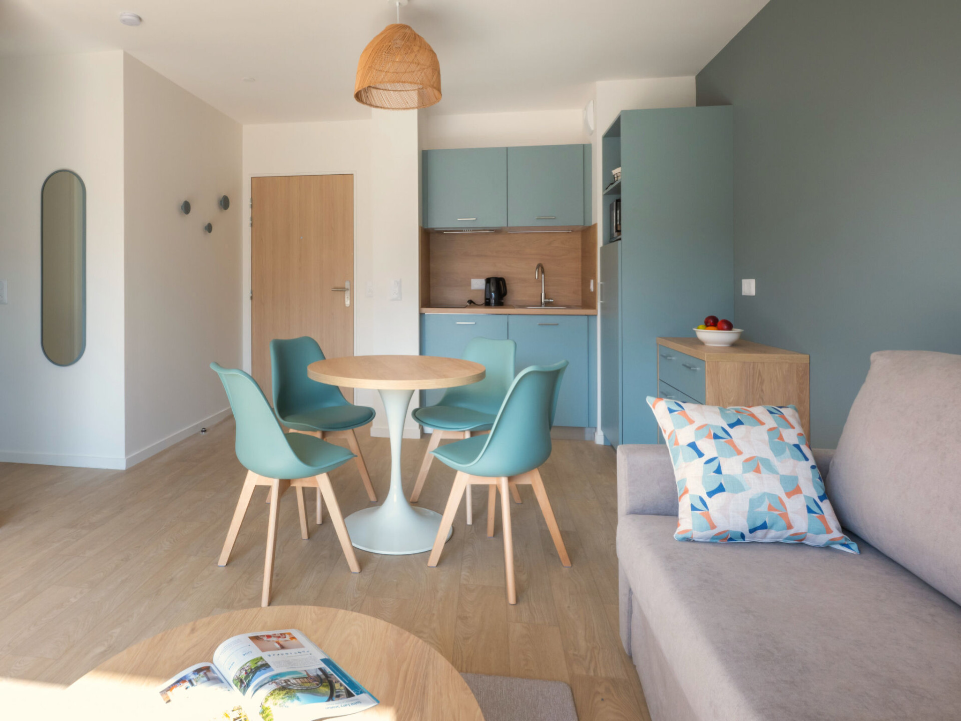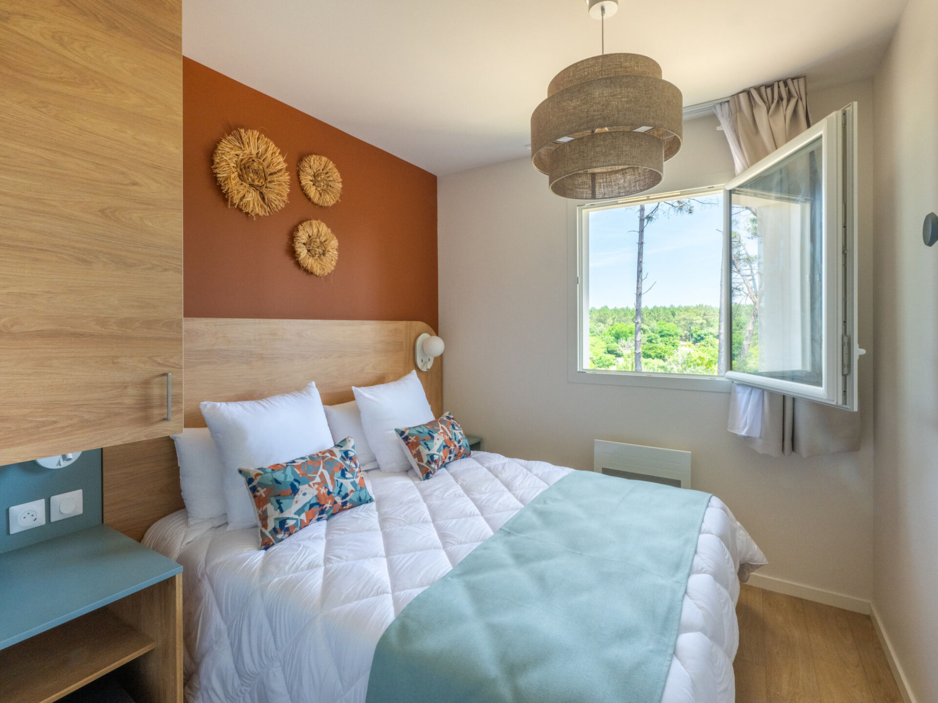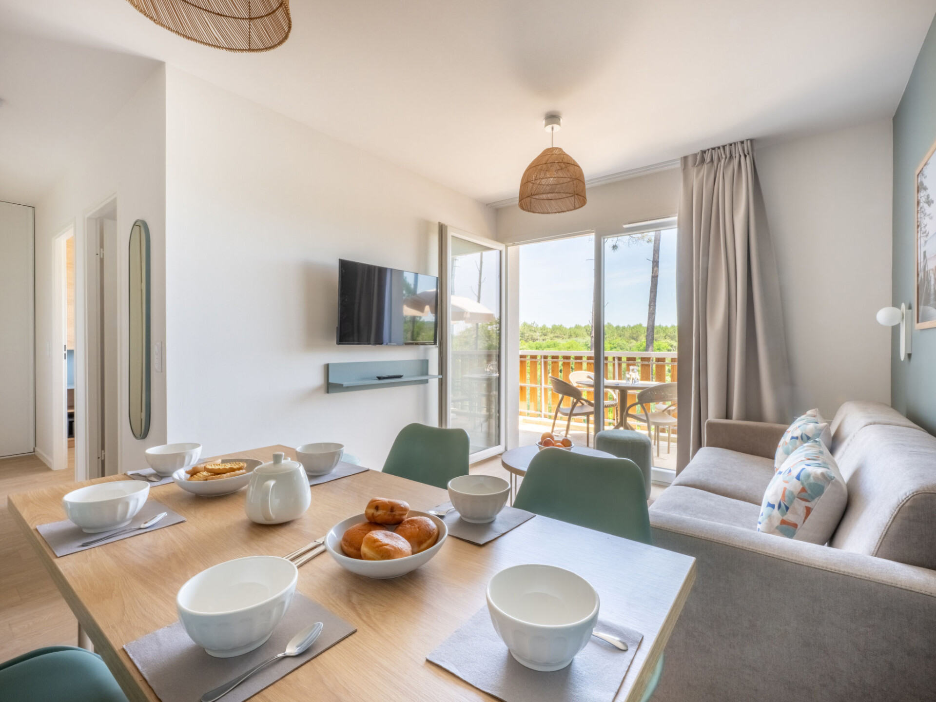 Residentie "Bleu Canopée", van 3 verdiepingen, bouwjaar 2025. 100 appartementen in de woning. 5 km van het centrum van Mimizan, in een woonwijk, 650 m van zee, 650 m van het strand. Voor medegebruik: terrein met gazon, openluchtzwembad omheind (98 m2, 80 - 140 cm diepte, seizoensgebonden beschikbaarheid: 01.Mei. - 30.Sep.) met trap. Kinderzwembad. In het complex: receptie, Internet (WiFi), sauna (extra). Fitnessruimte, wasmachine, droger (voor medegebruik, extra). Parkeerplaats. Supermarkt 1.4 km, restaurant 1 km, bushalte "Office de tourisme Mimizan" 1.3 km, treinstation "Labouheyre" 30 km, zandstrand 650 m, park "Landes aventures" 6 km, meer (zwemmen) "Aureilhan" 10 km. Golfterrein (9 holes) 7 km. Attracties in de buurt: Bassin Arcachon 70 km, Biscarrosse 35 km, Casino Mimizan - Plage 1 km, Centre Nautique 6 km, Bordeaux 110 km. De afgebeelde foto is slechts een voorbeeld.