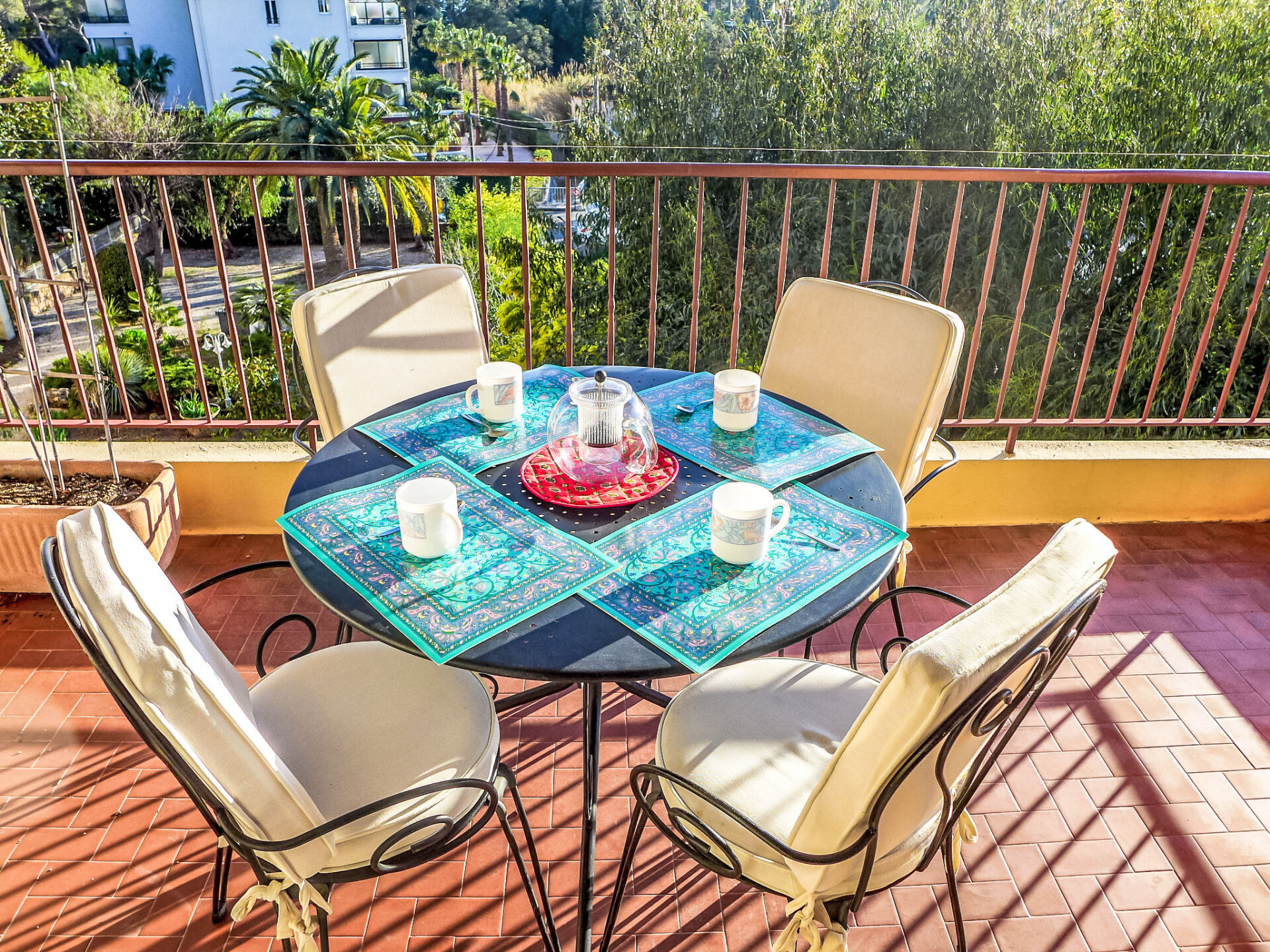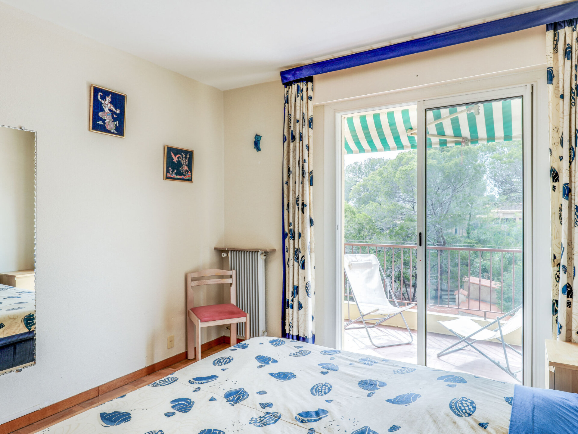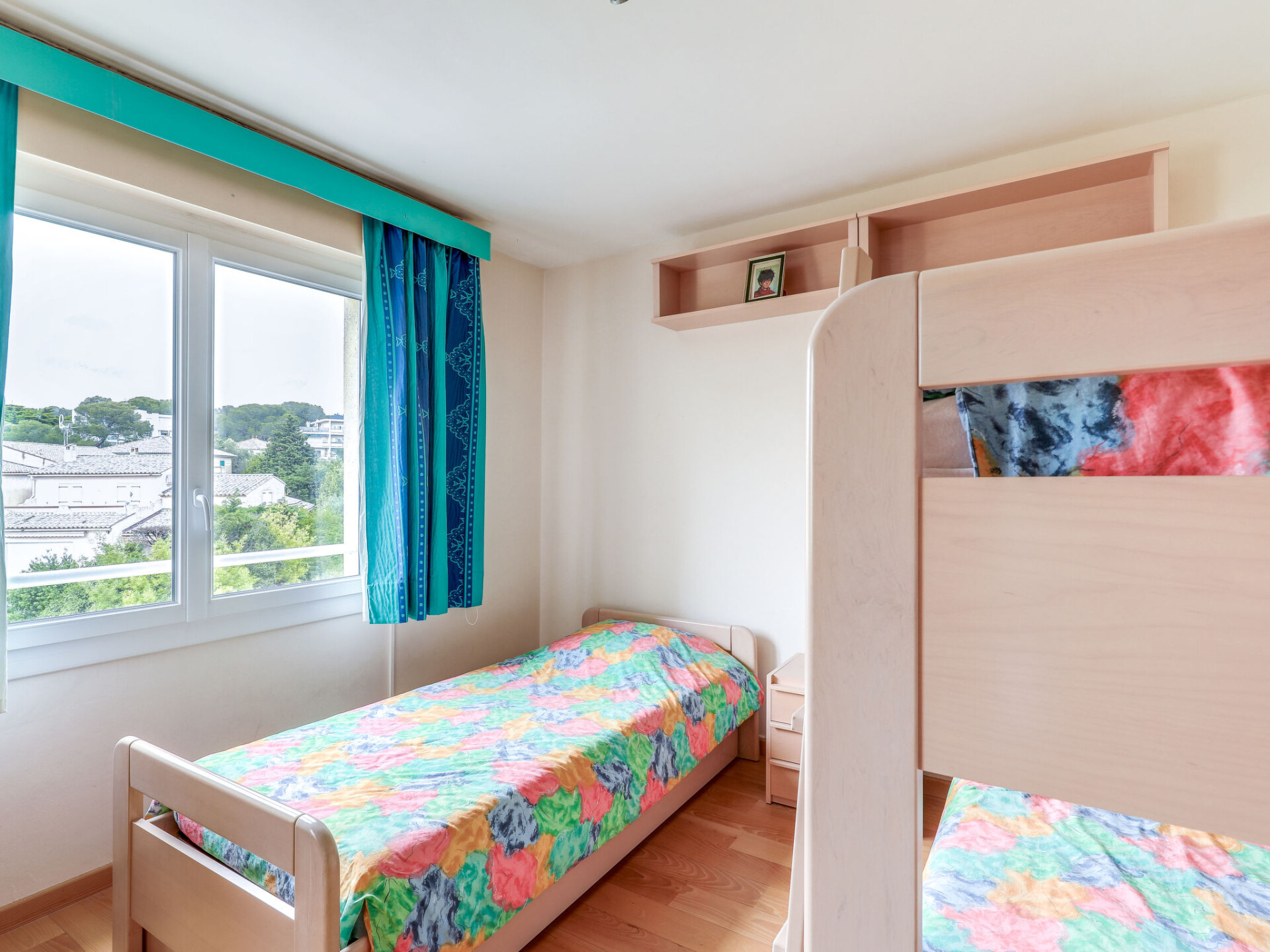 Appartement 3-kamers 75 m2 op de 3e verdieping. Licht, comfortabel ingericht: woon-/eetkamer met TV, radio, CD-speler en elektrische verwarming. Uitgang naar het balkon. 1 kamer met 1 2-pers bed (2 x 90 cm, lengte 200 cm). Uitgang naar het balkon. 1 kamer met 1 bed (90 cm, lengte 200 cm), 1 x 2 stapelbedden (90 cm, lengte 200 cm). Open keuken (oven, afwasmachine, 4 keramische glas kookplaten, waterkoker, magnetron, diepvriezer, elektrische koffiemachine, pads voor de koffiemachine (Senseo) extra). Badkamer, aparte WC. Klein balkon 5 m2, groot terras 10 m2. Terrasmeubelen. Uitzicht op de tuin. Ter beschikking: wasmachine, strijkijzer, haardroger. Internet (Internet (WiFi), extra). Parkeerplaats nr. 35, hoogte 200 cm. Rookmelders. FR8550.275.1