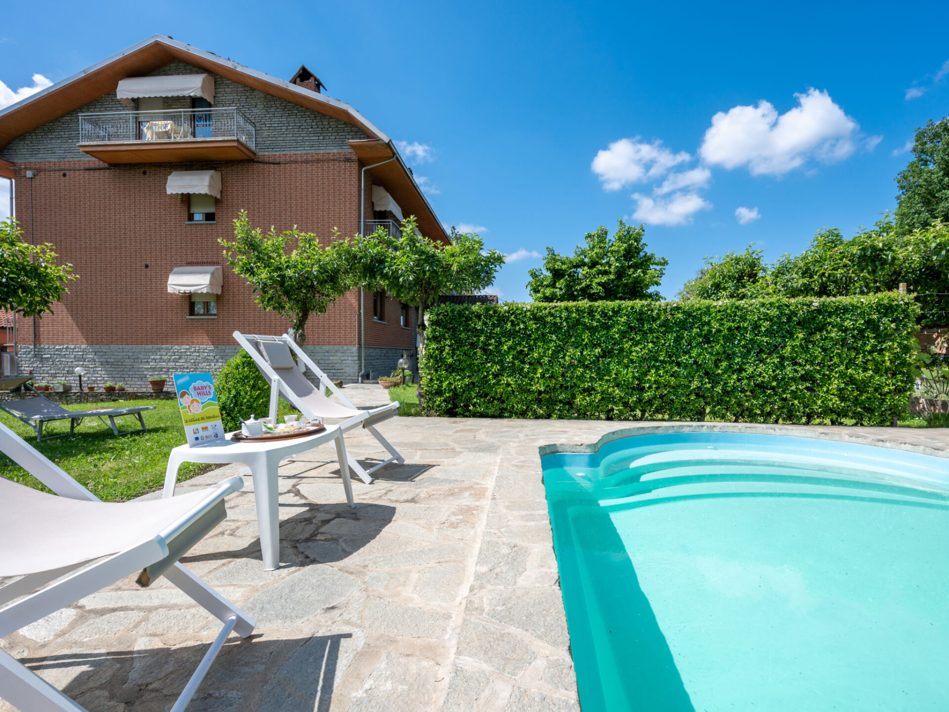 Kleine residentie "Ca' D'Gnese", van 3 verdiepingen. 500 m van het centrum van Castagnole Lanze, aan de rand van de plaats, 18 km van het centrum van Alba, 22 km van het centrum van Asti. Voor medegebruik: terrein 2.000 m2, verzorgde tuin met gazon en planten, ligweide, openluchtzwembad (9 x 4 m, 100 - 200 cm diepte, seizoensgebonden beschikbaarheid: 01.Mei. - 31.Okt.). Buitendouche. In het huis: wasmachine (voor medegebruik, extra). Ontbijt op verzoek op aanvraag (extra). Parkeerplaats op het terrein. Supermarkt 500 m, bushalte 900 m, treinstation "Asti" 22 km. De eigenaar woont in hetzelfde huis.
