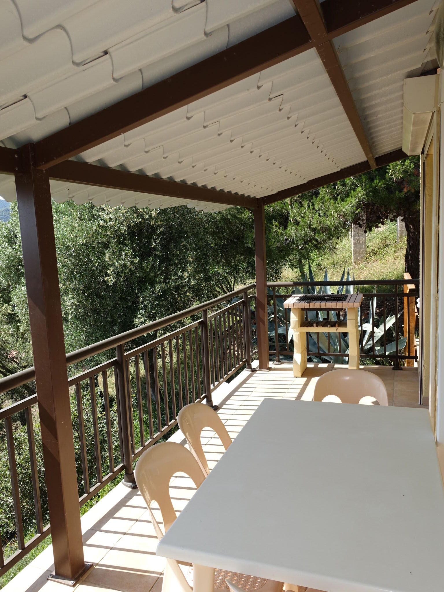 "Camelia- Marjolène", appartement 2-kamers 45 m2, op de begane grond. Mooi ingericht: woon-/slaapkamer met 1 2-pers divanbed, eettafel en Sat-TV. Uitgang naar het terras. 1 kamer met 1 2-pers bed. Kookhoek (oven, afwasmachine, 3 keramische glas kookplaten, broodrooster, waterkoker, magnetron, diepvriezer, elektrische koffiemachine). Douche, aparte WC. Elektrische verwarming, air-conditioning. Terras 15 m2. Terrasmeubelen, barbecue. Mooi uitzicht op de bergen, het landschap, het bos en de oceaan. Ter beschikking: Internet (WiFi, gratis). Niet rokers woning. Maximaal 1 huisdier/hond toegestaan. Rookmelders. Aanbod door een commerciële eigenaar volgens art. 155, IV, CGI