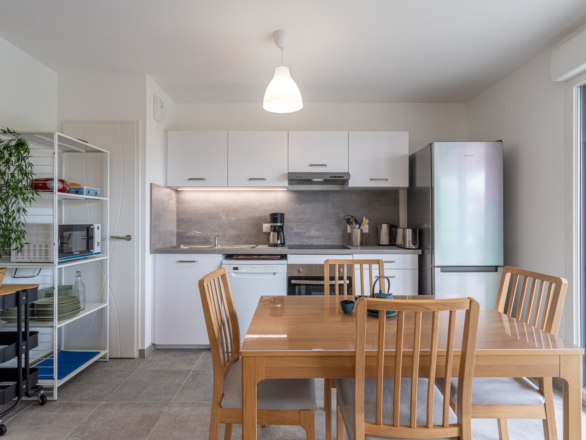 Appartement 2-kamers 41 m2 op de 2e verdieping. Ruim en licht, zeer mooi ingericht: woon-/eetkamer met eettafel en TV (Flatscreen TV). Uitgang naar het terras. 1 kamer met 1 2-pers bed (160 cm, lengte 200 cm). Open keuken (afwasmachine, 4 keramische glas kookplaten, broodrooster, waterkoker, magnetron, diepvriezer, elektrische koffiemachine). Uitgang naar het terras. Douche/WC. Elektrische verwarming. Terras 24 m2, op het westen gelegen. Terrasmeubelen. Uitzicht op. Ter beschikking: wasmachine, strijkijzer, haardroger. Internet (Internet (WiFi), gratis). Parkeerplaats nr. 56 Exterieur & N°24 (overdekt, omheind). TV alleen FR. Rookmelders. Aanbod door een particulier volgens art. 155, IV van CGI. C 209