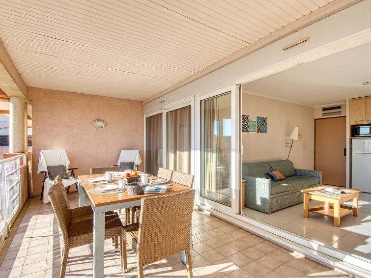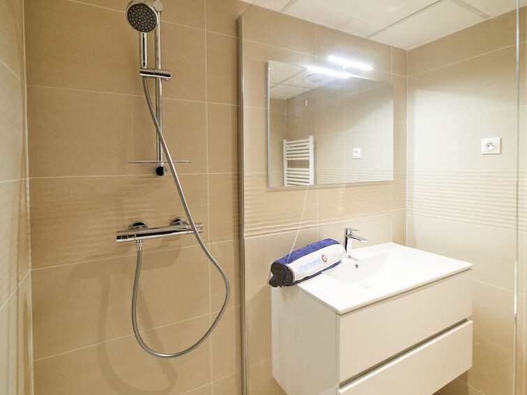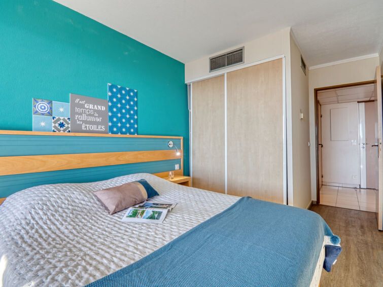 Appartement 3-kamers 41 m2 op de 4e verdieping. Woon-/eetkamer met eethoek en TV (Flatscreen TV), elektrische verwarming en air-conditioning. Uitgang naar het terras. 1 kamer met 1 2-pers bed (1 x 160 cm, lengte 200 cm), TV, Flatscreen TV, elektrische verwarming en air-conditioning. Uitgang naar het terras. Cabine, zonder ramen met 1 x 2 stapelbedden (90 cm, lengte 190 cm). Open keuken (4 keramische glas kookplaten, broodrooster, waterkoker, magnetron, elektrische koffiemachine). Bad/douche, aparte WC. Terras 18 m2, op het westen gelegen. Terrasmeubelen. Mooi uitzicht op zee. Ter beschikking: Internet (Internet (WiFi), extra). Parkeerplaats nr. 2021 (overdekt). Rookmelders. In plaats van een afgesloten slaapkamer bevinden sommige slaapgedeeltes zich in een open ruimte (galerij, nis, etc.). Aanbod door een commerciële eigenaar volgens art. 155, IV, CGI