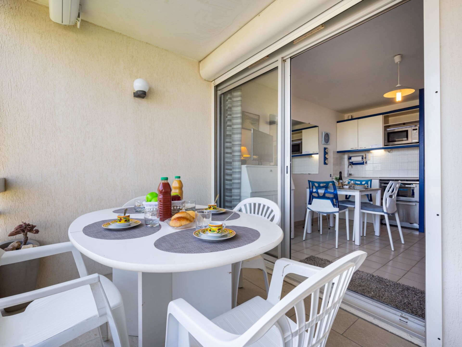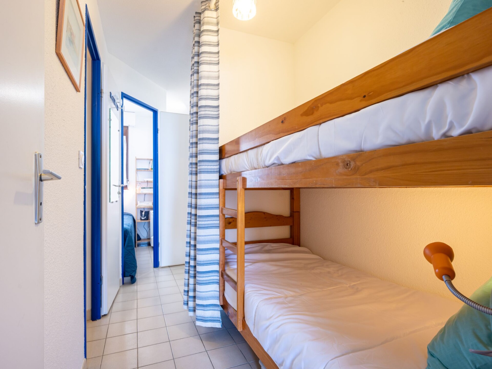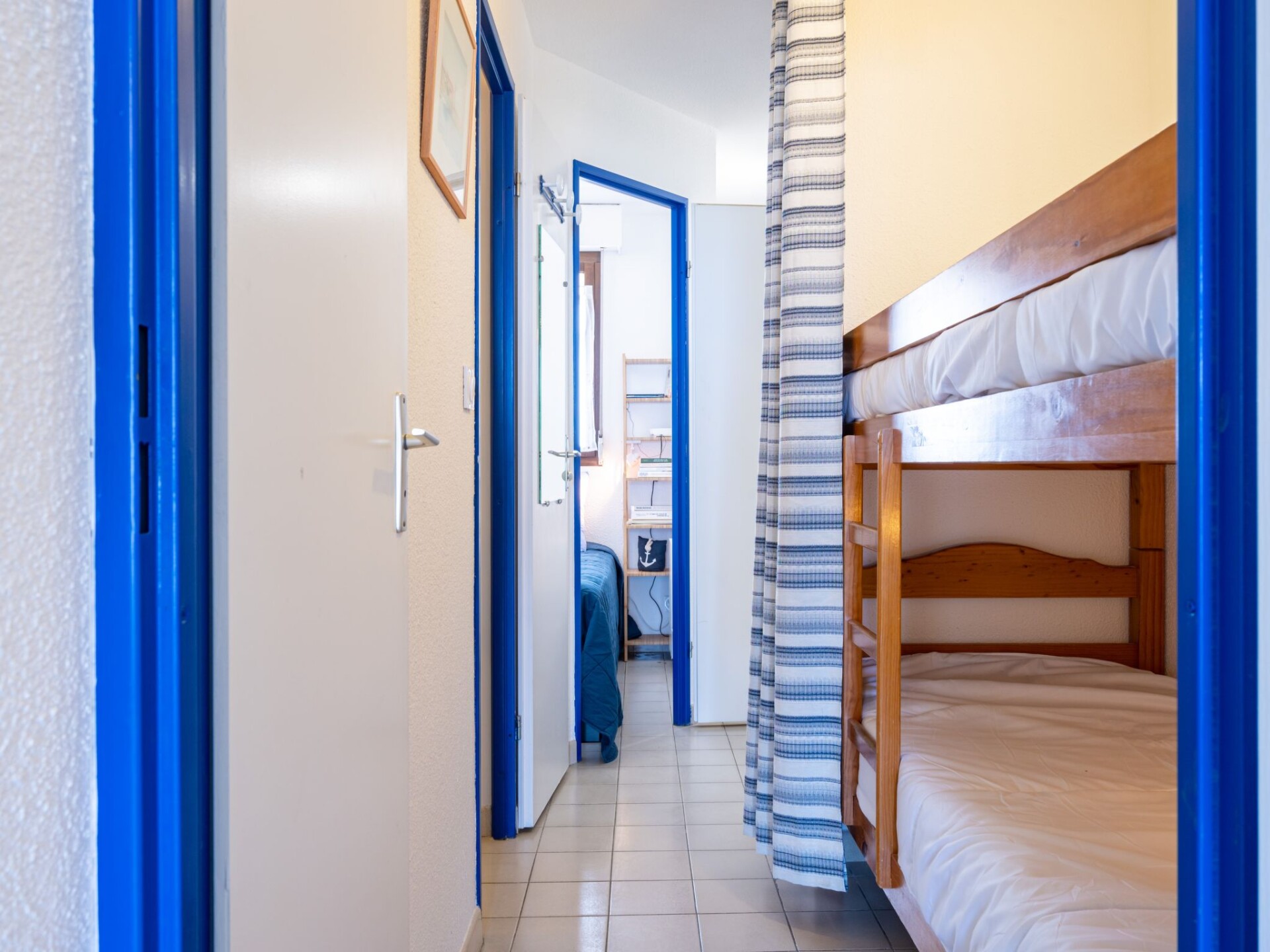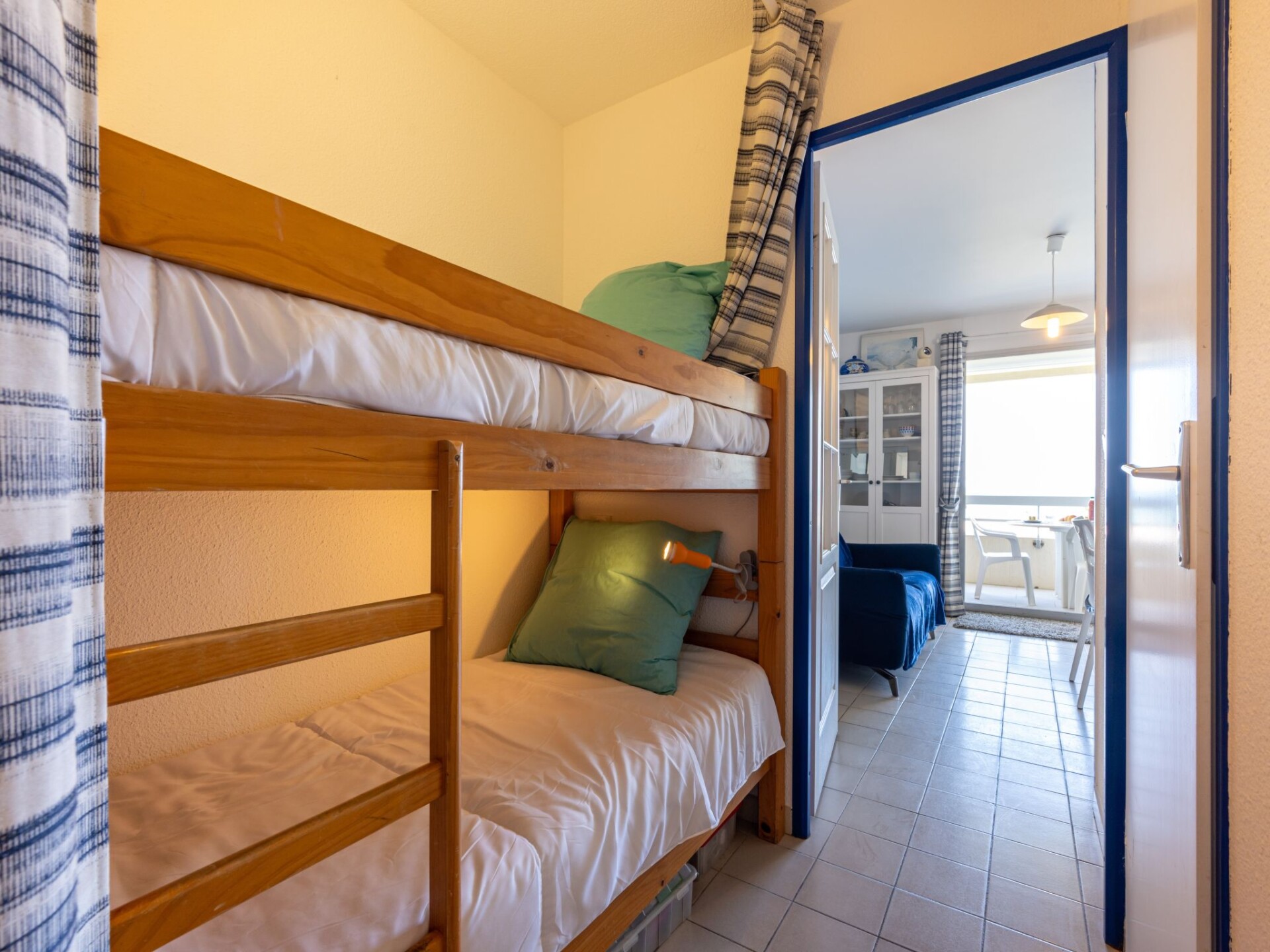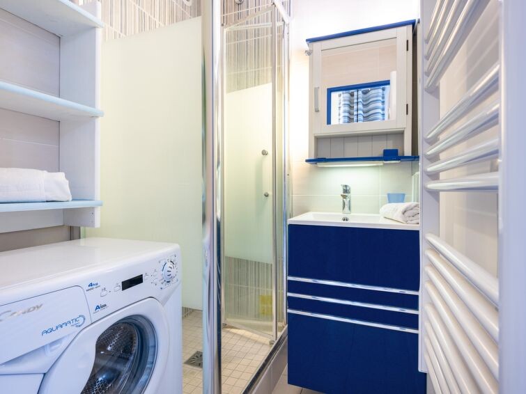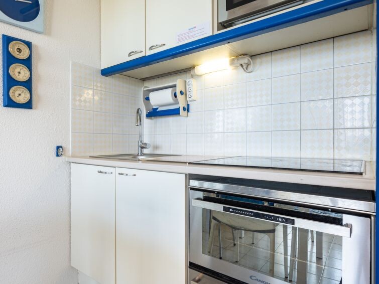 "Cap Sud", appartement 2-kamers 28 m2. Hal met 1 x 2 stapelbedden (90 cm, lengte 190 cm). Woon-/eetkamer met TV en radio. Uitgang naar het terras. 1 kamer met 1 2-pers bed (1 x 140 cm, lengte 190 cm). Open keuken (oven, afwasmachine, 3 inductiekookplaten, broodrooster, waterkoker, magnetron, diepvriezer, elektrische koffiemachine) met eettafel. Douche, aparte WC. Elektrische verwarming. Terras 9 m2, op het oosten gelegen. Terrasmeubelen. Mooi uitzicht op zee. Ter beschikking: wasmachine, strijkijzer, haardroger. Internet (WiFi, gratis). Maximaal 1 huisdier/hond toegestaan. Rookmelders. Aanbod door een particulier volgens art. 155, IV van CGI.