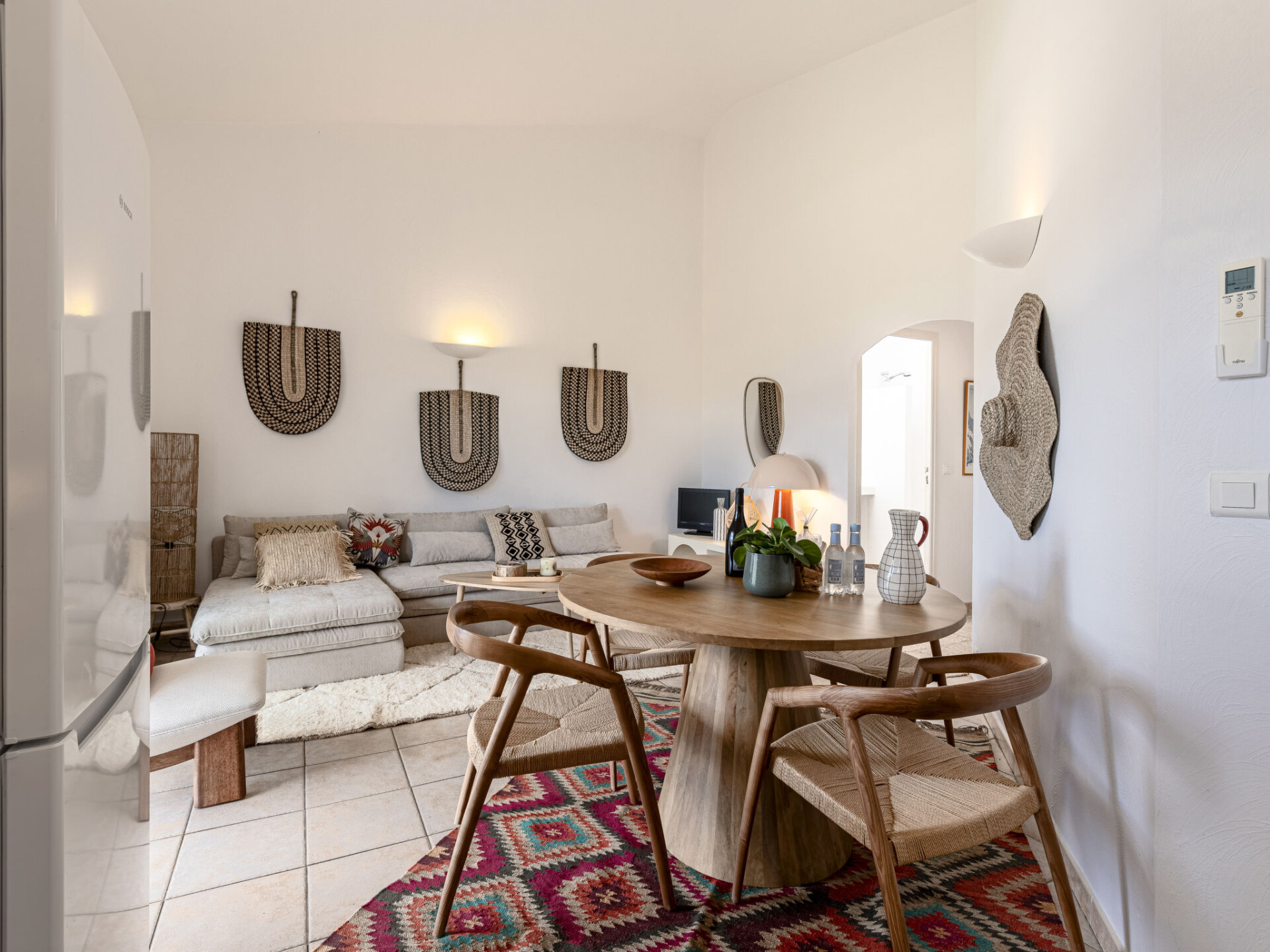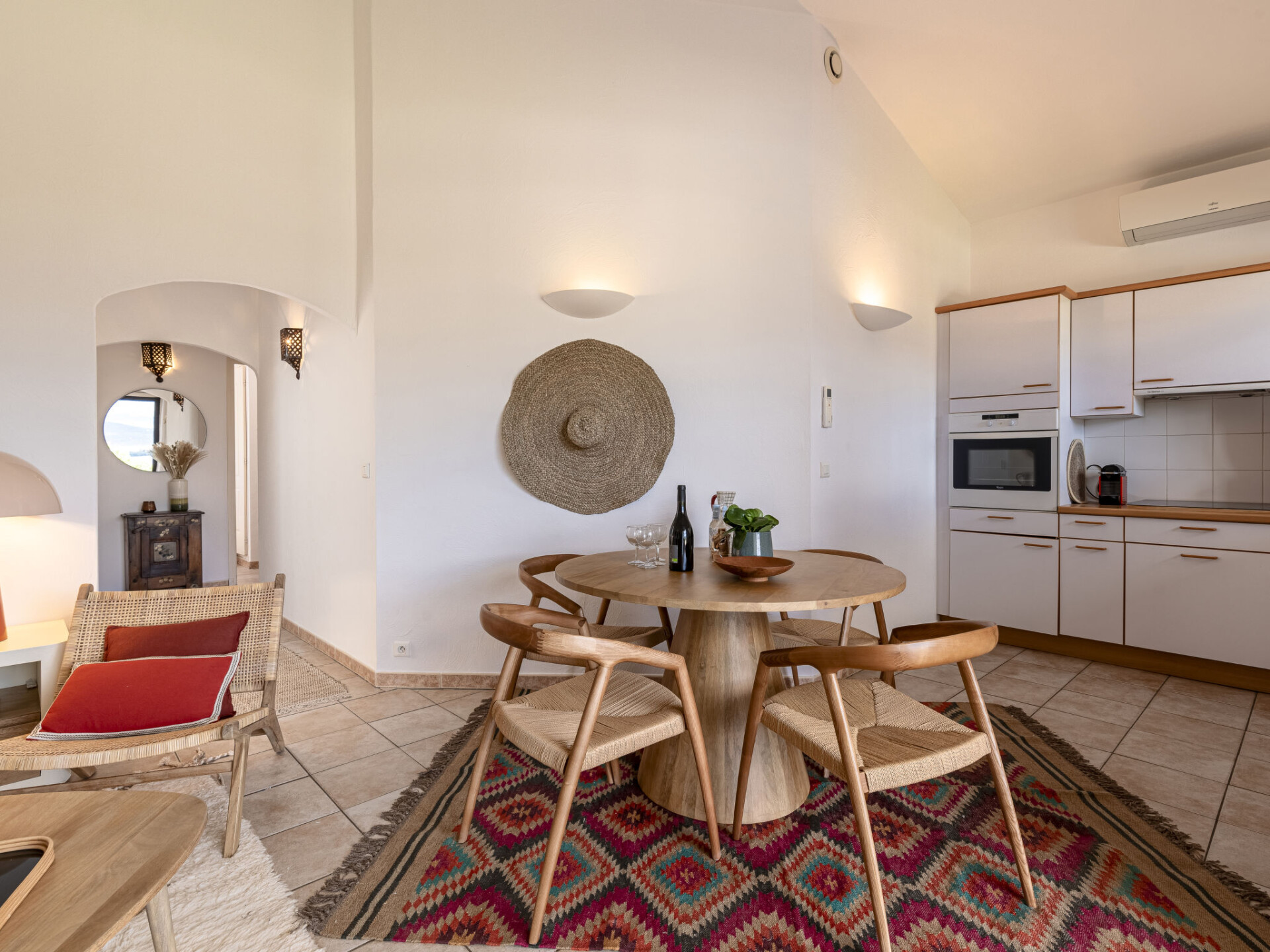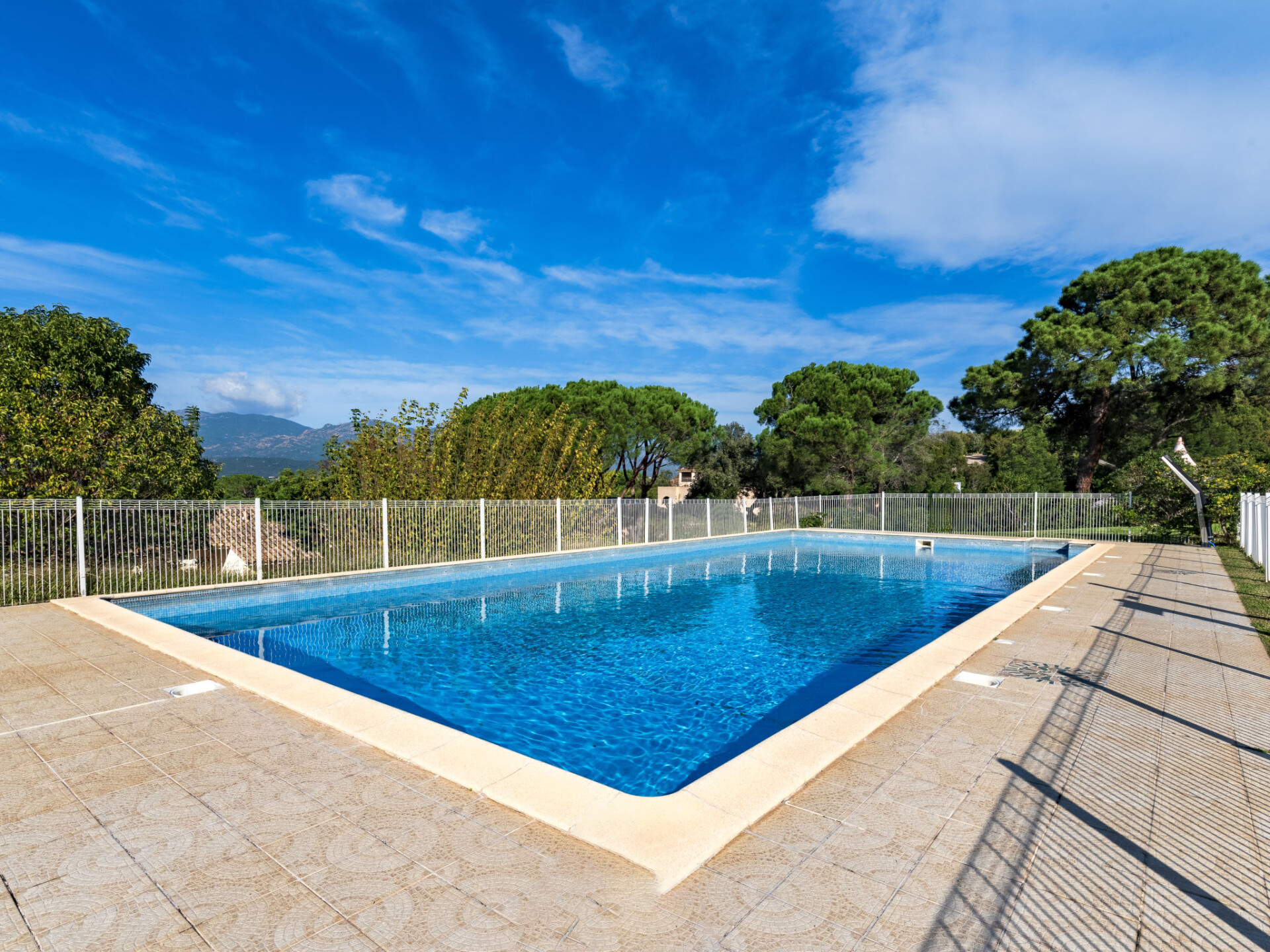 Residentie "le village marin". Buiten de plaats, 6.6 km van het centrum van Porto-Vecchio, rustige ligging op een heuvel, 100 m van zee, 3.3 km van het strand, aan een doodlopende weg. Voor medegebruik: 2 zwembaden hoekig omheind (seizoensgebonden beschikbaarheid: 15.Mei. - 15.Sep.). Tennisbaan (1 x hard court), onderhoud zwembad door de eigenaar/tuinman, parkeerplaats. Winkelcentrum 8 km, restaurant 100 m, bushalte 5 km, zandstrand "Plage de Pavelone" 3 km. Jachthaven 6 km. Attracties in de buurt: Centre ville de Porto-Vecchio 6 km, Plage de Palombaggia 8 km, Plage de Santa giulia 10 km, Bonifacio 28 km. Bekende meren kunnen gemakkelijk worden bereikt: Lac de l'Ospédale 26 km. Wandelgebied Aiguilles de Bavella 54 km. Auto noodzakelijk.