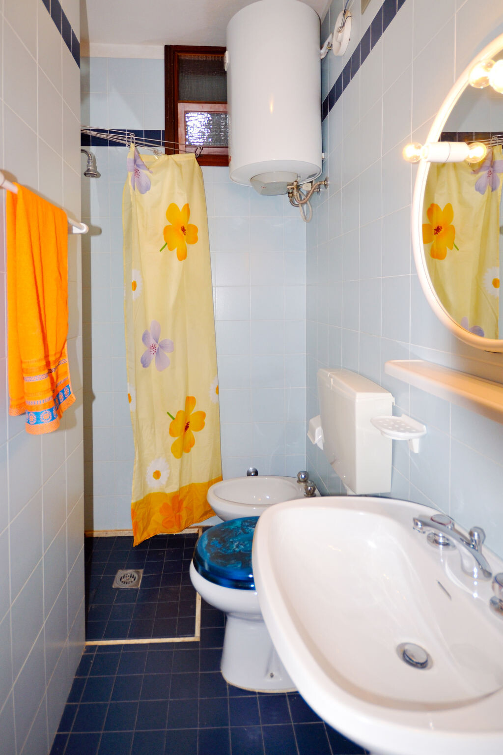 Appartement 2-kamers 42 m2, op de bovenverdieping. Licht, doelmatig ingericht: woon-/slaapkamer met 1 2-pers divanbed, eettafel, kookhoek en Sat-TV. Uitgang naar het balkon. 1 kamer met 1 x 2 stapelbedden, 1 2-pers bed. Kookhoek (4 kookpitten (vlammen), magnetron, elektrische koffiemachine). Douche/WC. Elektrische verwarming, air-conditioning. Balkon. Balkonmeubilair. Ter beschikking: kinderstoel, kinderbed (extra). Internet (WiFi, gratis). Garage op het terrein (1 Auto) bij het huis. Maximaal 1 huisdier/hond toegestaan. De beschrijving betreft een voorbeeld van dit type woning in dit complex. IT027034C2QZKVSOU7