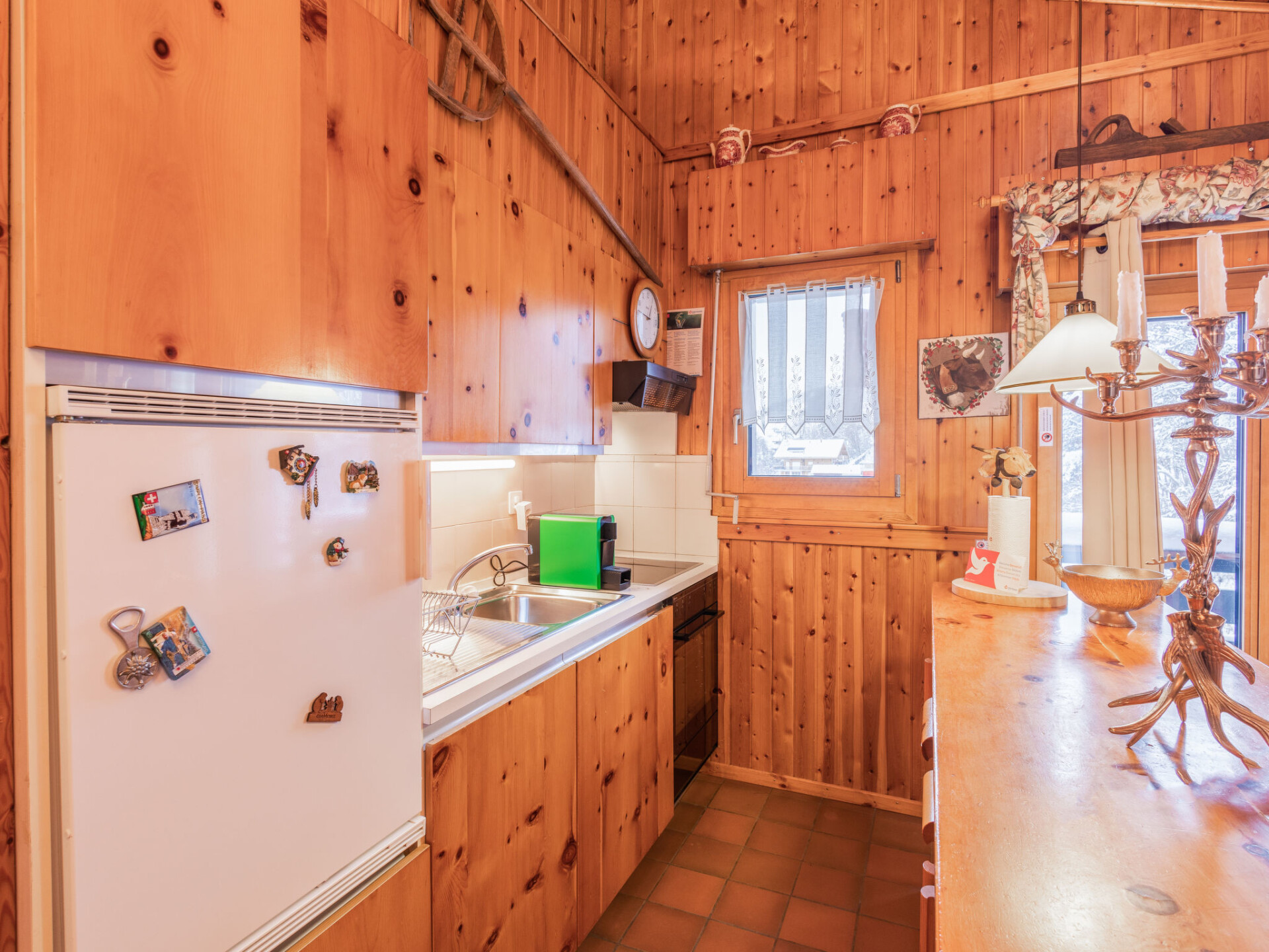 "Chaedoz 65", appartement 2-kamers 44 m2 op de 6e verdieping. Antiek ingericht: woon-/eetkamer met open haard (alleen decoratie), Kabel-TV en DVD. Uitgang naar het balkon, op het oosten. Kleine, open galerij met afgeschuinde daken met 2 bedden (90 cm, lengte 190 cm). 1 kamer met 2 bedden (90 cm, lengte 190 cm). Kookhoek (oven, 4 keramische glas kookplaten, broodrooster, waterkoker, elektrische koffiemachine, pads voor de koffiemachine (Delizio) extra, raclette oven, fondue Set (chinese, kaas)). Bad/WC. Balkon, op het oosten gelegen. Mooi uitzicht op de bergen en de plaats. Niet rokers woning. In plaats van een afgesloten slaapkamer bevinden sommige slaapgedeeltes zich in een open ruimte (galerij, nis, etc.).
