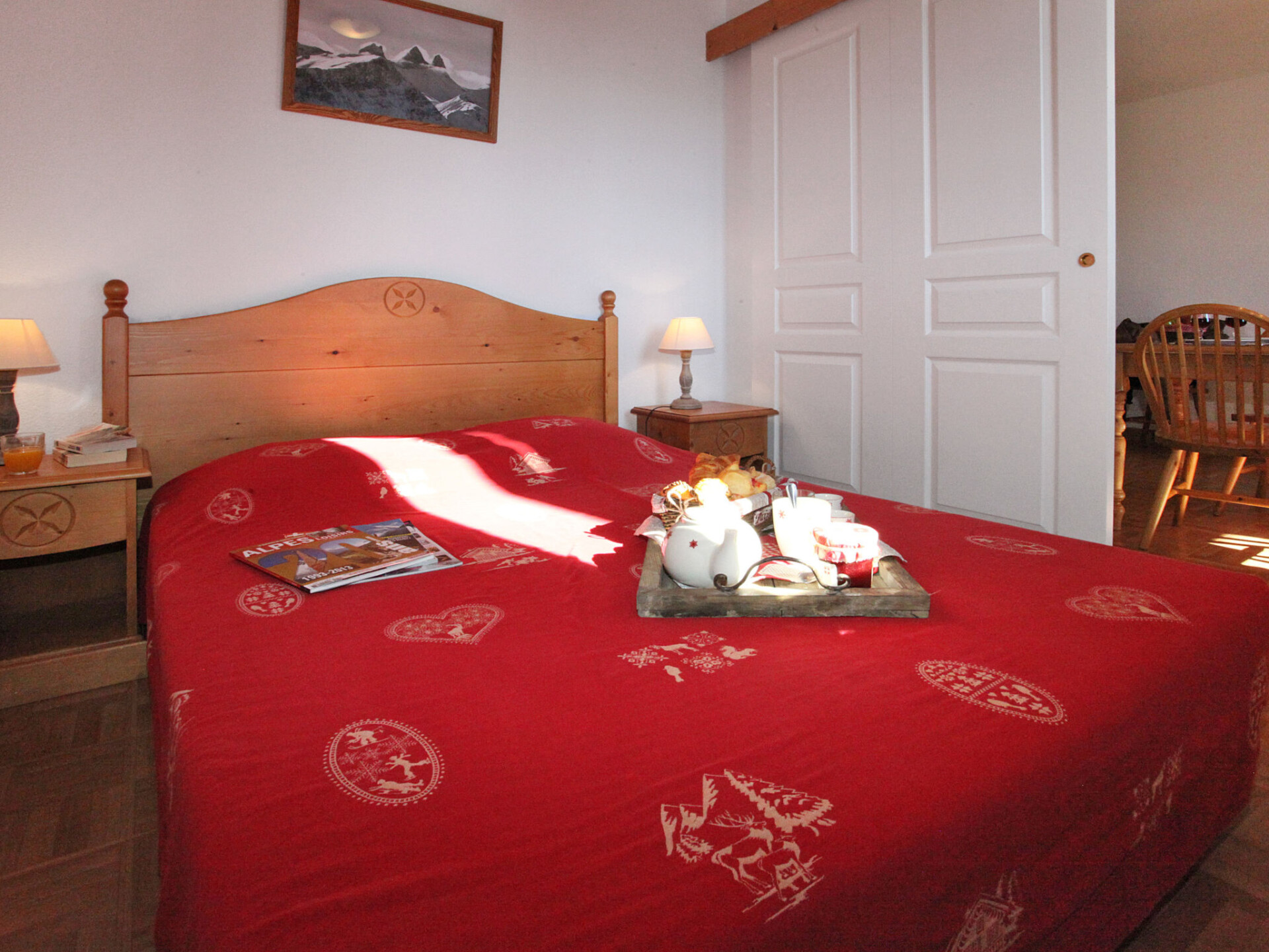 "Chalets Des Cimes", appartement 3-kamers 38 m2. Gezellig ingericht: woon-/slaapkamer met 1 divanbed, 1 uitschuifbaar bed, eettafel en TV te huur. 1 kamer met 1 2-pers bed. 1 kamer met 1 x 2 stapelbedden. Kookhoek (4-pits kookplaat, afwasmachine, broodrooster, magnetron, elektrische koffiemachine). Badkamer, aparte WC. Elektrische verwarming. Ter beschikking: Internet (WiFi, extra). Niet rokers woning. Maximaal 1 huisdier/hond toegestaan.