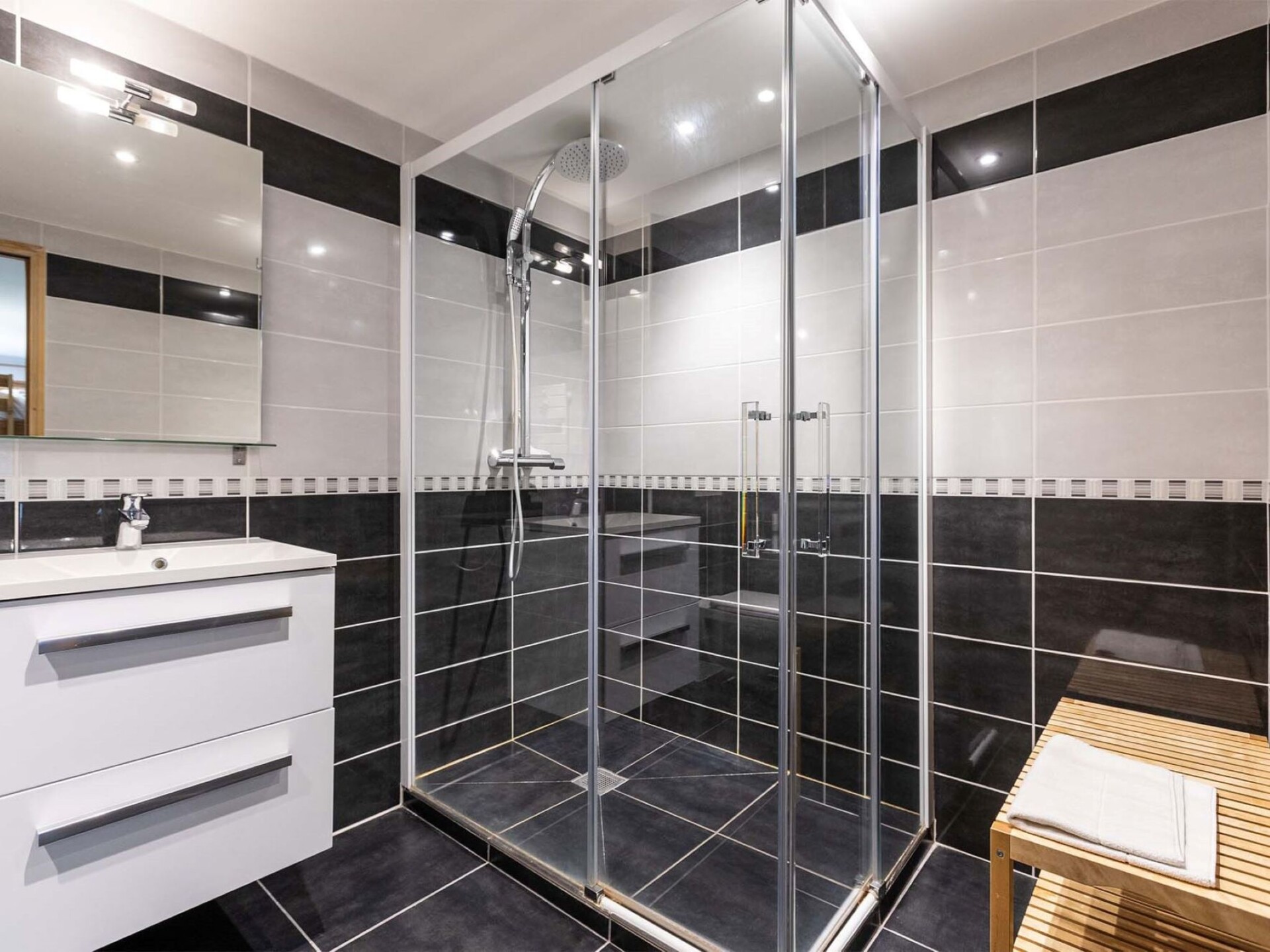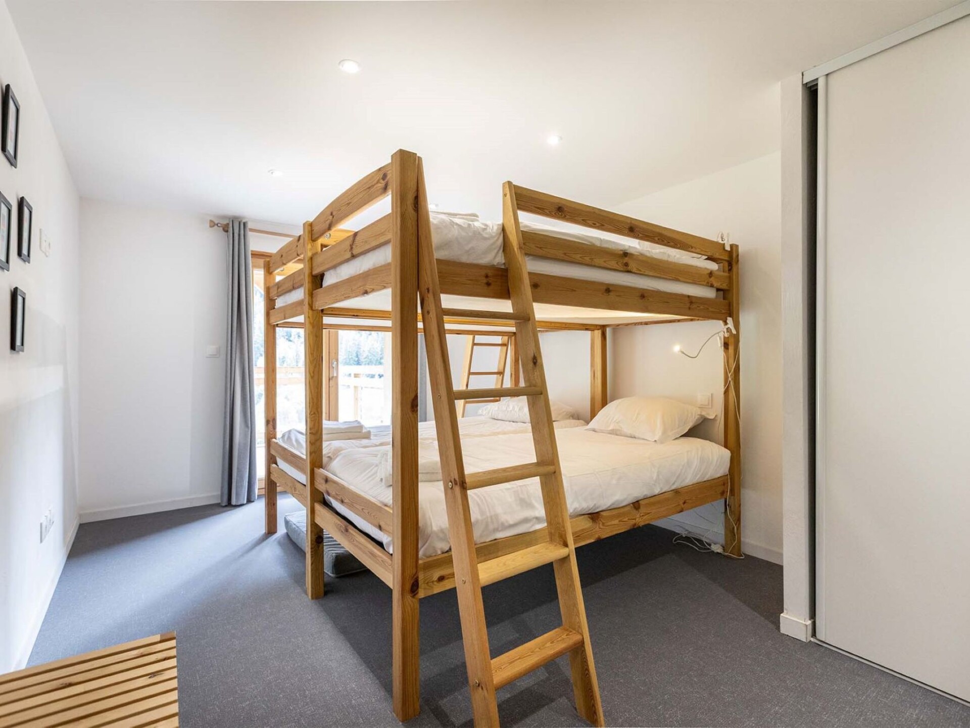 "Nancroix", appartement 5-kamers 120 m2 op 2 verdiepingen. Ruim, comfortabel ingericht: groot woon-/eetkamer 43 m2 met 1 2-pers divanbed en TV (Flatscreen TV). Uitgang naar het terras. Open galerij met afgeschuinde daken met 1 2-pers divanbed. 1 kamer met 1 2-pers bed (1 x 160 cm, lengte 200 cm), douche/WC. Keuken (oven, afwasmachine, broodrooster, magnetron, diepvriezer, elektrische koffiemachine, pads voor de koffiemachine (Nespresso)). Bovenverdieping: 2 kamers, elke kamer heeft 1 2-pers bed (1 x 160 cm, lengte 200 cm), douche/WC. 1 kamer met 2 x 2 stapelbedden (4 x 90 cm, lengte 200 cm), douche/WC. 2 terrassen. Uitzicht op de bergen. Ter beschikking: wasmachine, droger, strijkijzer, haardroger. Internet (WiFi, gratis). Parkeerplaats.