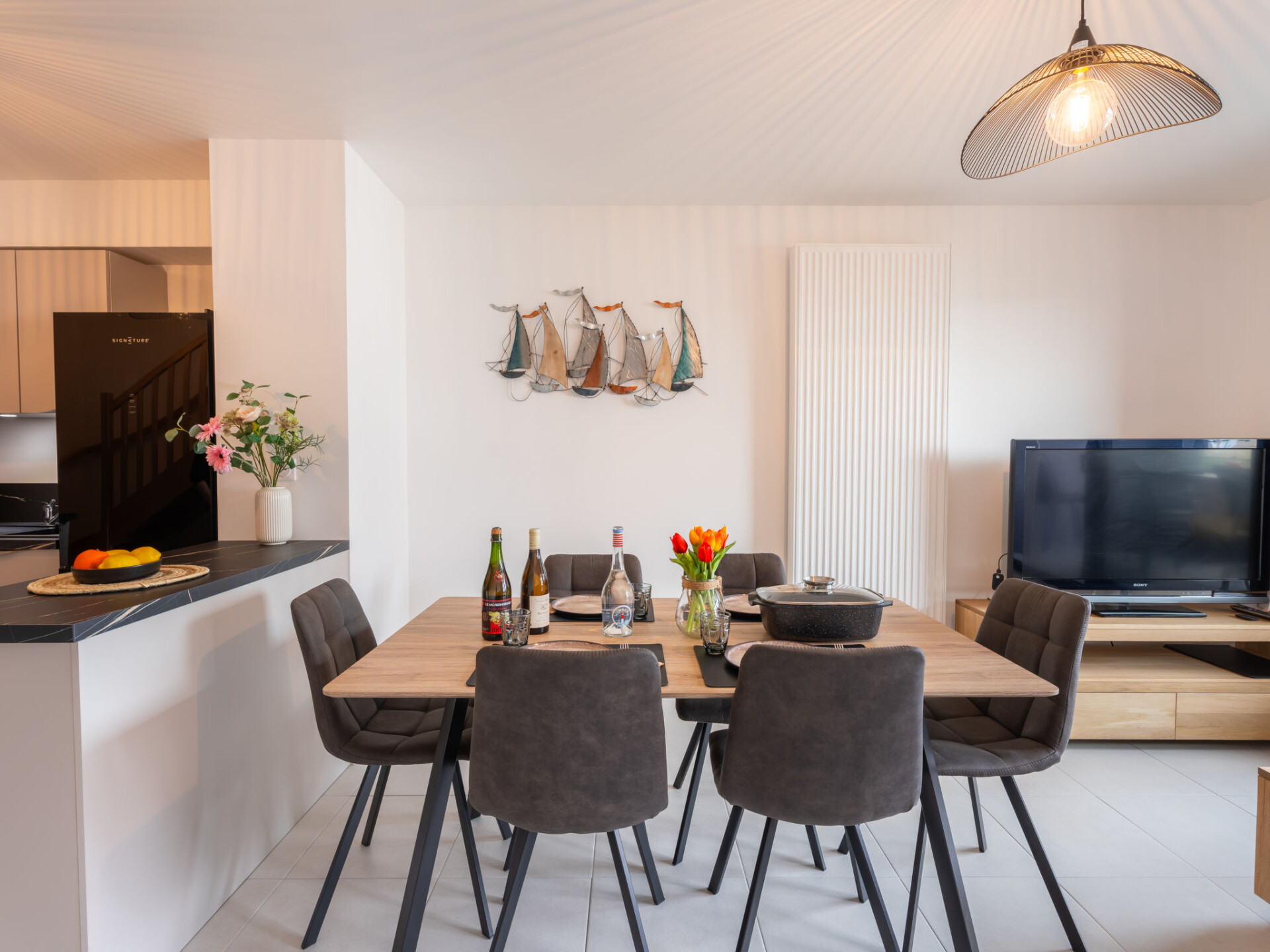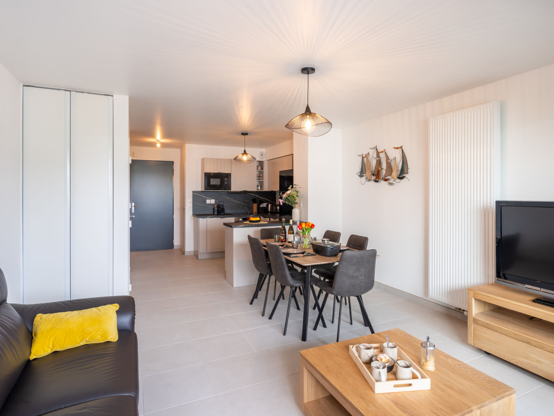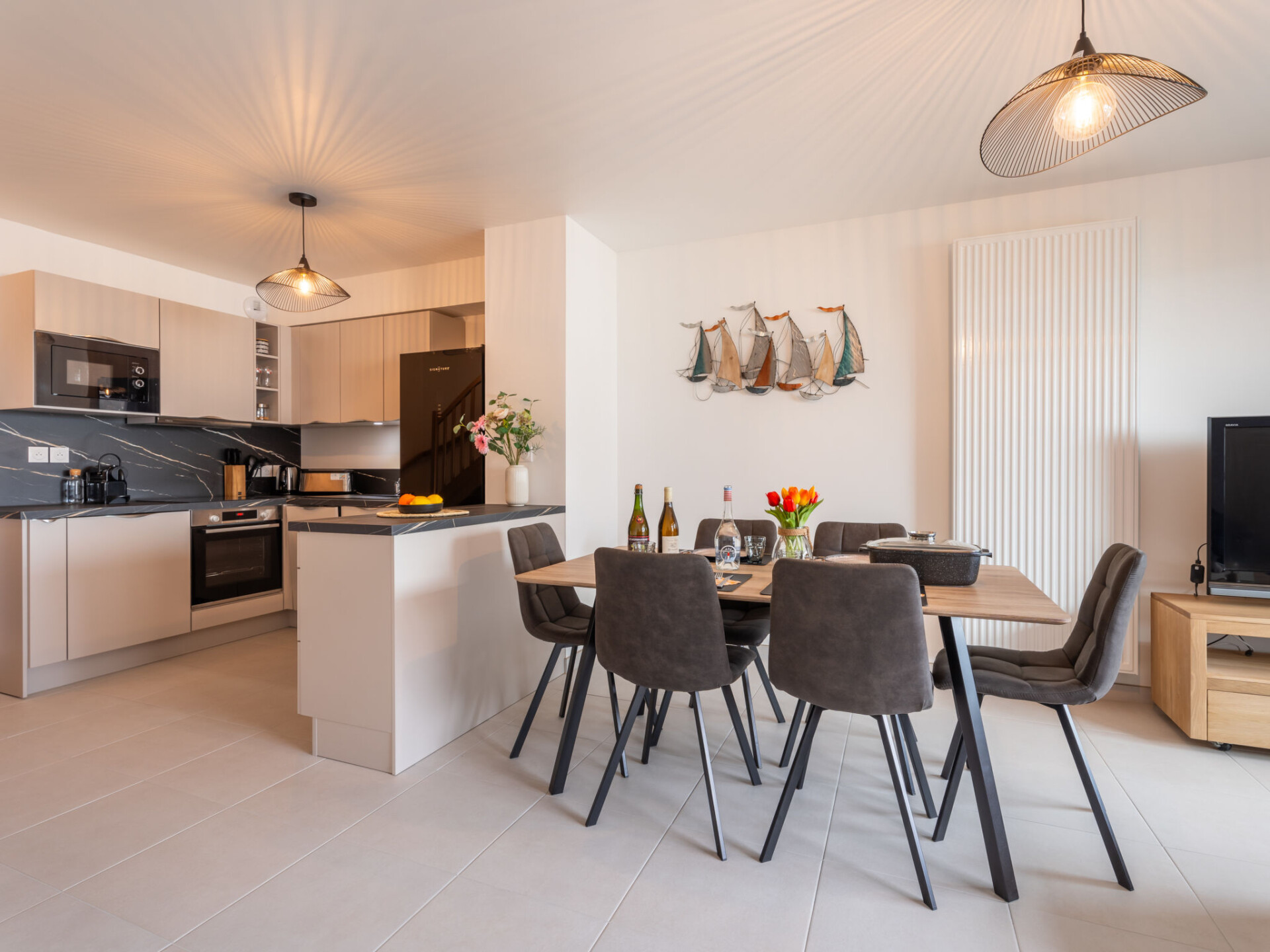Residentie "Chasse Marée", van 2 verdiepingen, bouwjaar 2025. In het centrum van Quiberon, in een woonwijk, perfecte locatie: in het centrum en toch rustig gelegen, 100 m van zee, 100 m van het strand. In het complex: bergruimte voor fietsen. Winkel, levensmiddelenwinkel 50 m, supermarkt 1.3 km, restaurant 50 m, centrum te voet bereikbaar in 3 minuten, bushalte 100 m, veerboot 50 m, zandstrand "Grande Plage" 100 m, overdekt zwembad 1.5 km, thermaalbad "Thalassothérapie de Quiberon" 2 km. Jachthaven 1.5 km, golfterrein (9 holes) 1.5 km, zeilschool 3 km. Attracties in de buurt: Presqu'ile de Quiberon, Belle ile en Mer, Houat et Hoedic, Carnac et les Alignements 18 km, La Trinité sur Mer 22 km, Vannes 50 km, Lorient 60 km. Wandelgebied Le Golfe du Morbihan. Gesloten residentie met een elektrische deur. De sleuteloverdracht vindt plaats bij het agentschap Interhome in Quiberon, 1 km.