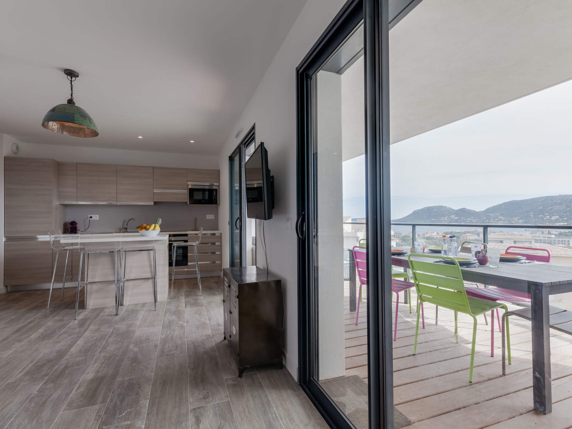 Residentie "Le Palazzu", bouwjaar 2016. 48 appartementen in de woning. Aan de rand van de plaats Porto-Vecchio, verhoogde ligging tegen een helling, 1 km van zee, 10 km van het strand. Voor medegebruik: openluchtzwembad (20 x 8 m, 160 cm diepte, seizoensgebonden beschikbaarheid: 01.Mei. - 31.Okt.). Onderhoud zwembad door de eigenaar/tuinman. In het complex: air-conditioning. Steile toegangsweg (onverharde weg). Parkeerplaats. Winkel 1 km, levensmiddelenwinkel 400 m, supermarkt 2.5 km, restaurant 400 m, bushalte 230 m, zandstrand 8 km. Jachthaven 1 km, golfterrein (9 holes) 6 km, tennis 2 km, manege 3 km. Attracties in de buurt: Figari 21 km, Bonifacio 25 km, Solenzara 40 km, Iles Lavezzi. Wandelgebied L'Ospedale, Réserve Naturelle de Bonifacio. Auto noodzakelijk. Gesloten residentie met een elektrische deur.