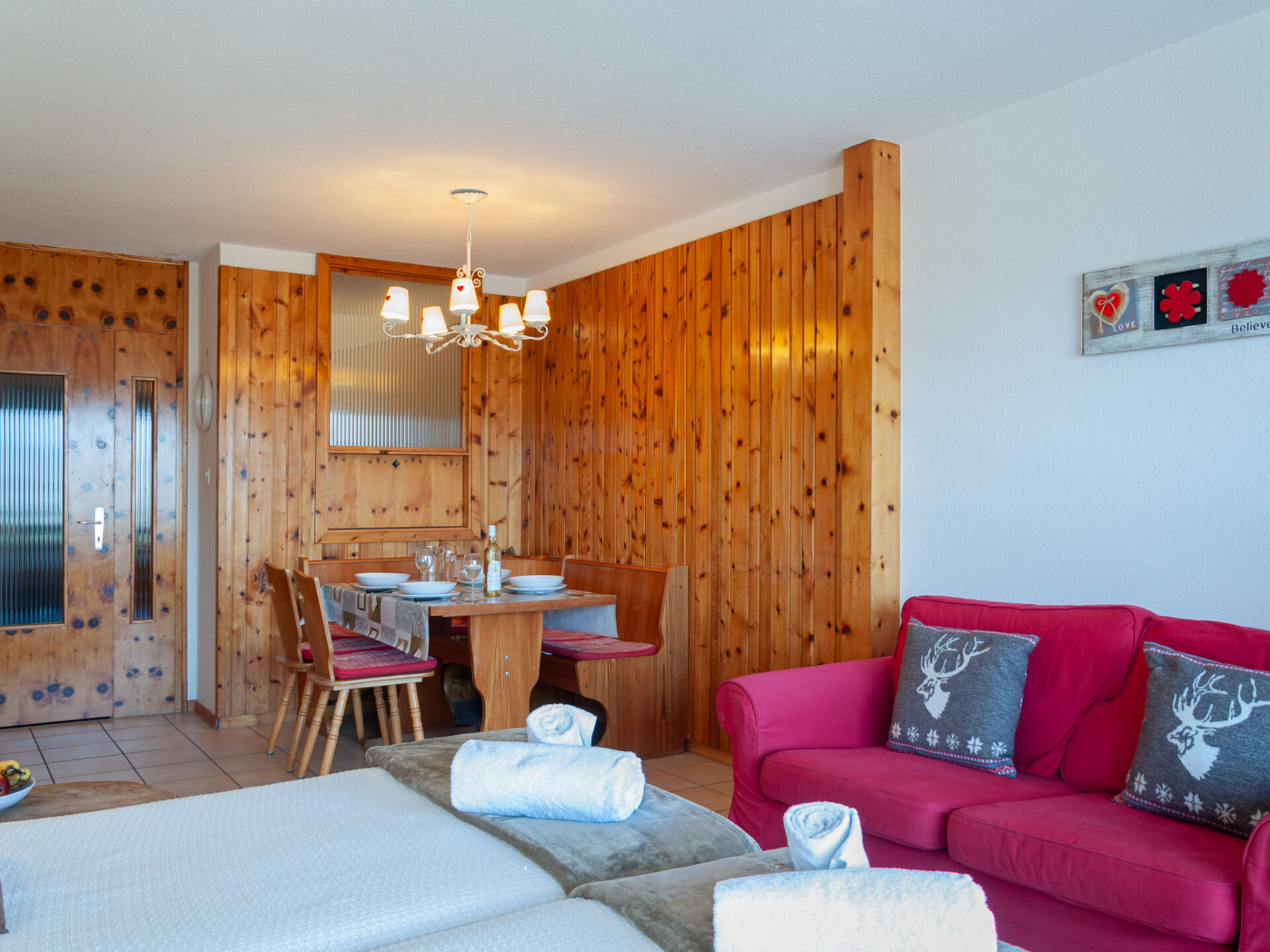 "Christiania 2 L1", appartement 1-kamer 37 m2 op de 1e verdieping. Doelmatig ingericht: hal met 1 x 2 stapelbedden (90 cm, lengte 190 cm). Woon-/eetkamer met 1 uitschuifbaar bed (2 pers. 2 x 90 cm, lengte 190 cm), Kabel-TV. Keuken (3-pits kookplaat, oven, waterkoker, magnetron, elektrische koffiemachine, pads voor de koffiemachine (Nespresso) extra). Bad/WC. Balkon, op het noorden gelegen. Beperkt uitzicht op de bergen en de plaats. Ter beschikking: haardroger. Internet (WiFi, gratis). Niet rokers woning, geen parkeerplaats. In plaats van een afgesloten slaapkamer bevinden sommige slaapgedeeltes zich in een open ruimte (galerij, nis, etc.).