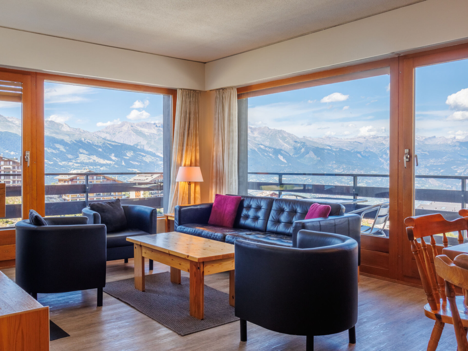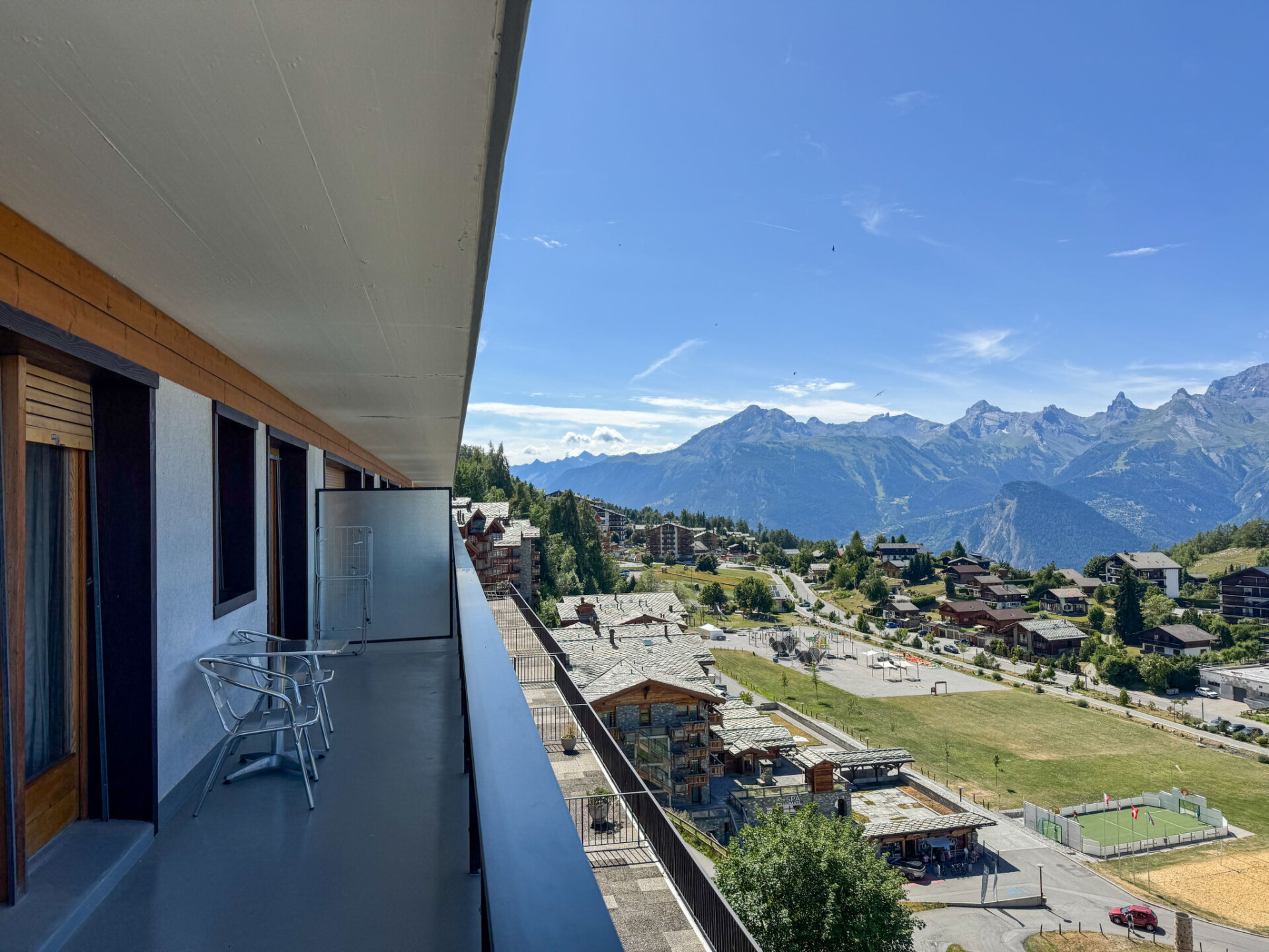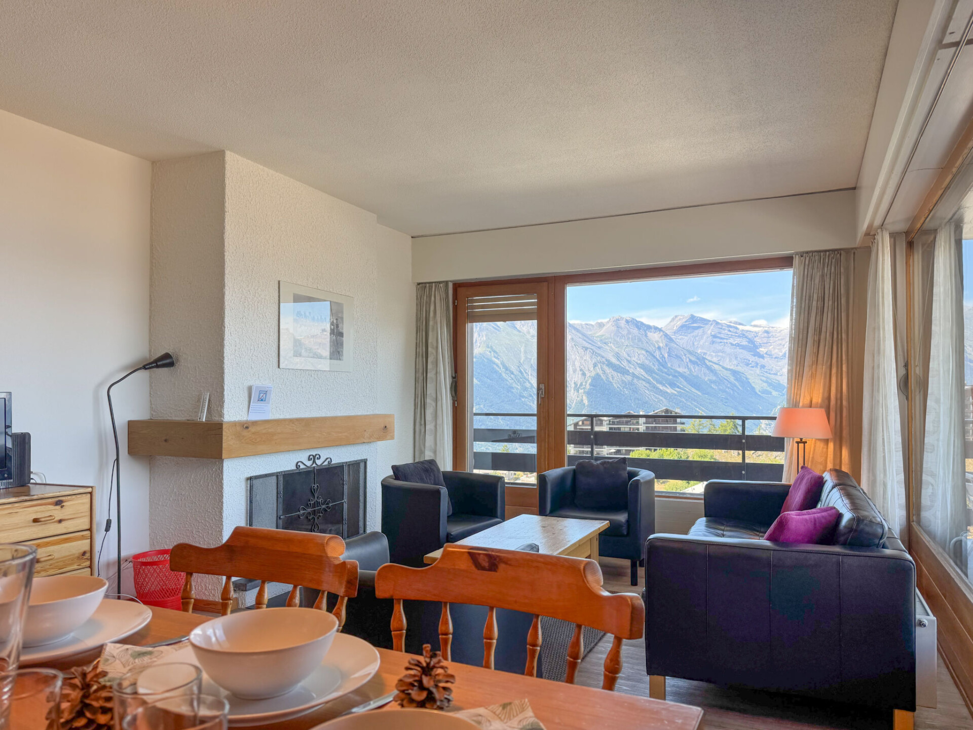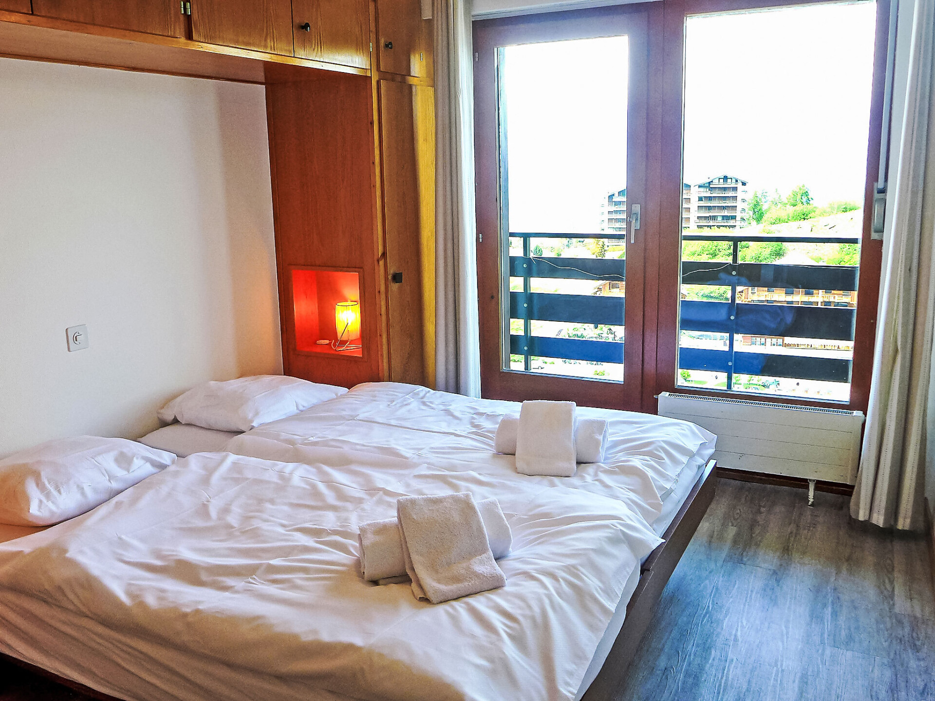 "Christiania I F6", appartement 3-kamers 70 m2 op de 6e verdieping. Hal met 1 x 2 stapelbedden (90 cm, lengte 190 cm). Woon-/eetkamer met open haard (alleen decoratie), Kabel-TV en Flatscreen TV. 1 kamer met 2 bedden (90 cm, lengte 190 cm). Uitgang naar het balkon, op het noorden. 1 kleine kamer met 2 bedden (90 cm, lengte 190 cm). Keuken (3-pits kookplaat, oven, broodrooster, waterkoker, magnetron, elektrische koffiemachine, raclette oven, fondue Set (kaas)). Bad/WC, aparte WC. Balkon, op het noorden gelegen balkon, op het oosten gelegen. Mooi uitzicht op de bergen en de plaats. Ter beschikking: Internet (Internet (WiFi), gratis). Parkeerplaats nr. 6A (overdekt), hoogte 190 cm, breedte 210 cm. Koelkast zonder vriesvak, niet rokers woning. Maximaal 1 huisdier/hond toegestaan. In plaats van een afgesloten slaapkamer bevinden sommige slaapgedeeltes zich in een open ruimte (galerij, nis, etc.).