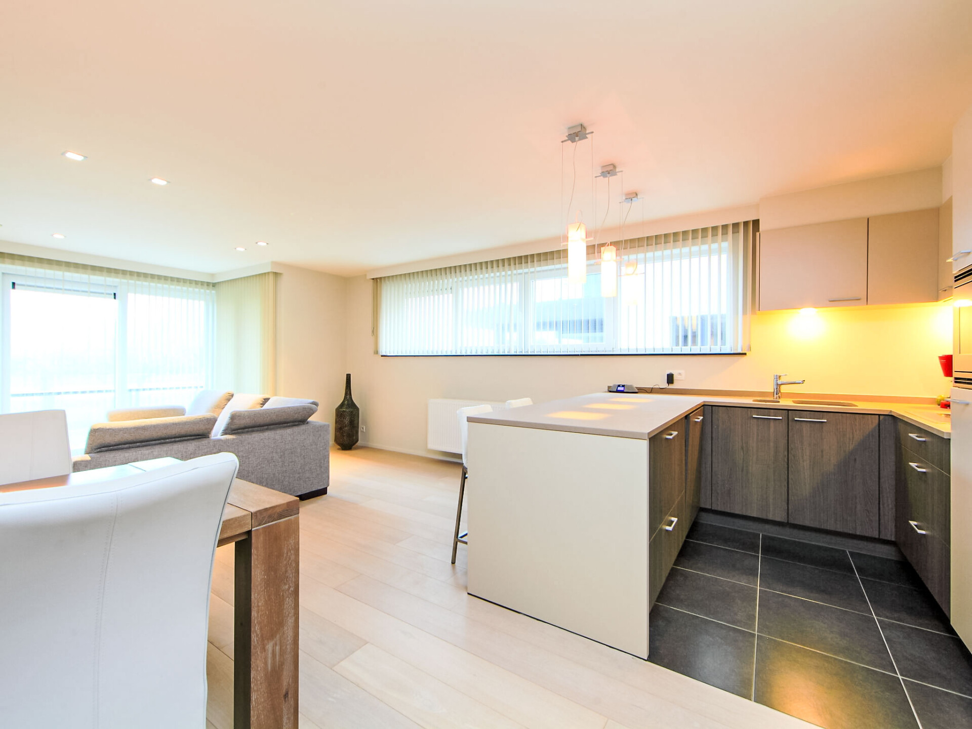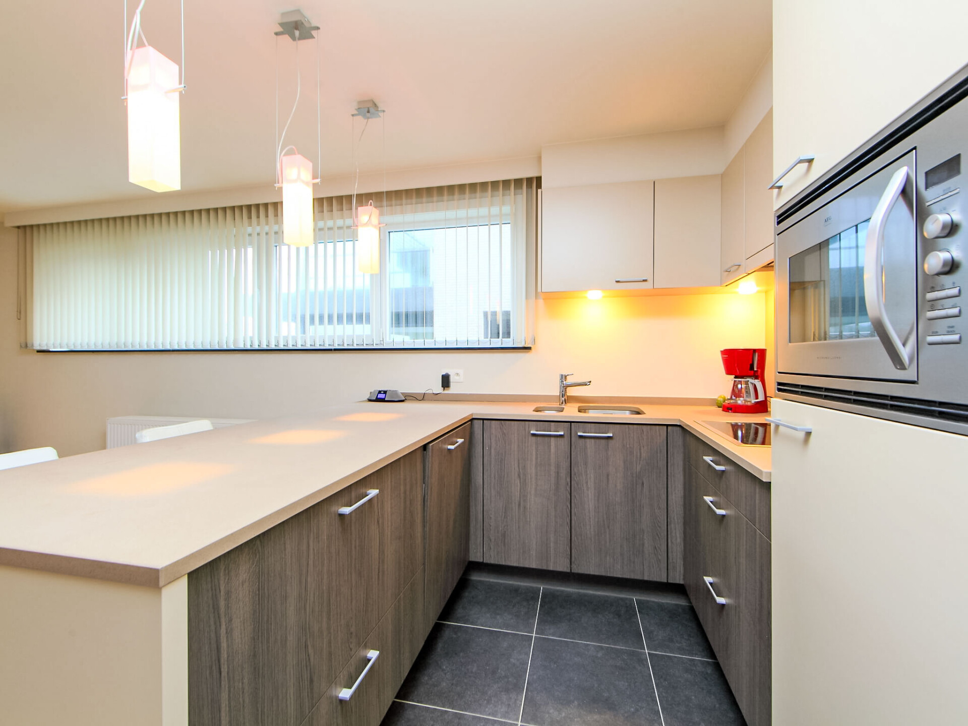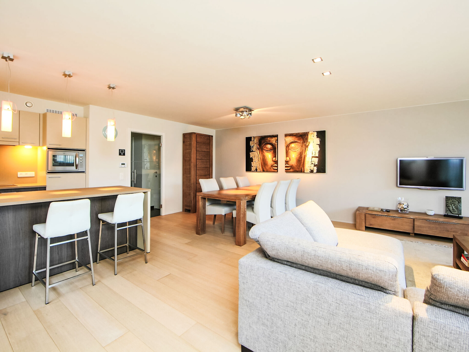 "Cocoon with parking", appartement 3-kamers 98 m2 op de 1e verdieping. Comfortabel ingericht: hal met aparte WC en gasverwarming. Open woon-/eetkamer met TV, Digitale TV, internationale TV-zenders, radio, CD-speler, stereo-installatie en DVD. Uitgang naar het balkon. 2 2-pers. kamers, elke kamer heeft 1 2-pers bed (180 cm, lengte 200 cm). Open keuken (afwasmachine, 4 inductiekookplaten, broodrooster, waterkoker, elektrische koffiemachine, combimagnetron). Douche/WC. Balkon 24 m2, op het zuiden gelegen. Balkonmeubilair, ligstoelen. Ter beschikking: wasmachine, droger, haardroger. Internet (WiFi, gratis). Garage nr. 6. Woning aan de straatzijde. Rookvrij huis. Rookmelders, brandblusser. LD220576