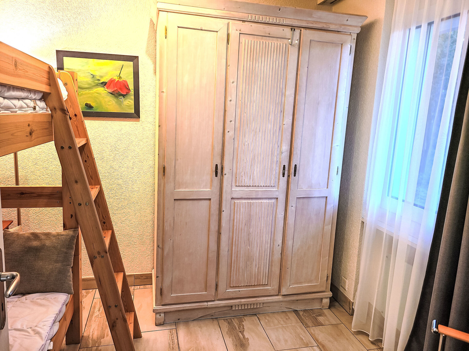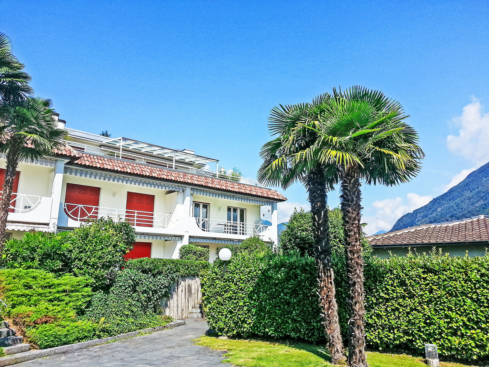 "Collina Verde B", appartement 3-kamers 68 m2, op de begane grond. Licht, mooi en modern ingericht: groot, open woon-/eetkamer met zwedenkachel, Kabel-TV, Flatscreen TV, radio, DVD, elektrische verwarming en boiler. Uitgang naar de zitplaats in de tuin. 1 kinderkamer met 1 x 2 stapelbedden (90 cm, lengte 200 cm). 1 2-pers. kamer met 1 2-pers bed (2 x 90 cm, lengte 200 cm), Kabel-TV en Flatscreen TV. Open keuken (oven, 4 keramische glas kookplaten, elektrische koffiemachine, pads voor de koffiemachine (Nespresso mitbringen)). Douche/WC. Zithoek in de tuin 20 m2. Terrasmeubelen, ligstoelen (2). Beperkt uitzicht op de bergen en het landschap. Ter beschikking: Internet (WiFi, gratis). Garage nr. 108. Niet rokers woning. Maximaal 1 huisdier/hond toegestaan. Nespresso koffiemachine beschikbaar, capsules dienen te worden meegebracht. NL-00004786